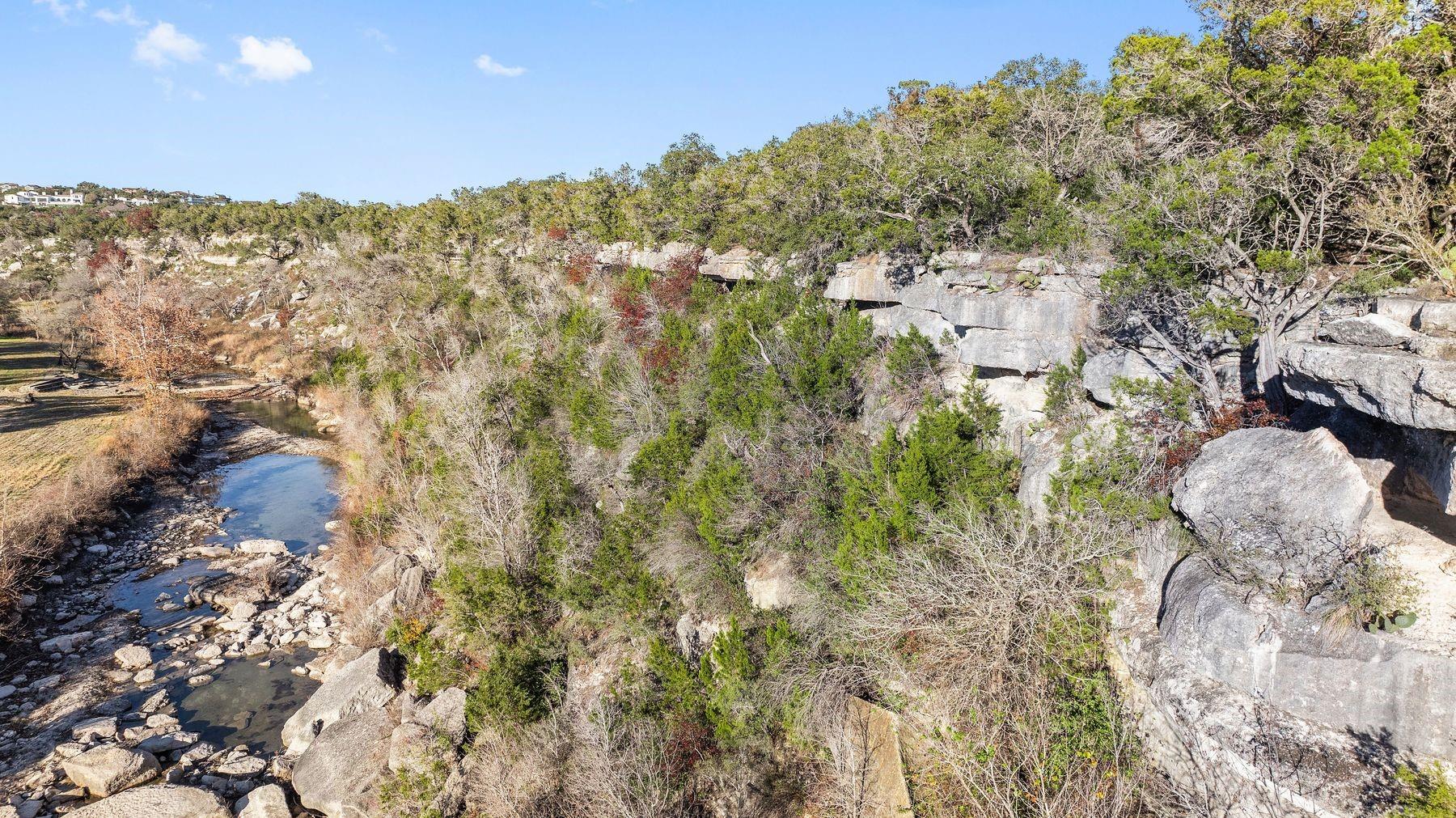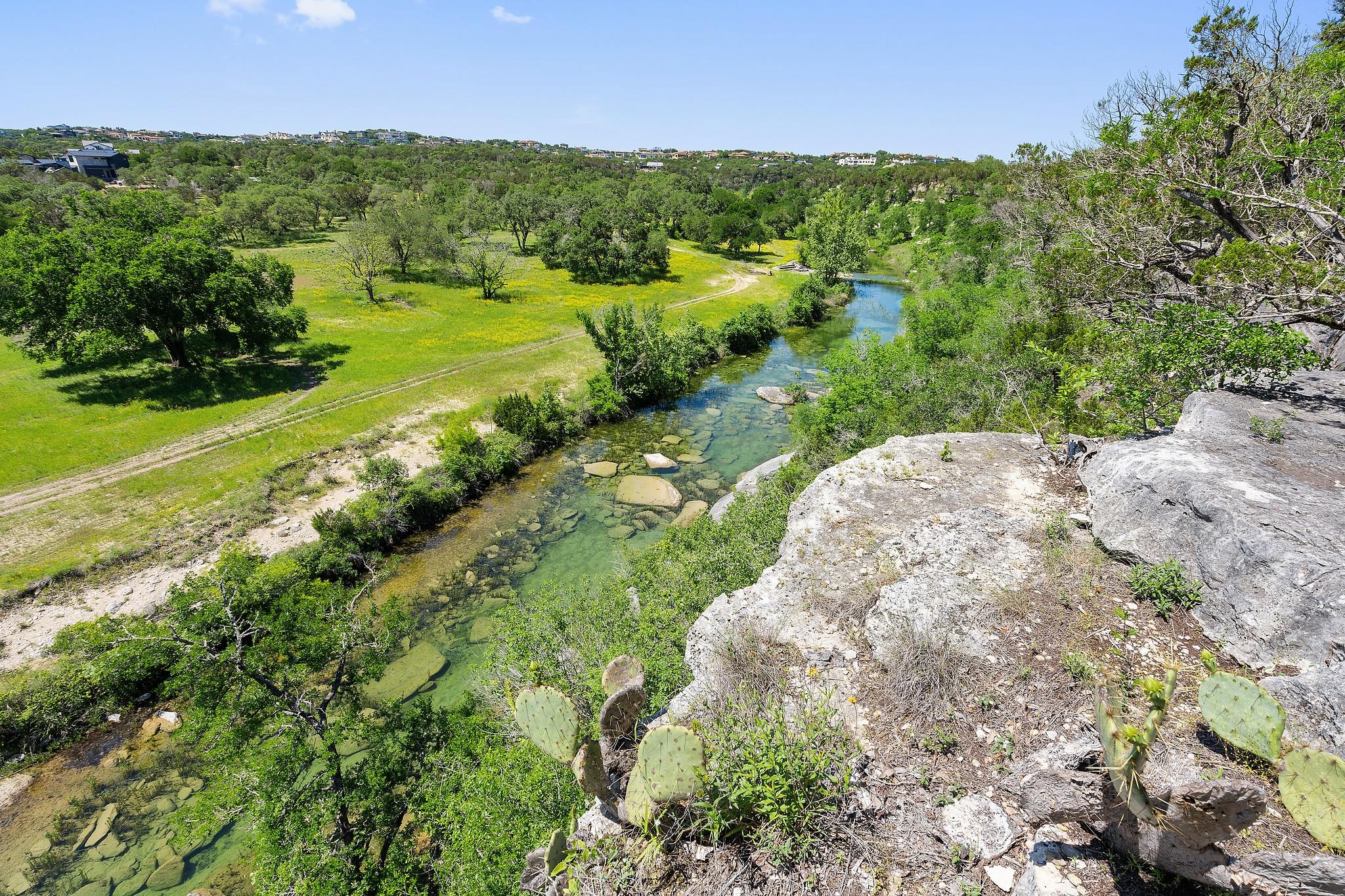 Barton Creek frontage, panoramic views, privacy, low taxes…ideal location! This property represents a RARE opportunity to own acreage inside the highly coveted, guard-gated neighborhood of Spanish Oaks. You MUST tour this parcel to appreciate its features, but the photos are a good preview. Wildlife exemption helps to lower carrying costs with the latest annual tax bill in the $20 range, so you can take your time with building a house or buy and hold as an investment. Located within both Lake Travis ISD and Austin ISD. A majority of this lot is located above the flood plain, including the building site in the architectural renderings which sits on a bluff overlooking Barton Creek. Much of the adjacent neighboring lots are inside the floodplain, limiting the building of permanent structures near this parcel and providing protection of the view corridor. Creek frontage is owned where the owner intended to make a boat storage facility for kayaks and horses are allowed. The current owners have made improvements including tree clearing and a pre-construction driveway of road base and some crushed granite near the homesite. They have also made nature trails along the property on the side that is adjacent to greenbelt held in a preserve held by The Nature Conservancy. Highly acclaimed A Parallel Architecture started with renderings of a modern home with walls of windows that maximize views, and you can see the actual view within the renderings. Enjoy living immersed in nature within an otherwise developed suburban area full of conveniences like Whole Foods, restaurants, & shops within 3.5 miles. This is one of the most picturesque lots within Barton Cove and is priced below cost, and a good value compared to neighboring lots which sold off-market due to the owner’s unexpected need to sell. This property is double-gated, offering security as well as convenience, and feels like its own private wonderland. Truly a must-see for the most discerning buyers!
