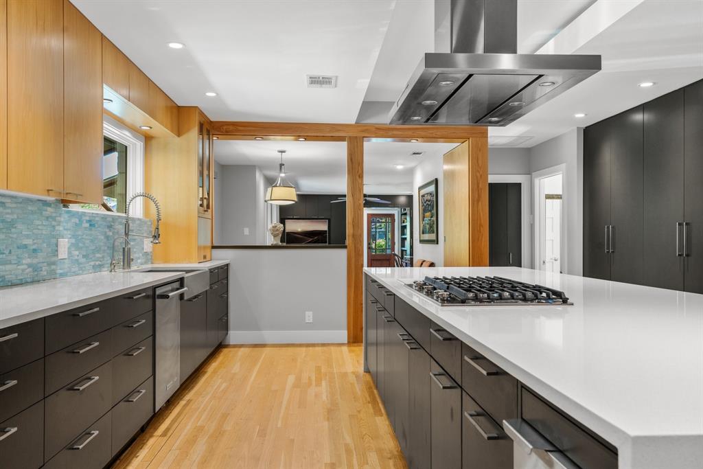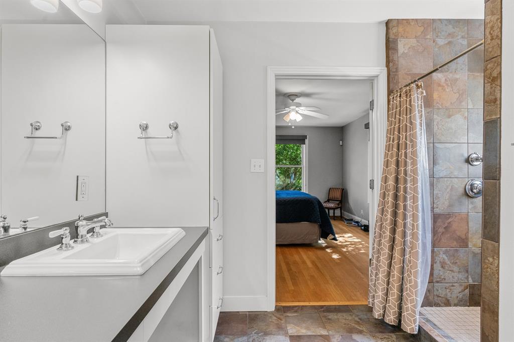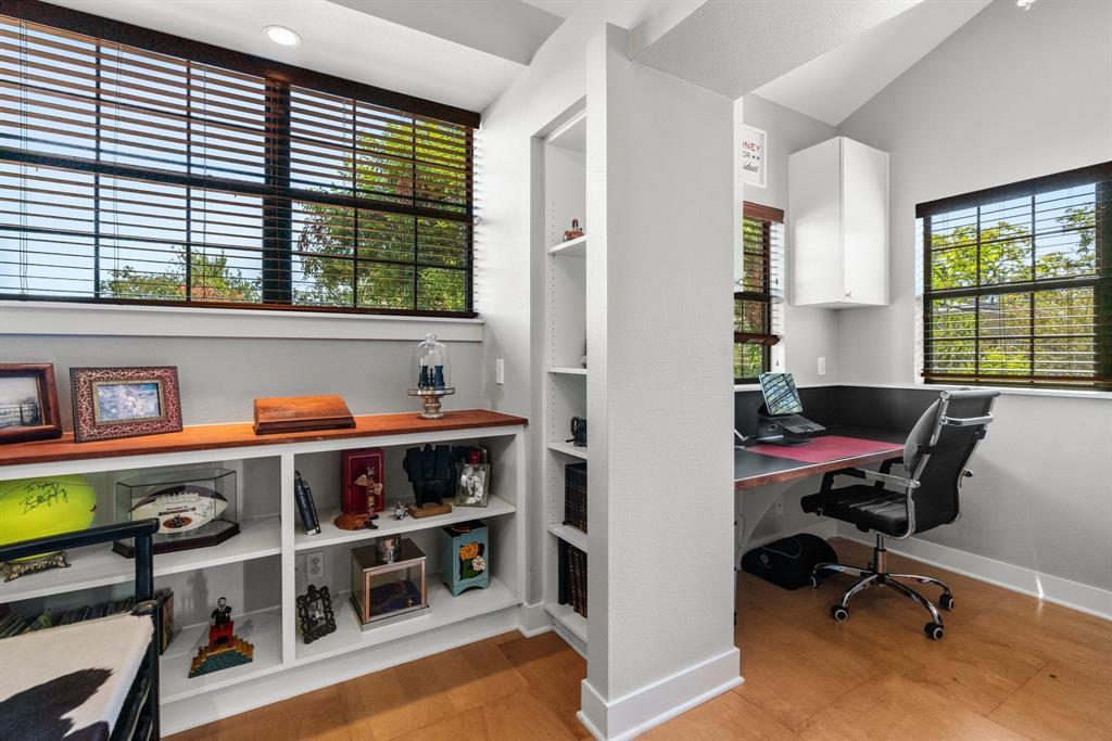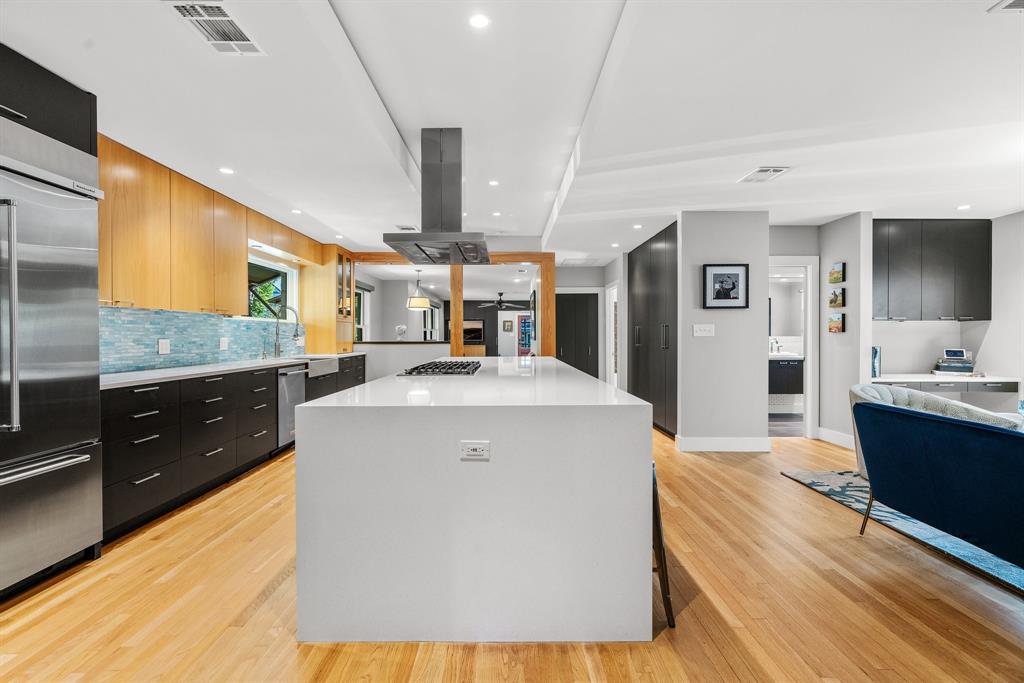 2911 Harris Boulevard sits on a peaceful corner lot in Bryker Woods, an idyllic Austin neighborhood defined by architecturally relevant and maintained homes, magnificent trees, and is within walking distance to Austin’s most desirable dining, shopping and health care opportunities. Extensively remodeled and added on to in 2007, this three bedroom (2 primary) and 3 full baths, and a half bath for guests also has an upstairs office alcove and a separate dedicated office with an additional half bath and a private outdoor entrance, 2 living areas, 2 car garage, low maintenance yard, beautiful and functional built-ins throughout, super-sized kitchen island comprising a five-burner gas cooktop, bar seating, a beverage refrigerator, a wine cubby, Silestone counters AND icemaker that dispenses the much-coveted Sonic-dimensioned ice cubes. Other features include, gleaming hardwood floors, a built-in refrigerator and a spacious closet downstairs with a window and built-ins so it could also function as a nursery. The flexible floor plan makes this house perfect for families with young children to teenagers, empty nesters, multi-generation living or someone who wants plenty of room to entertain!