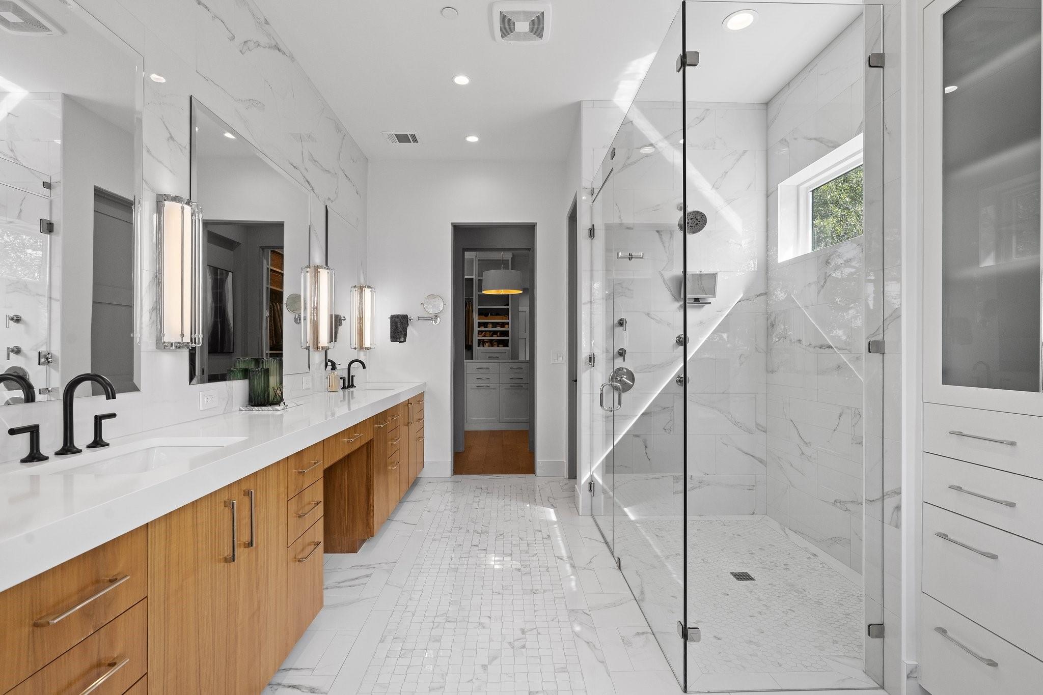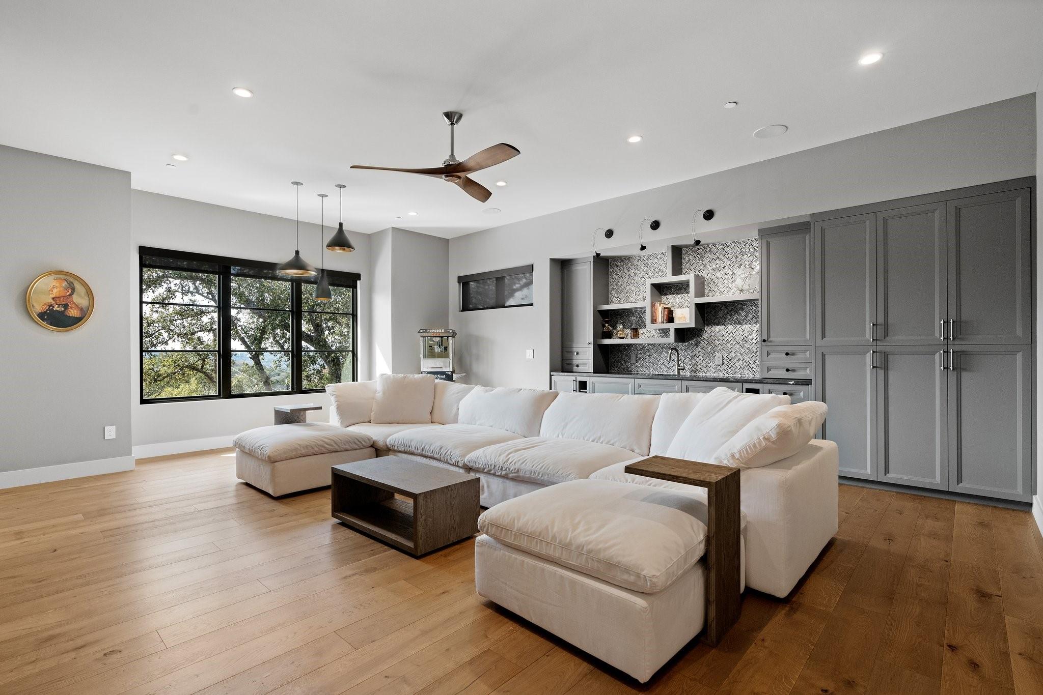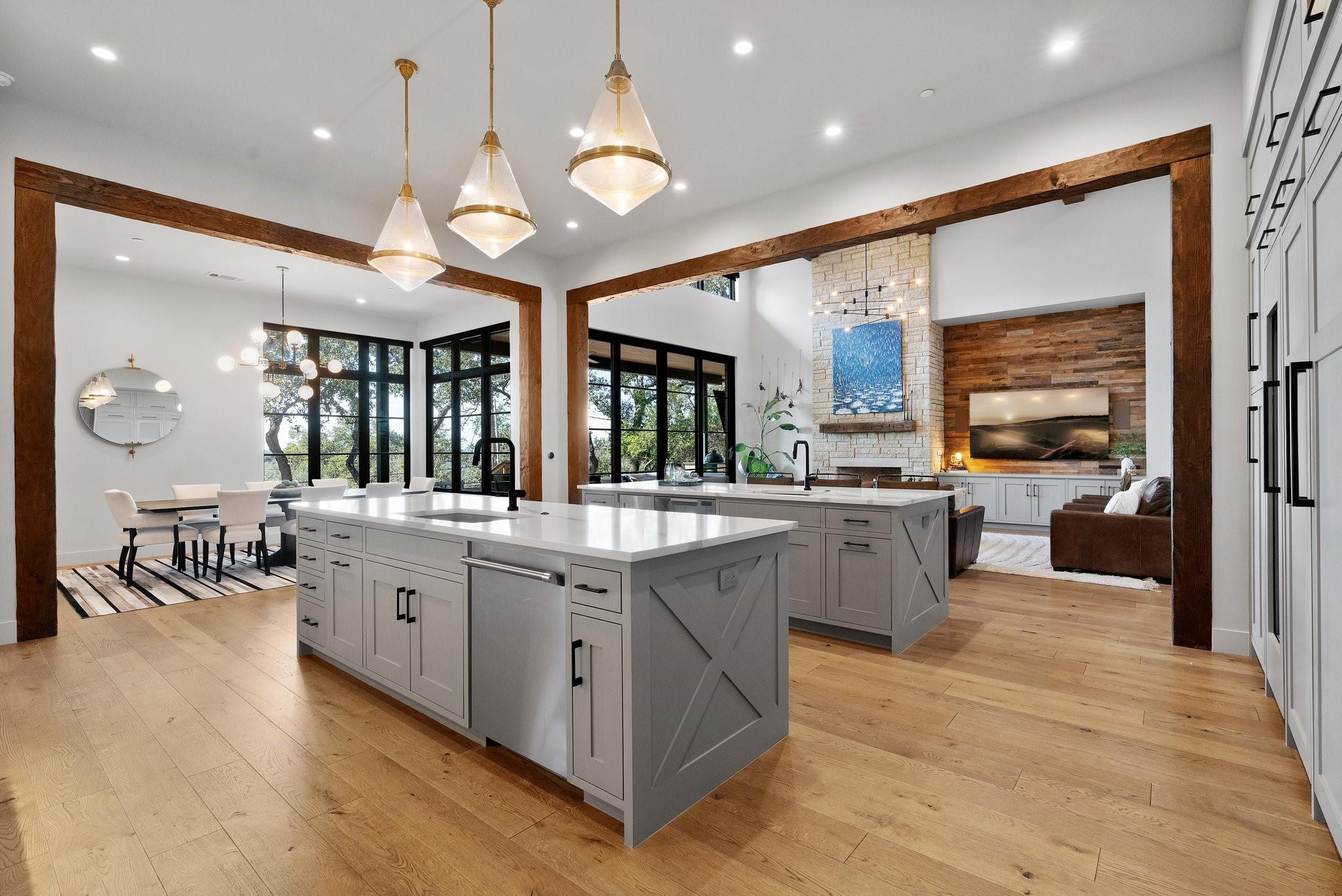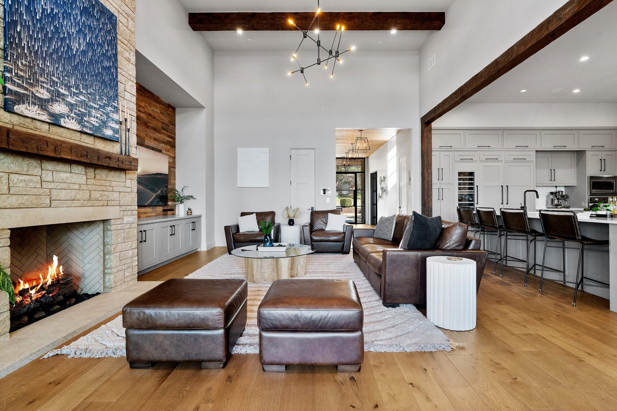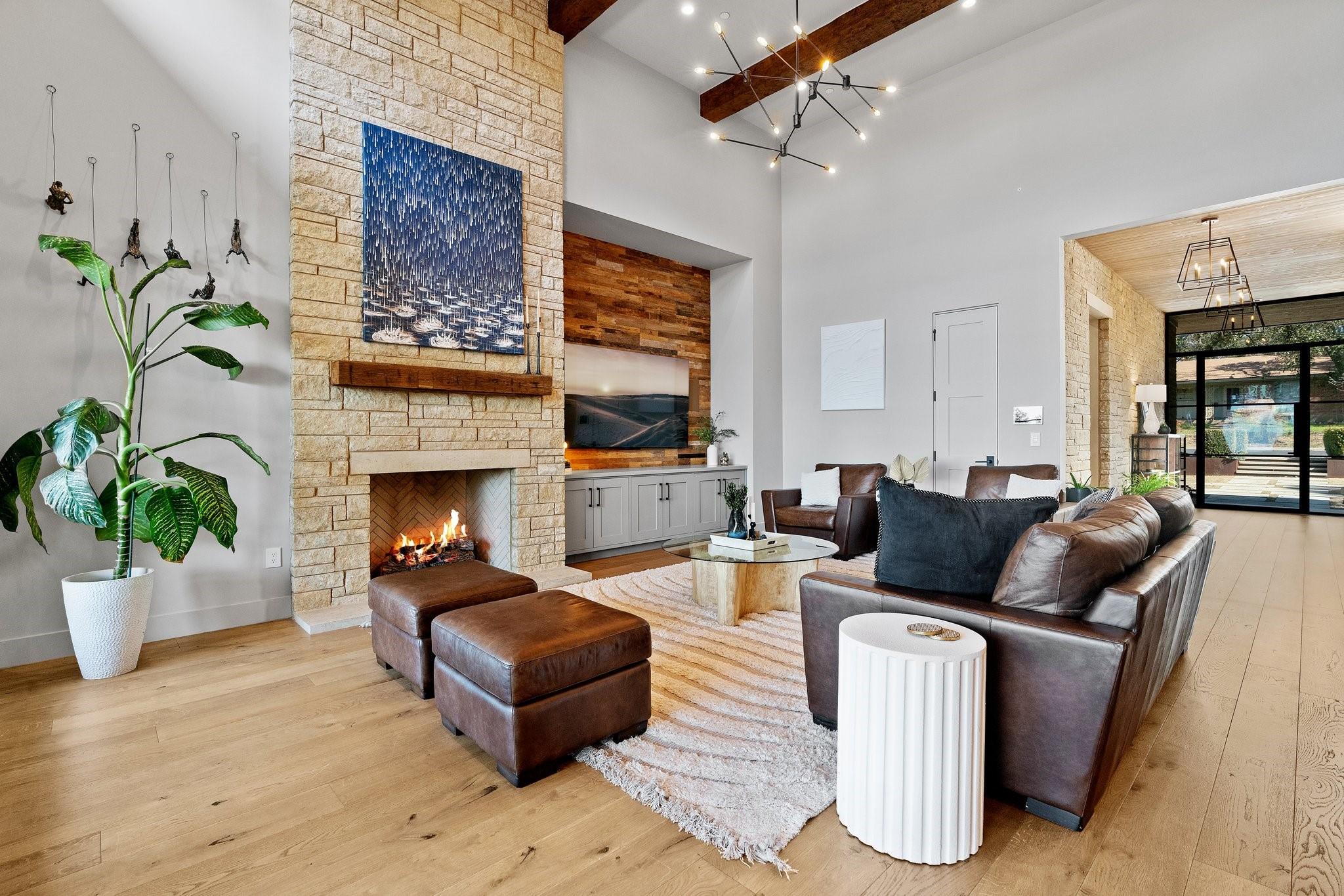 Experience luxury living in this Moazami home, where sophistication harmoniously blends with comfort and functionality. Discover a primary suite, guest suite, a dedicated office with custom built-ins, and two additional bedrooms with en suite baths. A whimsically designed playroom adds charm, catering to families of all sizes. Ascend to the upper level, revealing an expansive game room/media room with a bar. An additional bedroom and bath offer privacy and flexibility for guests or family members. The home showcases impeccable finishes, featuring wood and stone elements inside and out. European oak floors grace the interiors, enhancing the residence's timeless appeal. Designer plumbing, lighting, and tile selections create an atmosphere of refined elegance.The chef's kitchen boasts double islands, Thermador appliances, wine refrigerator, two dishwashers, and a steam oven. Outdoors, indulge in style with a heated pool and spa, complete with an automatic cover. The custom outdoor kitchen is a chef's delight, equipped with a gas grill, green egg, fridge, and sink. Multiple outdoor living spaces, including covered patios, poolside decks, and a dedicated playscape area, invite you to embrace the beauty of the natural surroundings.Meticulously landscaped grounds feature three large custom garden beds, full sprinkler system and mosquito misting system. Inside, modern conveniences abound with Smart Glass(entry), Control 4 system, motorized shades, an oversized pantry, a large mudroom with built-ins, and an oversized utility room with abundant storage. Equipped for efficiency and comfort with high-efficiency Carrier HVAC systems and tankless water heaters, the home offers a seamless living experience. The oversized garage with epoxy floors adds the finishing touch to this luxurious property.Enjoy the pinnacle of convenient Austin living in this meticulously crafted estate, where every detail reflects a commitment to luxury & quality.