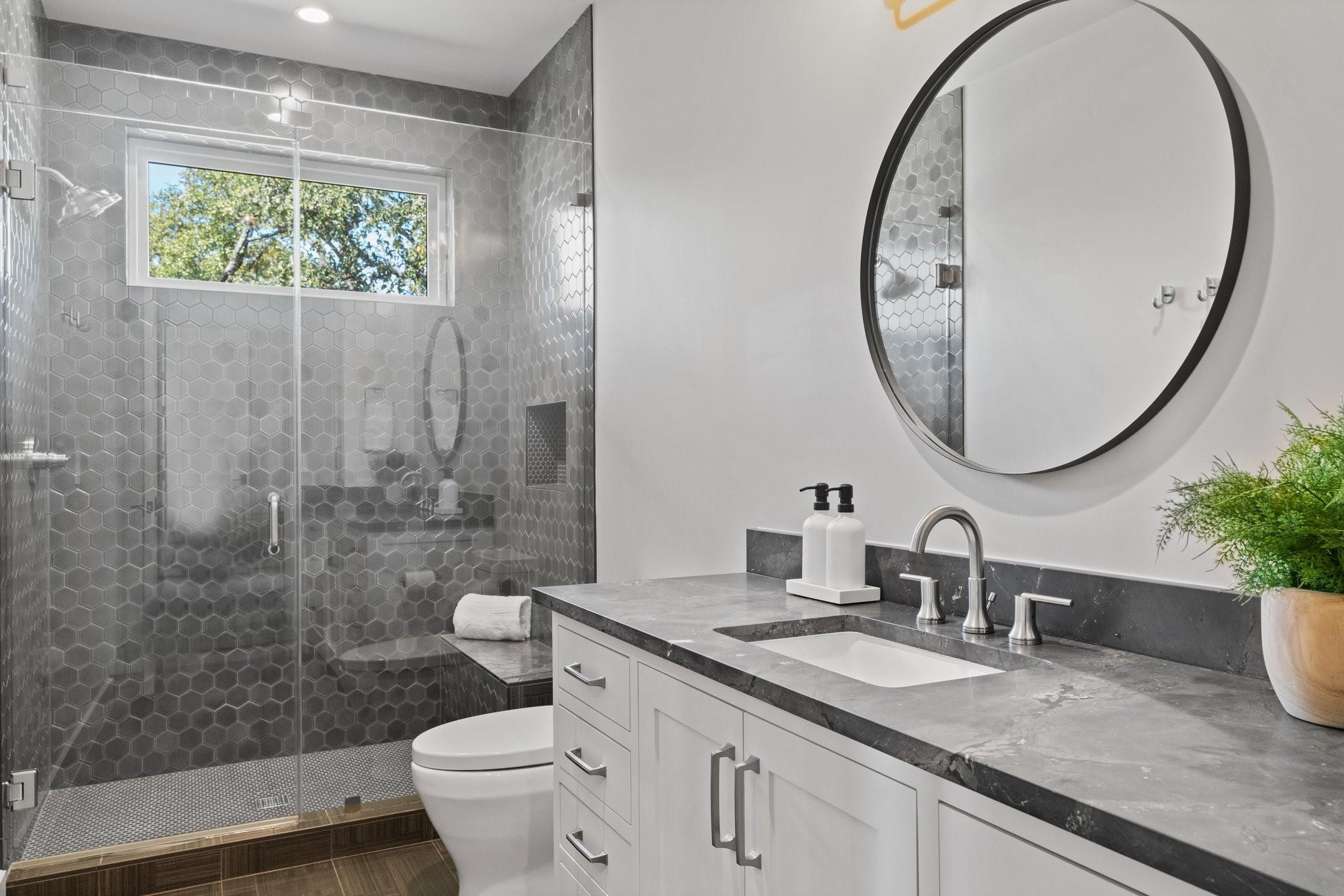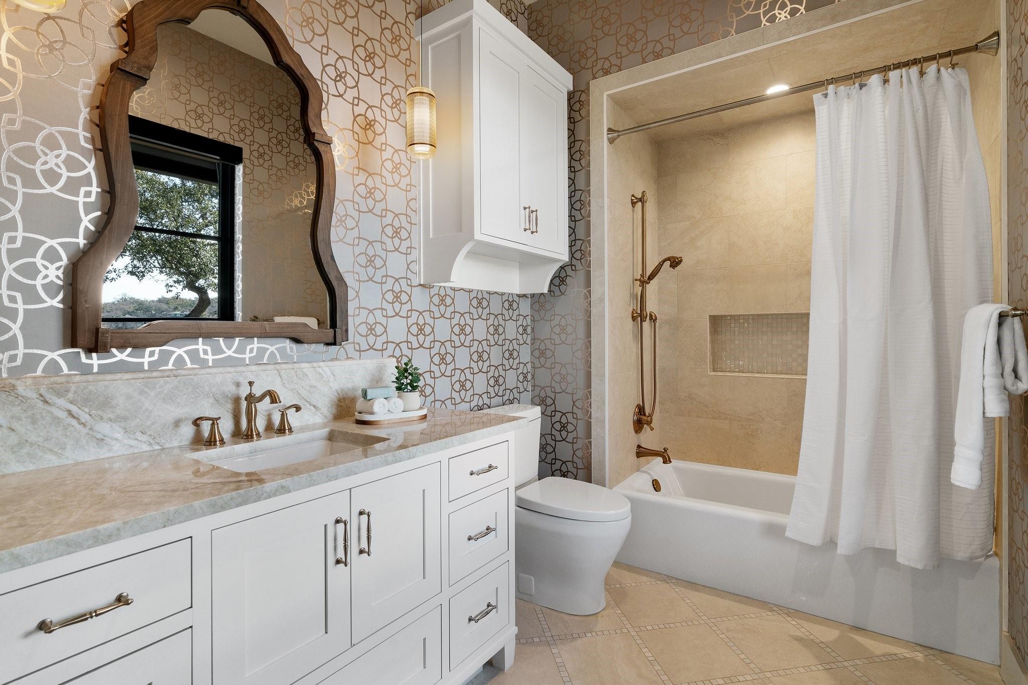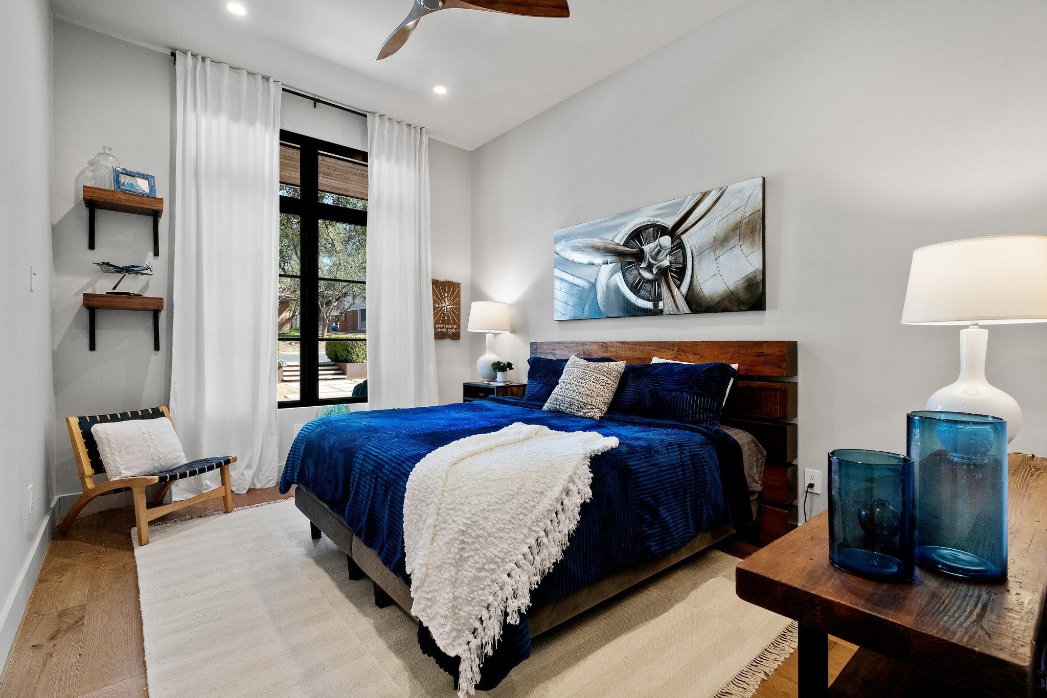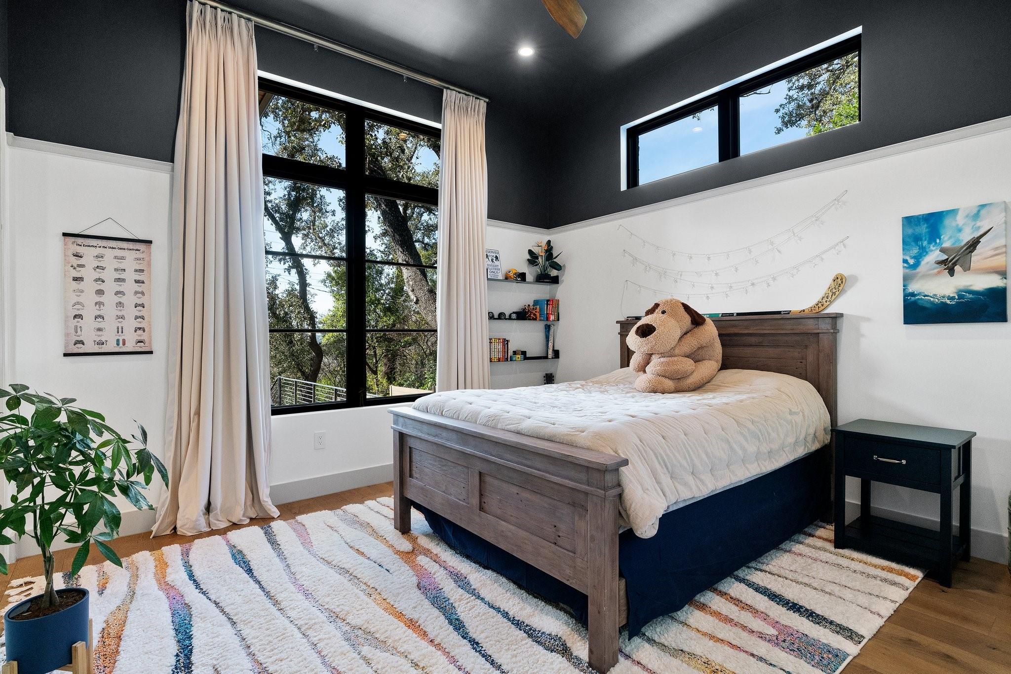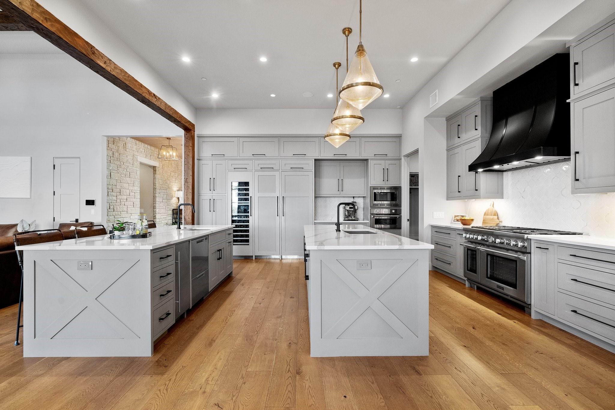 Experience luxury living in this Moazami home, where sophistication harmoniously blends with comfort and functionality. Discover a primary suite, guest suite, a dedicated office with custom built-ins, and two additional bedrooms with en suite baths. A whimsically designed playroom adds charm, catering to families of all sizes. Ascend to the upper level, revealing an expansive game room/media room with a bar. An additional bedroom and bath offer privacy and flexibility for guests or family members. The home showcases impeccable finishes, featuring wood and stone elements inside and out. European oak floors grace the interiors, enhancing the residence's timeless appeal. Designer plumbing, lighting, and tile selections create an atmosphere of refined elegance.The chef's kitchen boasts double islands, Thermador appliances, wine refrigerator, two dishwashers, and a steam oven. Outdoors, indulge in style with a heated pool and spa, complete with an automatic cover. The custom outdoor kitchen is a chef's delight, equipped with a gas grill, green egg, fridge, and sink. Multiple outdoor living spaces, including covered patios, poolside decks, and a dedicated playscape area, invite you to embrace the beauty of the natural surroundings.Meticulously landscaped grounds feature three large custom garden beds, full sprinkler system and mosquito misting system. Inside, modern conveniences abound with Smart Glass(entry), Control 4 system, motorized shades, an oversized pantry, a large mudroom with built-ins, and an oversized utility room with abundant storage. Equipped for efficiency and comfort with high-efficiency Carrier HVAC systems and tankless water heaters, the home offers a seamless living experience. The oversized garage with epoxy floors adds the finishing touch to this luxurious property.Enjoy the pinnacle of convenient Austin living in this meticulously crafted estate, where every detail reflects a commitment to luxury & quality.