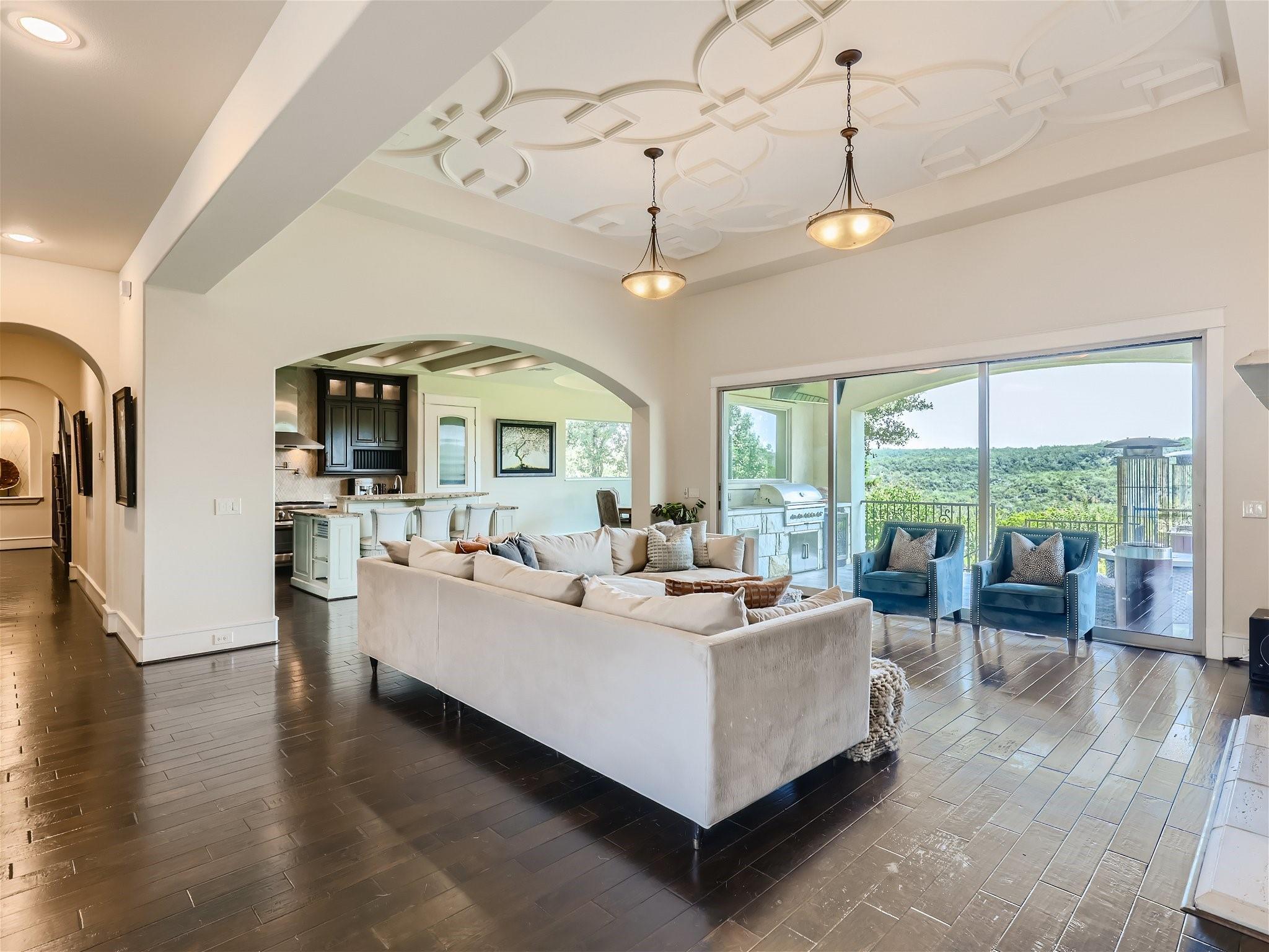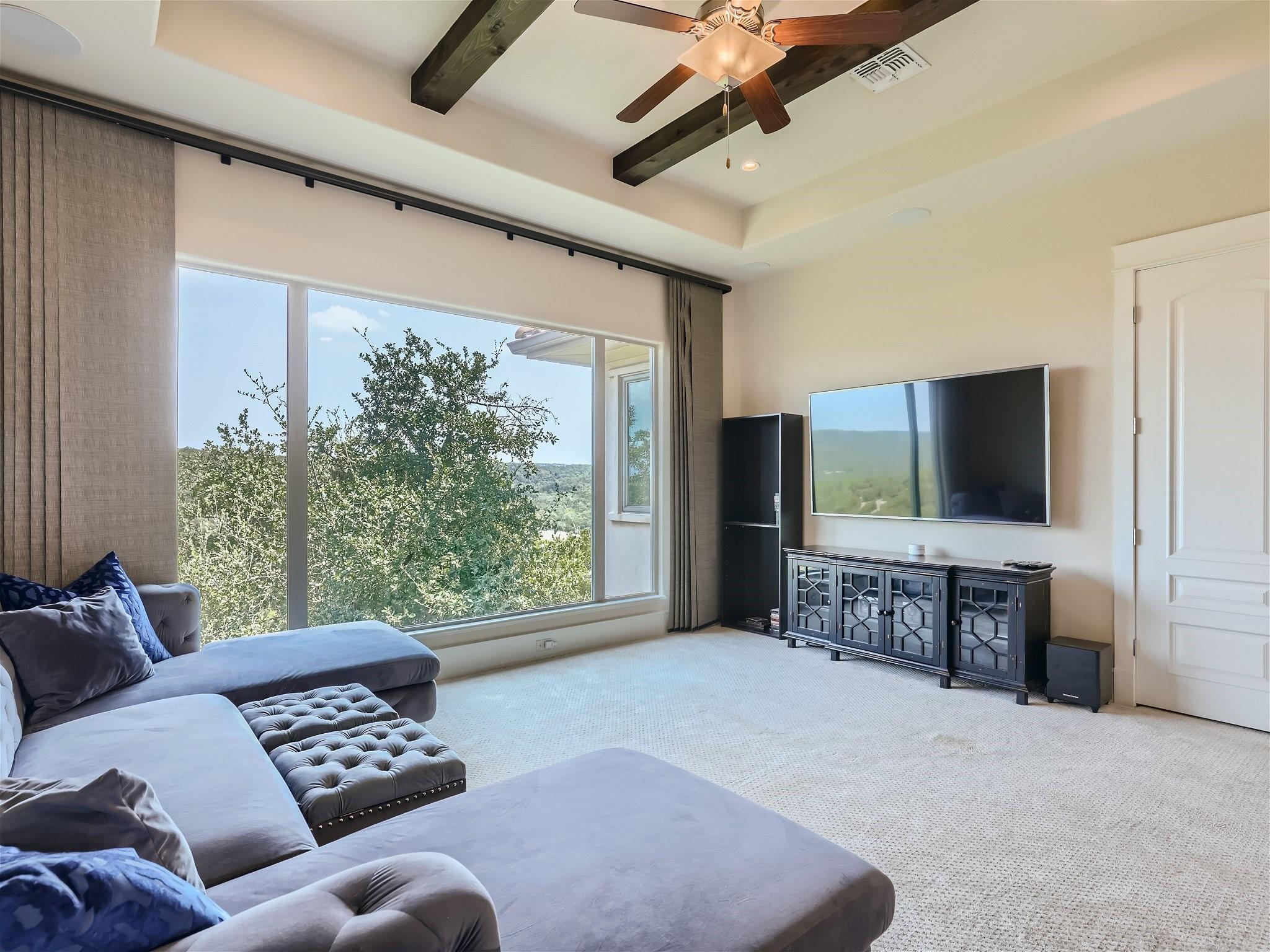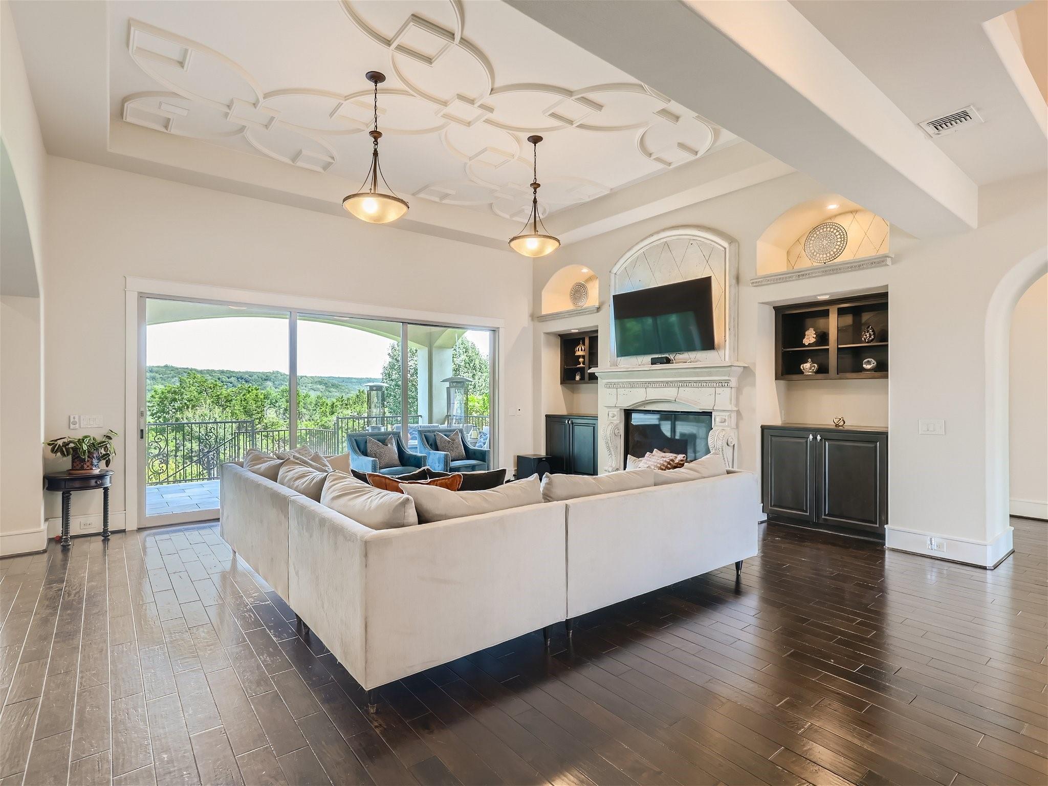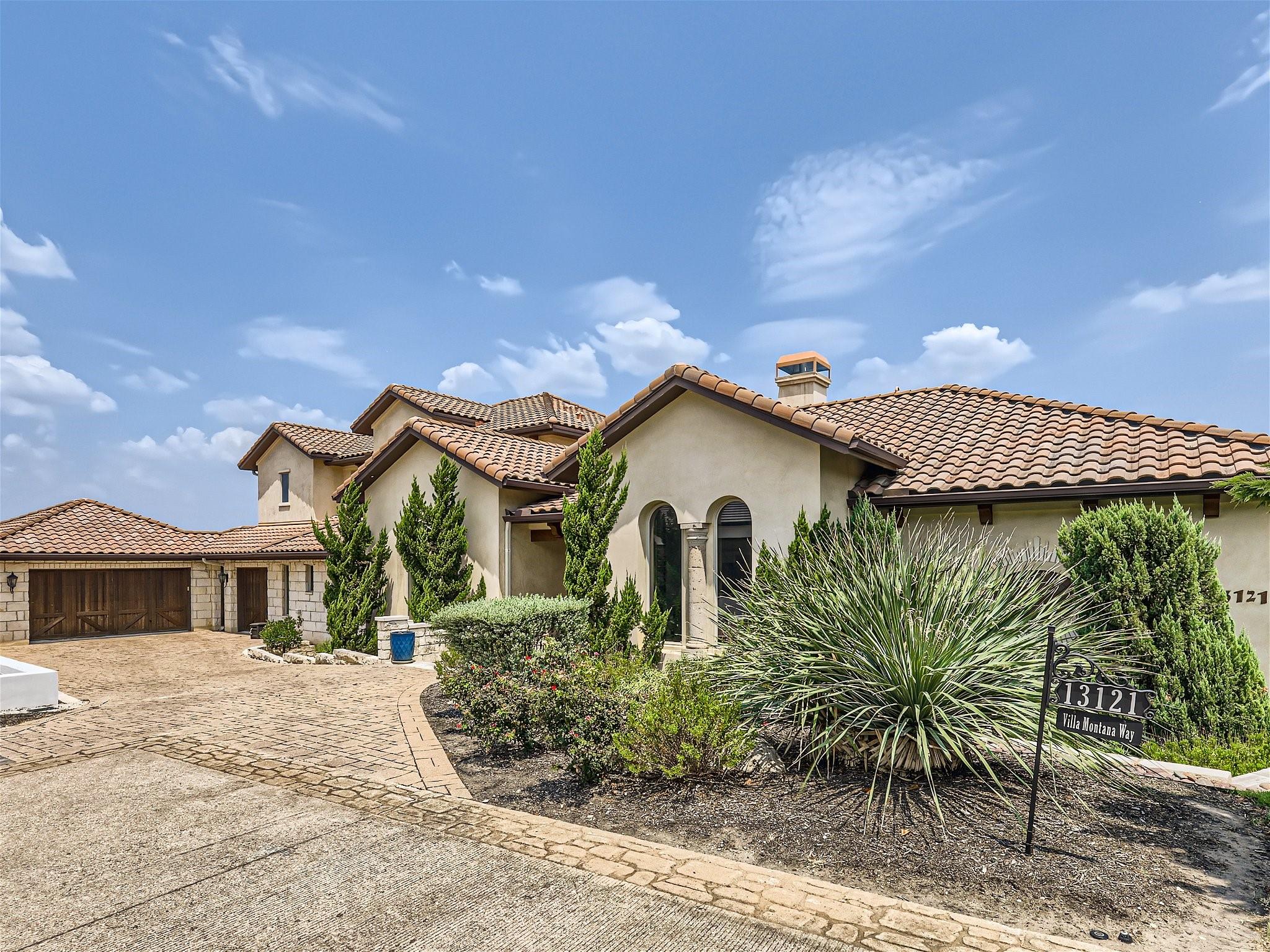 Nestled within the prestigious gated community of Villa Montana, this stunning residence at 13121 Villa Montana Way offers a harmonious blend of timeless elegance and modern comfort. Boasting breathtaking hill country views and a location that seamlessly combines tranquility with urban convenience, this home presents an exceptional living experience. This two-story masterpiece exudes grandeur with its Mediterranean-inspired architecture, stucco exterior, and a tile roof. The attention to detail is evident in every facet of its design. Sprawling across 4291 sq ft, this home offers ample space for both entertaining and relaxation. The open-concept layout enhances the flow between living, dining, and kitchen areas. The chef's kitchen is a culinary haven equipped with top-of-the-line stainless steel appliances, granite countertops, a center island, and an abundance of storage. It's a perfect blend of functionality and style. The master suite is a retreat within itself, featuring a spacious layout, and a spa-like ensuite bathroom with a soaking tub and a walk-in shower. Additional bedrooms are generously sized offering their own private bathrooms for family and guests. Step outside to a private outdoor oasis complete with a covered patio and outdoor kitchen. Enjoy al fresco dining, relaxation, and endless sunset views over the hill country. A well-appointed home office provides a quiet space for productivity or study, featuring built-in shelves. Situated in the sought-after neighborhood of Villa Montana, this home offers a retreat-like feel while being just minutes away from downtown Austin. The gated community offers 24/7 security, ensuring privacy and peace of mind. Luxury, comfort, and an unparalleled living experience await at 13121 Villa Montana Way. Don't miss the opportunity to make this exquisite residence your forever home. Schedule a private showing today and immerse yourself in the beauty and elegance that this property offers.