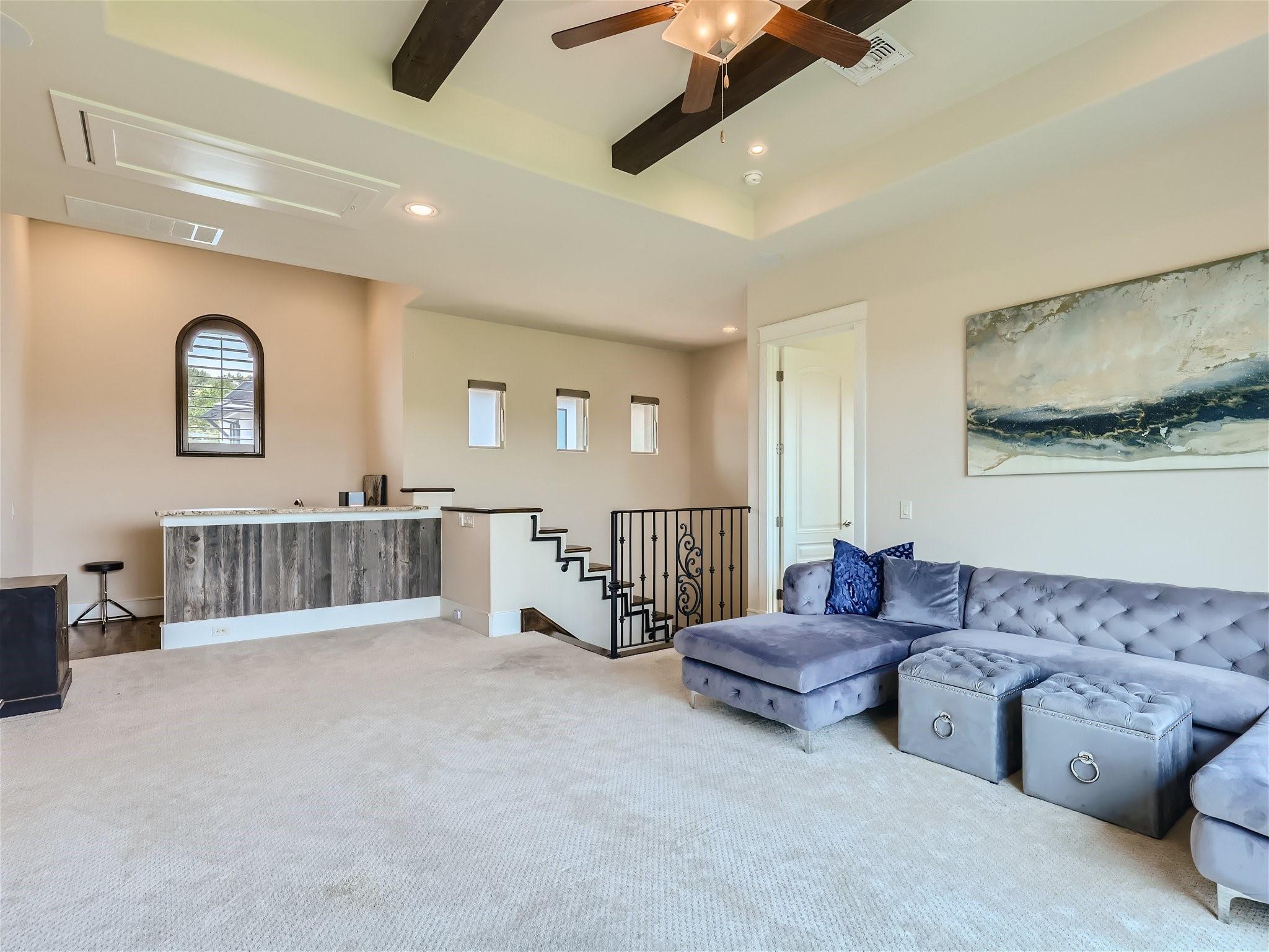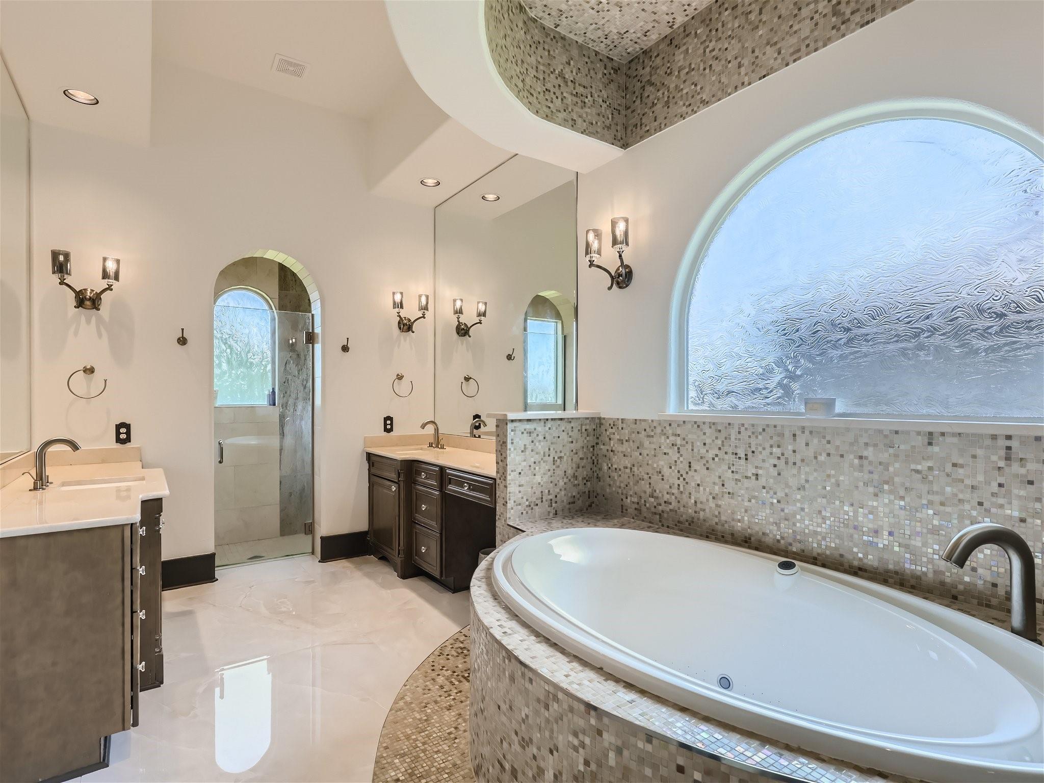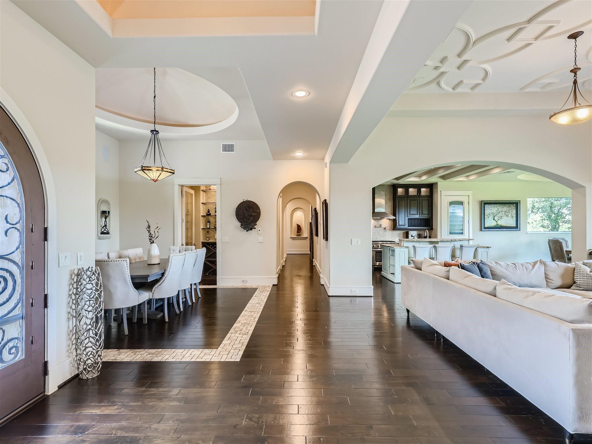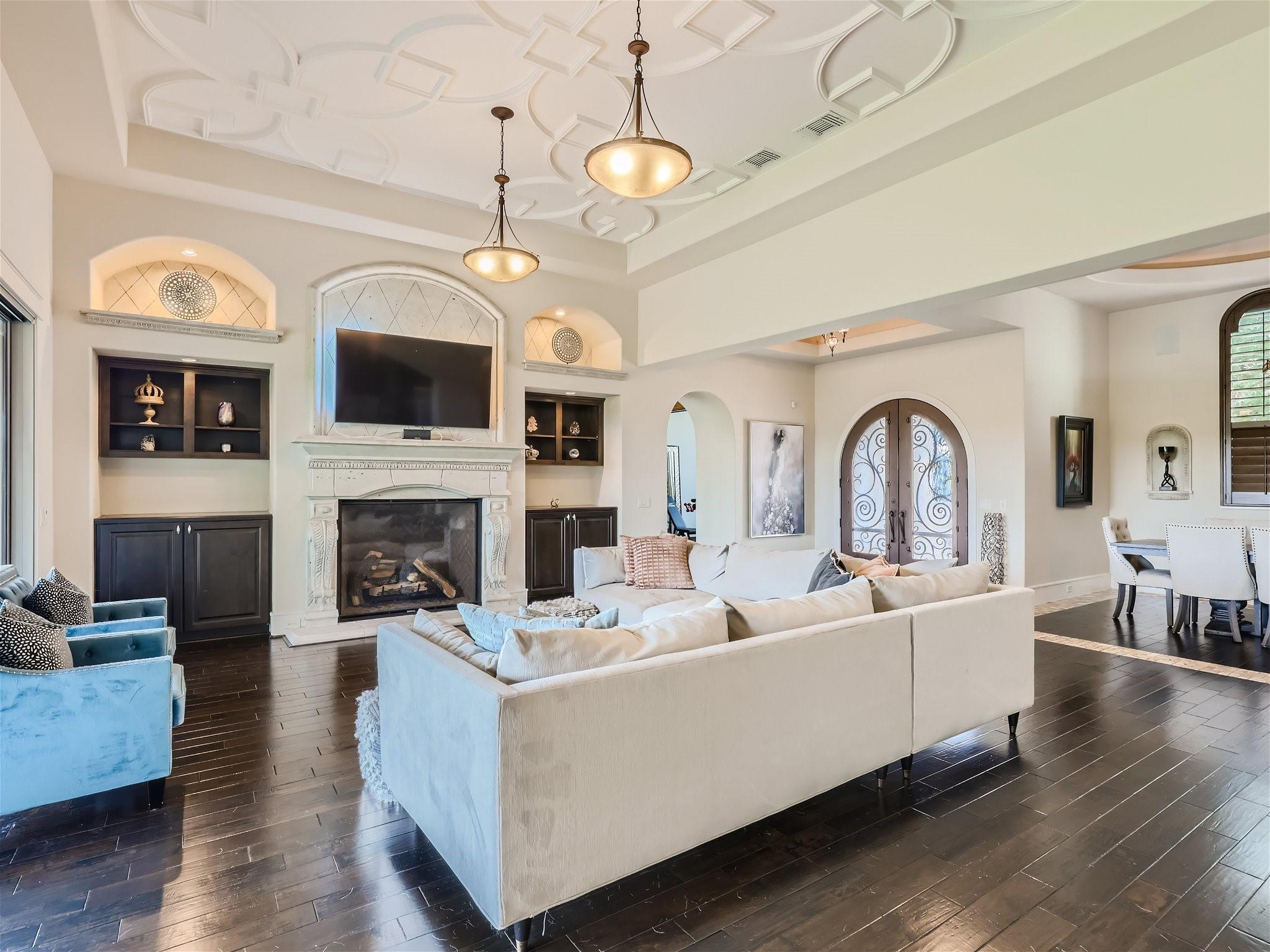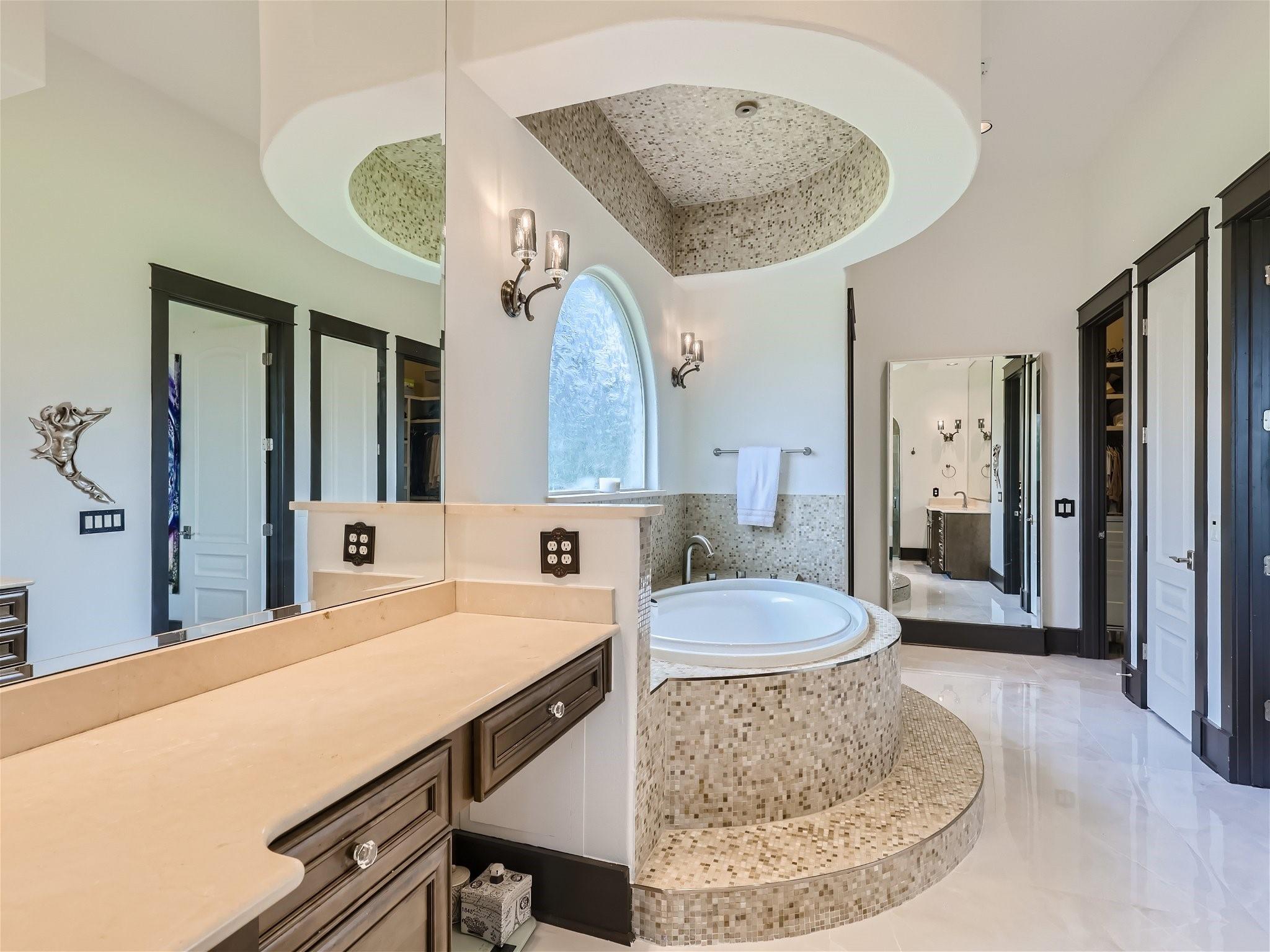 | Interior Features | Bar, Breakfast Bar, Built-in Features, Ceiling Fan(s), Tray Ceiling(s), Chandelier, Granite Counters, Quartz Counters, Double Vanity, Electric Dryer Hookup, Eat-in Kitchen, French Doors, High Speed Internet, Kitchen Island, Multiple Dining Areas, Multiple Living Areas, Open Floorplan, Pantry, Primary Bedroom on Main, Recessed Lighting, Smart Home, Smart Thermostat, Soaking Tub, Sound System, Storage, Walk-In Closet(s), Washer Hookup, Wet Bar, Wired for Sound | |