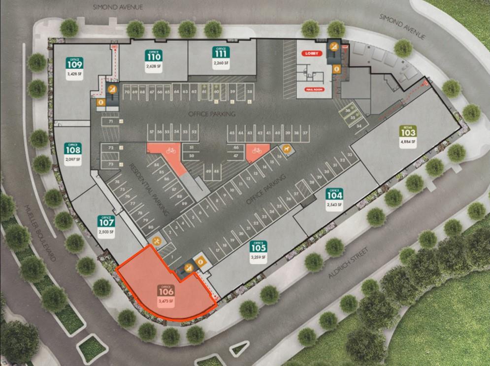 Sayers Real Estate Advisors, Inc. is pleased to present Parkside at Mueller, a unique opportunity to own ground-floor commercial space in the award-winning Mueller neighborhood. Developed by local developer, Pearlstone Partners, and ATCO, the Property offers eight direct-entry commercial condo units below 200 residential condo units. Sitting at the doorstep to the Aldrich Street Entertainment District and directly across the street from the Mueller Lake Park, each unit benefits from an irreplaceable location. Ranging from 2,097 to 3,400+ square feet, the units are ideally suited for a professional office user or service-based retailer looking to serve the needs of the surrounding community. The units will be delivered in shell condition with a modern storefront in place.