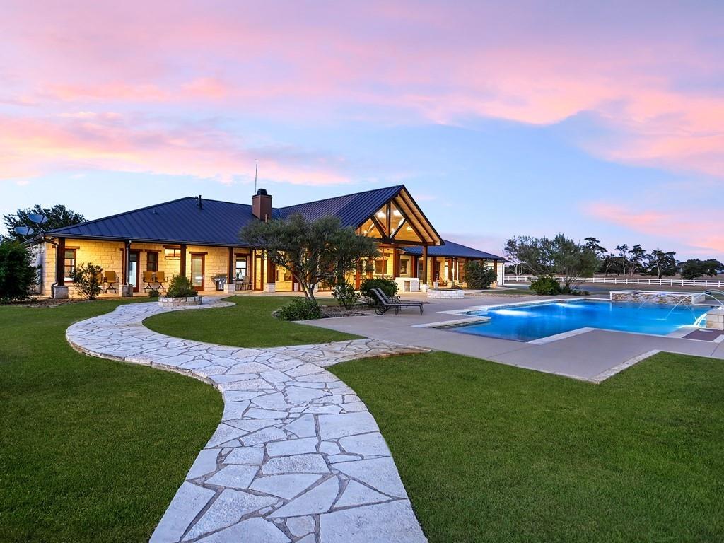 Nestled on approximately ~108 acres of picturesque landscape, this exceptional ranch property offers a harmonious blend of luxury and functionality. The one story main house, spanning ~7,200 square feet, boasts 3 bedrooms and 4 bathrooms, providing ample space for comfortable living and entertainment. Additionally, a spacious ~2000 square foot guest house with 2 bedrooms and 2 bathrooms, along with a garage-shop apartment featuring 1 bedroom and 1 bathroom, ensure accommodations for family and friends. Outdoor amenities abound, including a refreshing pool, a generously sized 60 by 180 steel building covering over 10,000 square feet, and a convenient helicopter pad. The property's natural beauty is further accentuated by a 3.5-acre stock pond and a serene dock with seating, offering moments of tranquility. Thoughtful details such as 4 custom-built cattle guards and 4 cattle watering tanks showcase its suitability for ranching. This unique property offers endless possibilities and is a must see! Great for a corporate retreat, treatment center, or family ranchSituated in close proximity to the charming town of Round Top, and between Austin and Houston, this property stands as an idyllic ranch retreat that seamlessly combines elegance with rural living. *Buyer to independently verify all information such as square footage, acreage, restrictions, exemptions, schools, taxes, etc.