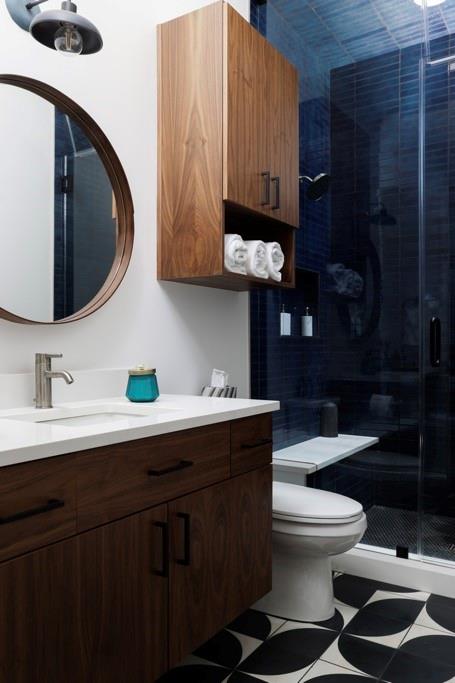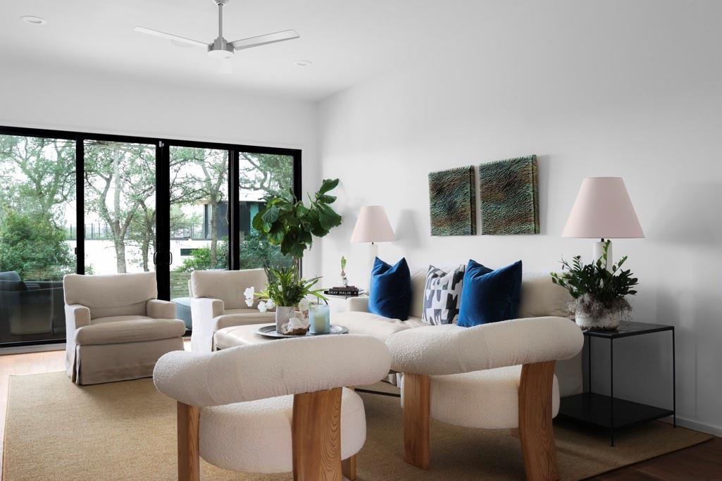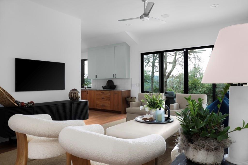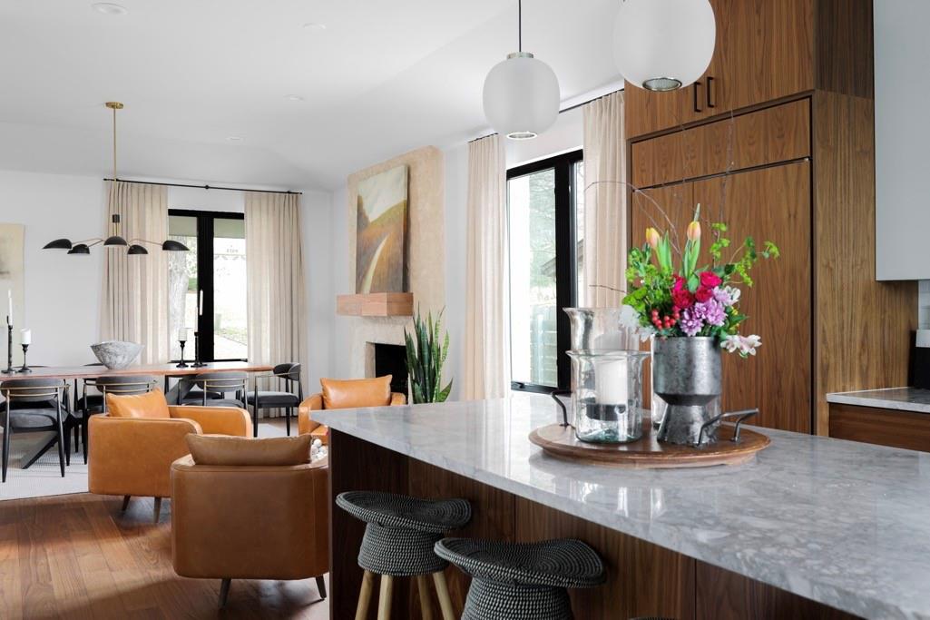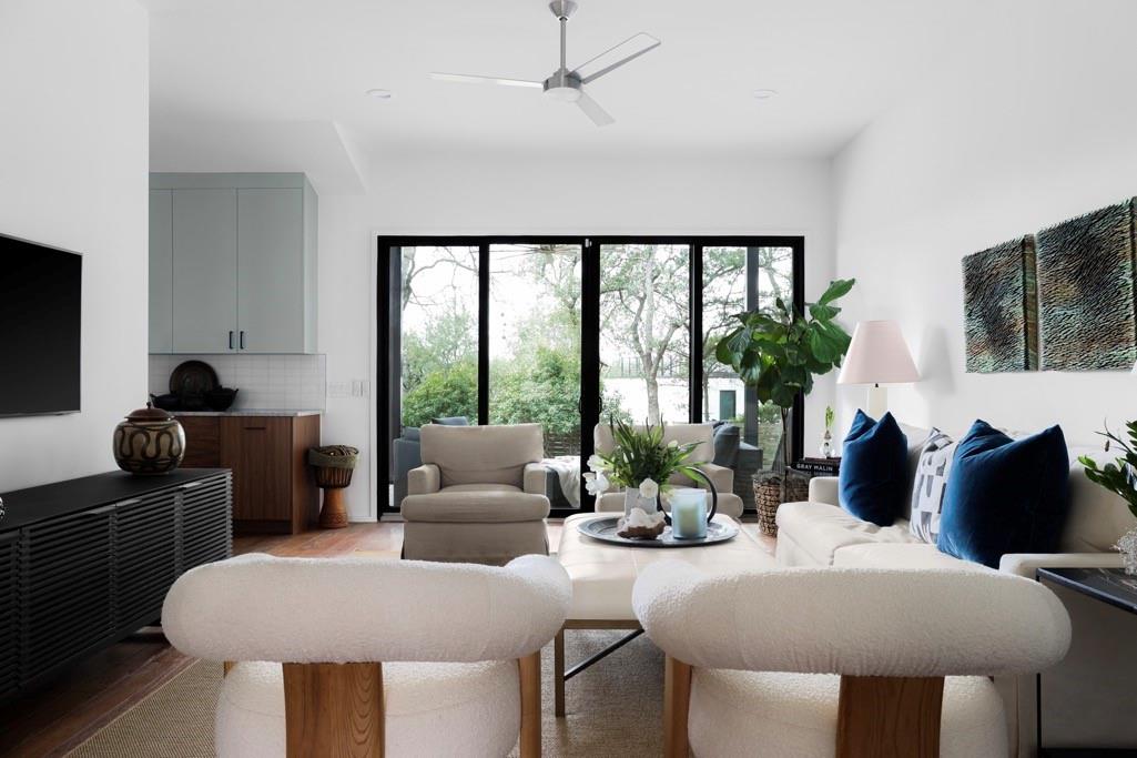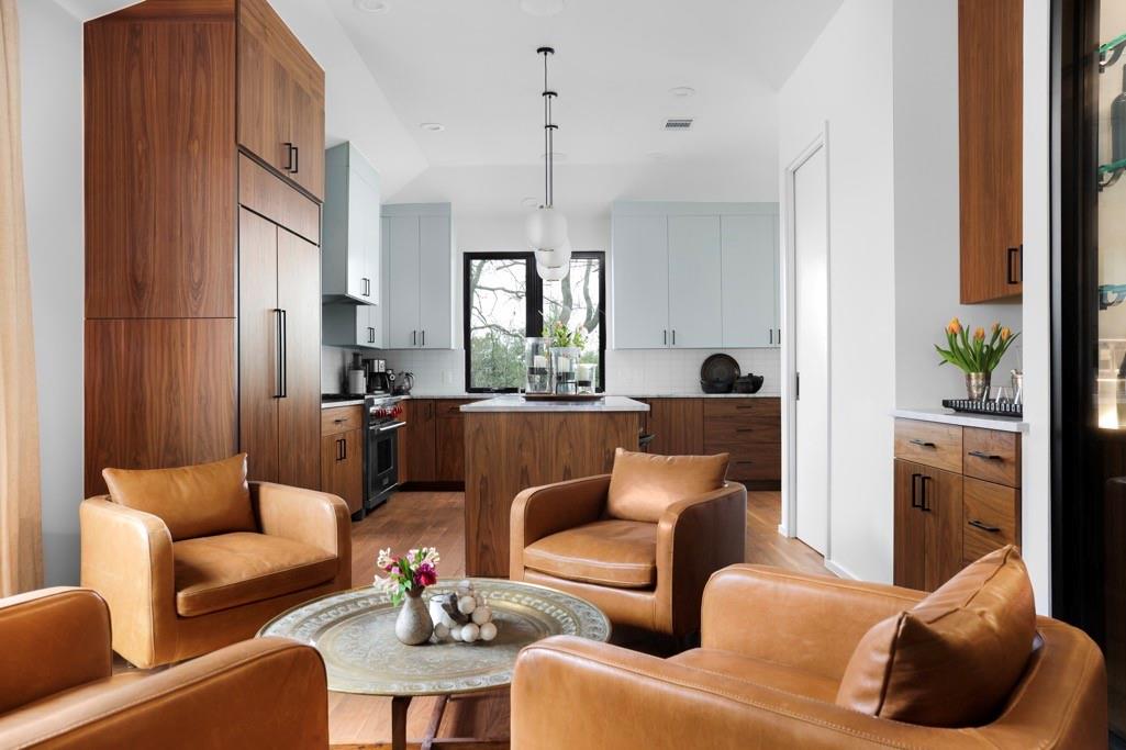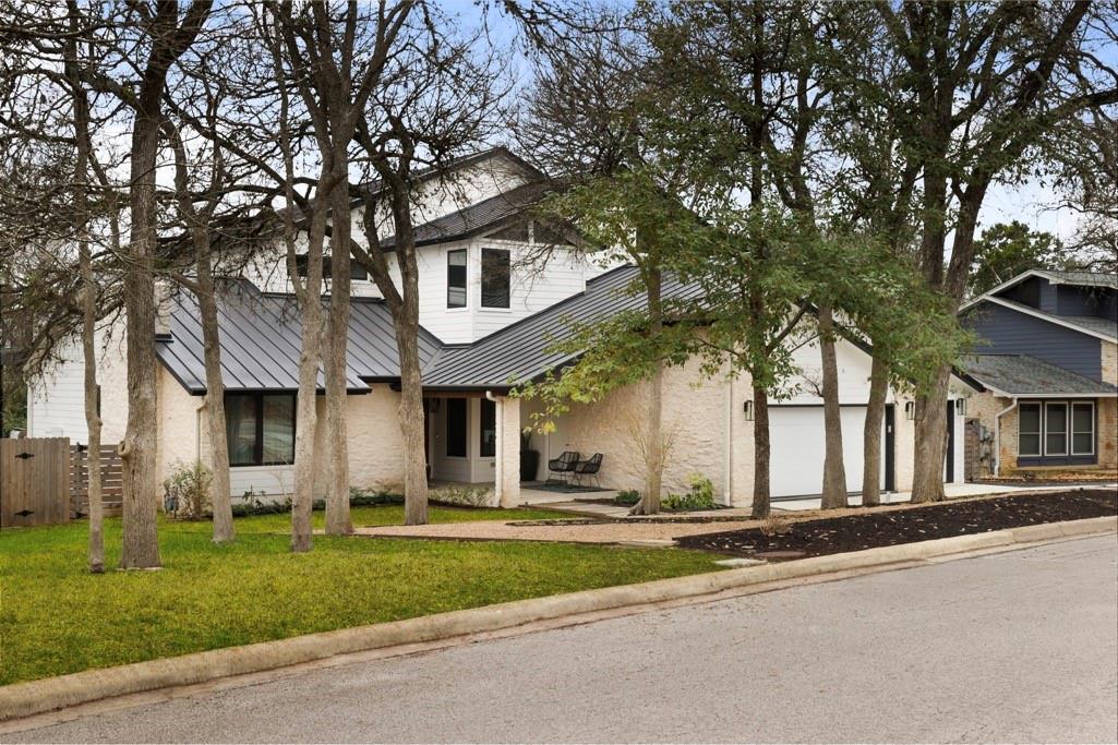 Built in 2021, this home is a beautiful blend of mid-century modern elements and contemporary design. Located on a quiet, tree-lined street, you can appreciate the close proximity to Downtown while feeling like you're miles away. The homeowner collaborated with Barron Custom Design and Revent Builds to create a truly unique property that seamlessly blends indoor and outdoor living. Spread out on the main level is a cozy living room with floor-to-ceiling doors that open up to the outdoor patio and kitchen with views of the Barton Creek Greenbelt. The outdoor kitchen includes a grill, sink, refrigerator, storage, and pull-out trash can component. As you walk through the front door, you'll be met by the walk-in wine cellar and formal dining room, which includes a fireplace, perfect for entertaining with friends and family. Share a glass of wine before dinner in the casual sitting area between the kitchen and dining room. The kitchen itself features all top-of-the-line appliances. The primary suite includes his and hers closets and a luxurious bath with a soaking tub and spa shower. There's an additional guest bedroom and bath as well as home office on the main level. Making your way up the custom staircase to the second floor are 3 bedrooms and a huge flex room and additional outdoor patio space. The flex room also incudes a partial kitchenette, including a sink, cabinets, and under-counter refrigerator. Use it as a home office, media room, game room, or gym—the possibilities are endless!