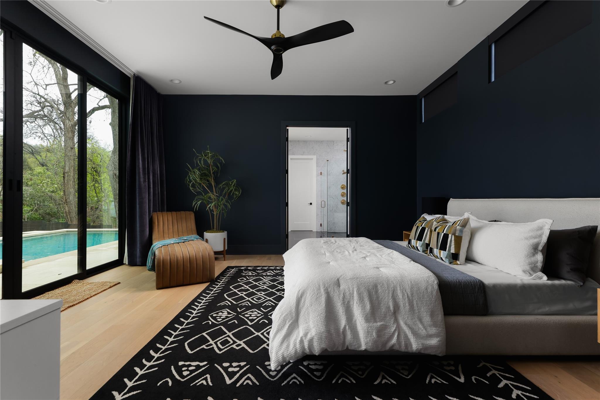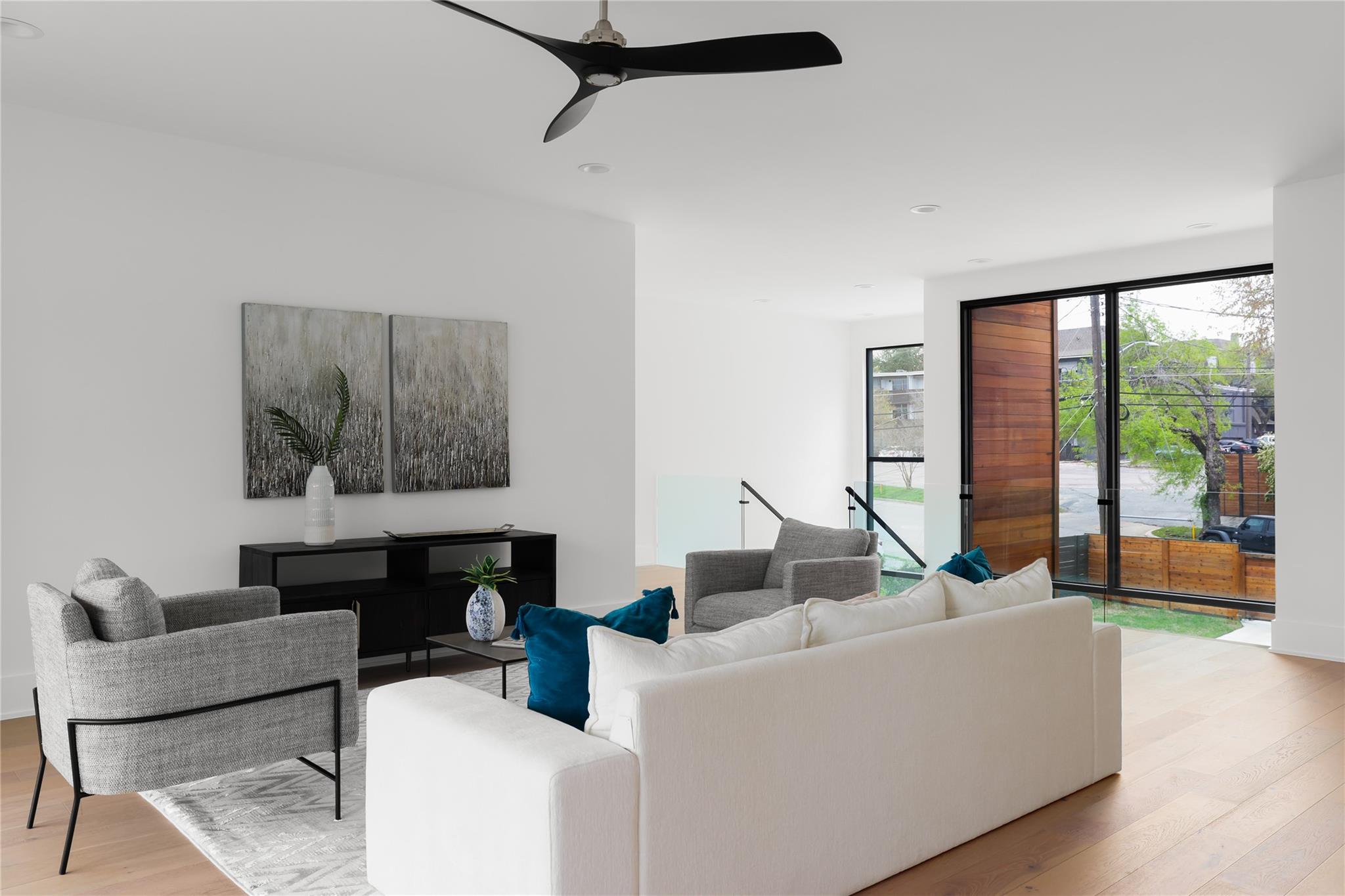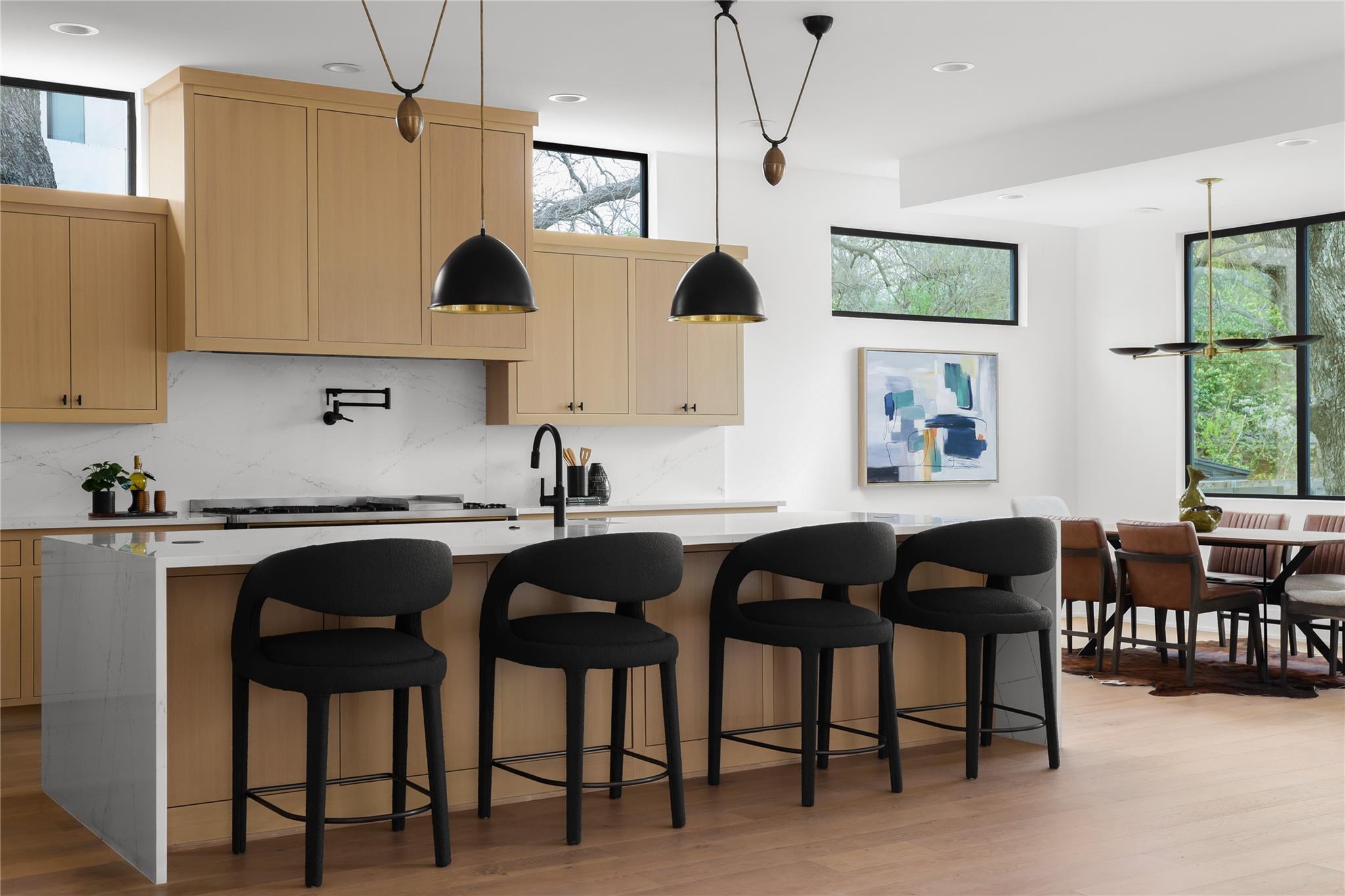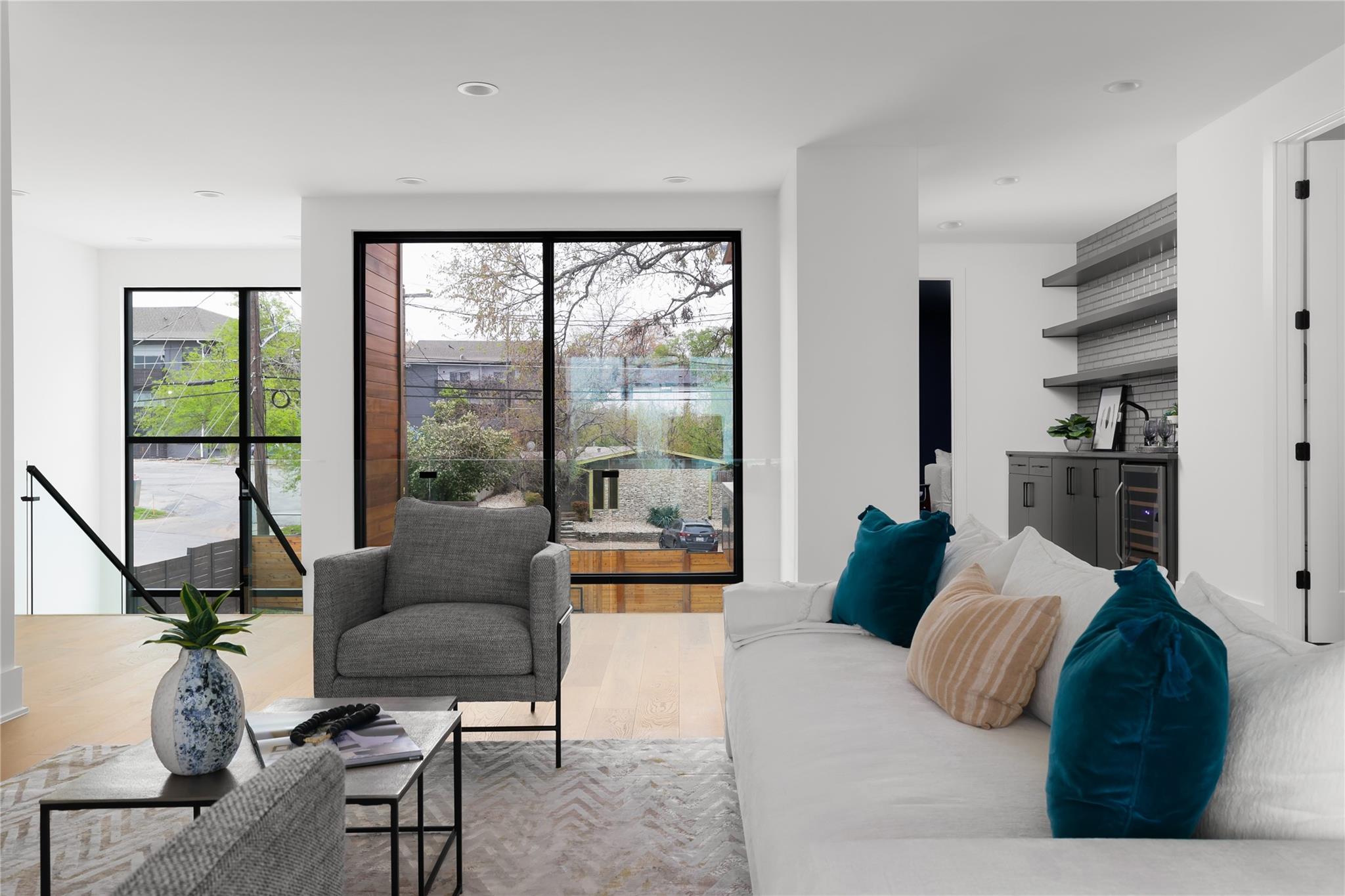 Gorgeous 2023 construction home in Travis Heights neighborhood. Beyond the gated entrance, a striking visual spectacle awaits, marked by floating stairs and expansive windows that bathe the interiors in an abundance of natural light. Privacy reigns supreme, thanks to the generous frontage and wooden privacy fence that shields the property. The downstairs living area seamlessly connects to the gourmet kitchen, featuring a substantial island. Culinary enthusiasts will revel in the 48-inch commercial-grade lLVE Nostalgie range, full wine tower, built-in fridge/freezer, and a separate butler's pantry with a second dishwasher—perfect for hosting elegant gatherings or enjoying intimate movie nights by the grand fireplace. Tucked away at the rear of the home, the owner's suite offers a sanctuary of serenity, overlooking the inviting pool. The convenience of an adjacent office/nursery and a guest full bathroom downstairs adds to the thoughtful layout. Ascend the floating stairs to discover a second level of indulgence, boasting three bedrooms, each with its ensuite bathroom, and a spacious living area. A wet bar with an ice maker and mini fridge complements the upstairs retreat, while a balcony provides a scenic perch overlooking the pool. Movie enthusiasts will appreciate the dedicated media/theatre room towards the front, equipped with custom motorized blinds for the perfect cinematic experience. Additional guest half bathroom off upstairs living area. Outdoors, the heated pool, and its spa features are effortlessly controlled via a smartphone, ensuring year-round enjoyment. The environmentally conscious will appreciate the solar installation and the added convenience of an EV charger. The backyard, adorned with artificial grass, requires minimal maintenance, while perimeter landscaping is efficiently irrigated. Note the presence of security cameras throughout the premises, ensuring the utmost safety and security for the discerning homeowner.