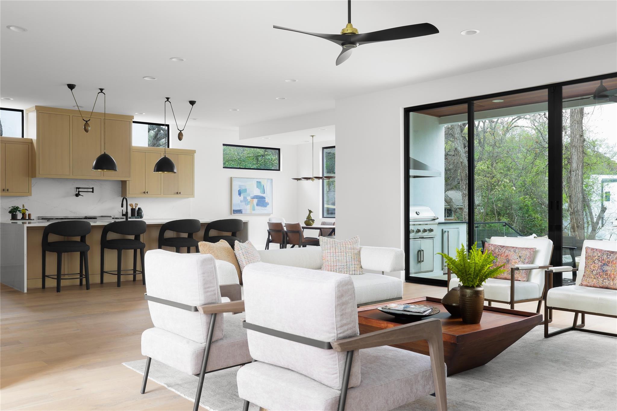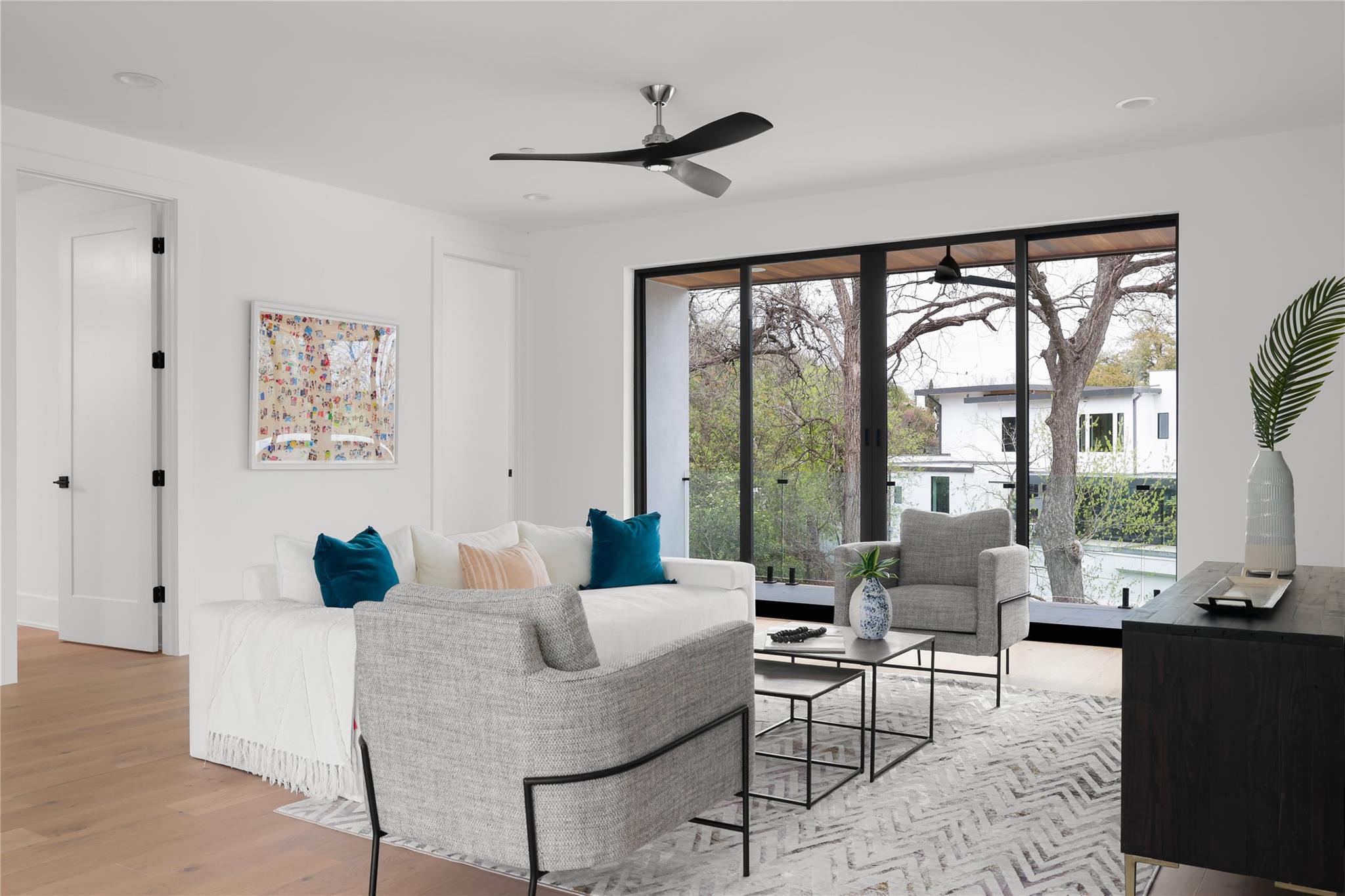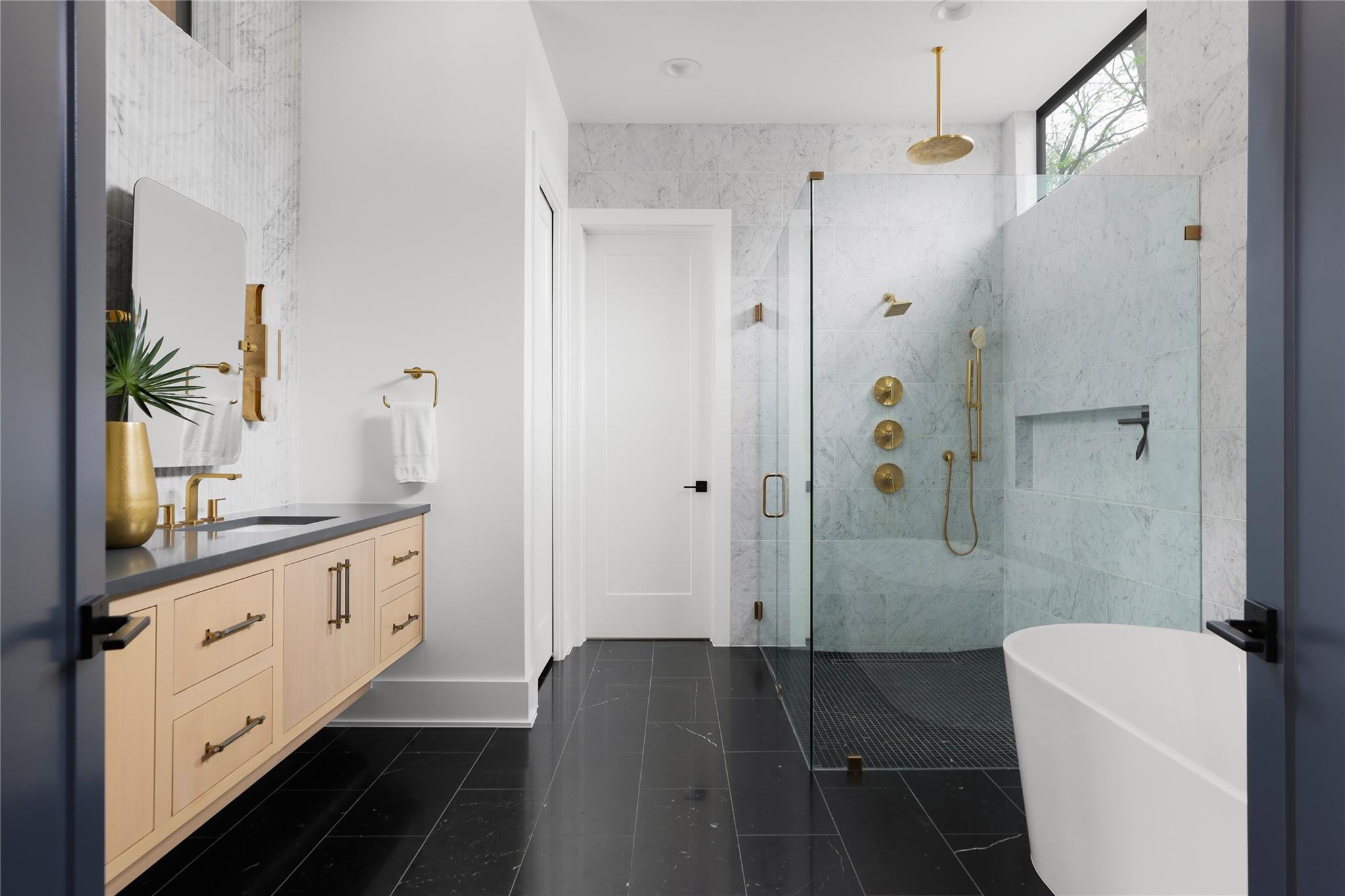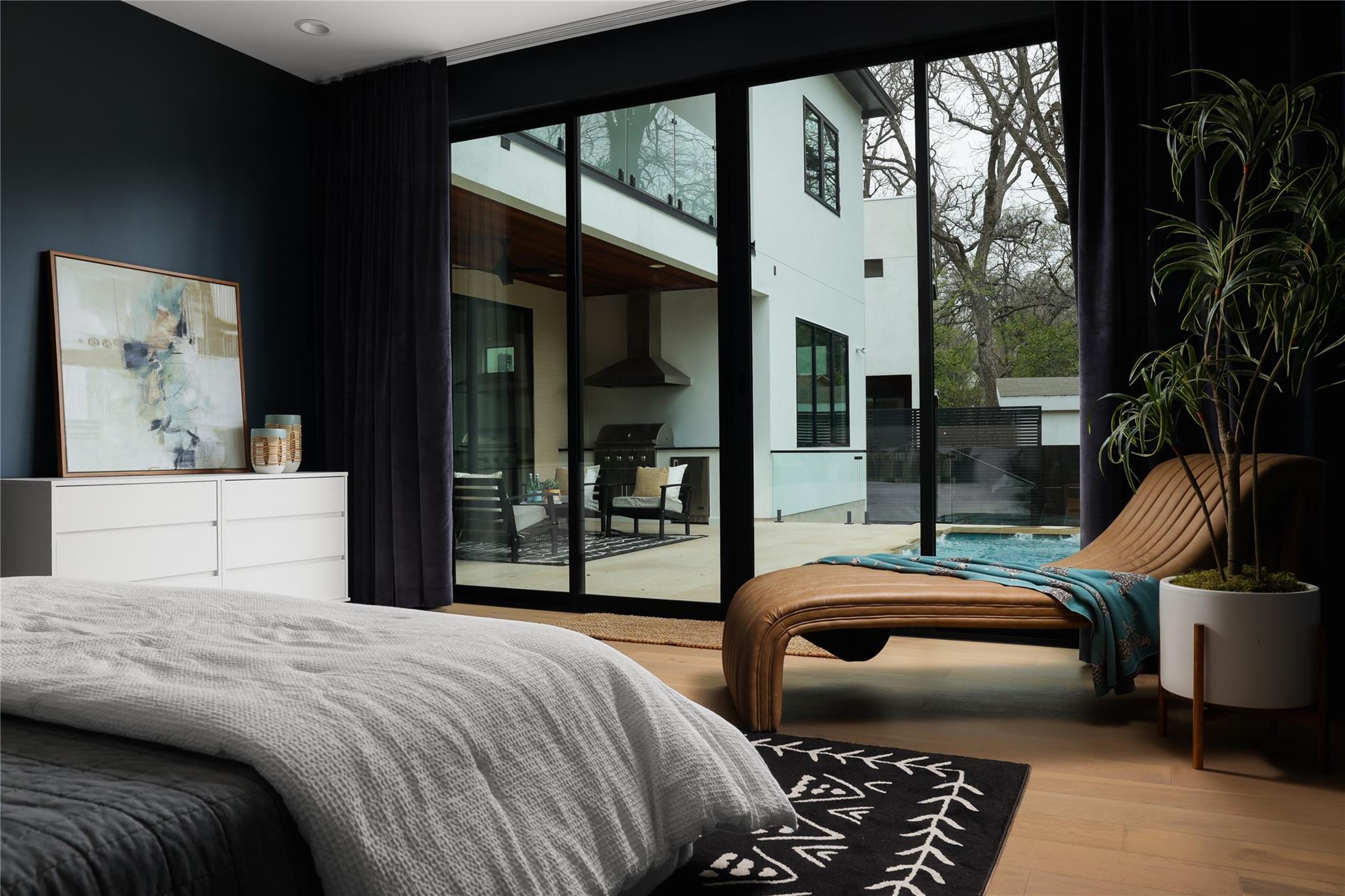 Gorgeous 2023 construction home in Travis Heights neighborhood. Beyond the gated entrance, a striking visual spectacle awaits, marked by floating stairs and expansive windows that bathe the interiors in an abundance of natural light. Privacy reigns supreme, thanks to the generous frontage and wooden privacy fence that shields the property. The downstairs living area seamlessly connects to the gourmet kitchen, featuring a substantial island. Culinary enthusiasts will revel in the 48-inch commercial-grade lLVE Nostalgie range, full wine tower, built-in fridge/freezer, and a separate butler's pantry with a second dishwasher—perfect for hosting elegant gatherings or enjoying intimate movie nights by the grand fireplace. Tucked away at the rear of the home, the owner's suite offers a sanctuary of serenity, overlooking the inviting pool. The convenience of an adjacent office/nursery and a guest full bathroom downstairs adds to the thoughtful layout. Ascend the floating stairs to discover a second level of indulgence, boasting three bedrooms, each with its ensuite bathroom, and a spacious living area. A wet bar with an ice maker and mini fridge complements the upstairs retreat, while a balcony provides a scenic perch overlooking the pool. Movie enthusiasts will appreciate the dedicated media/theatre room towards the front, equipped with custom motorized blinds for the perfect cinematic experience. Additional guest half bathroom off upstairs living area. Outdoors, the heated pool, and its spa features are effortlessly controlled via a smartphone, ensuring year-round enjoyment. The environmentally conscious will appreciate the solar installation and the added convenience of an EV charger. The backyard, adorned with artificial grass, requires minimal maintenance, while perimeter landscaping is efficiently irrigated. Note the presence of security cameras throughout the premises, ensuring the utmost safety and security for the discerning homeowner.