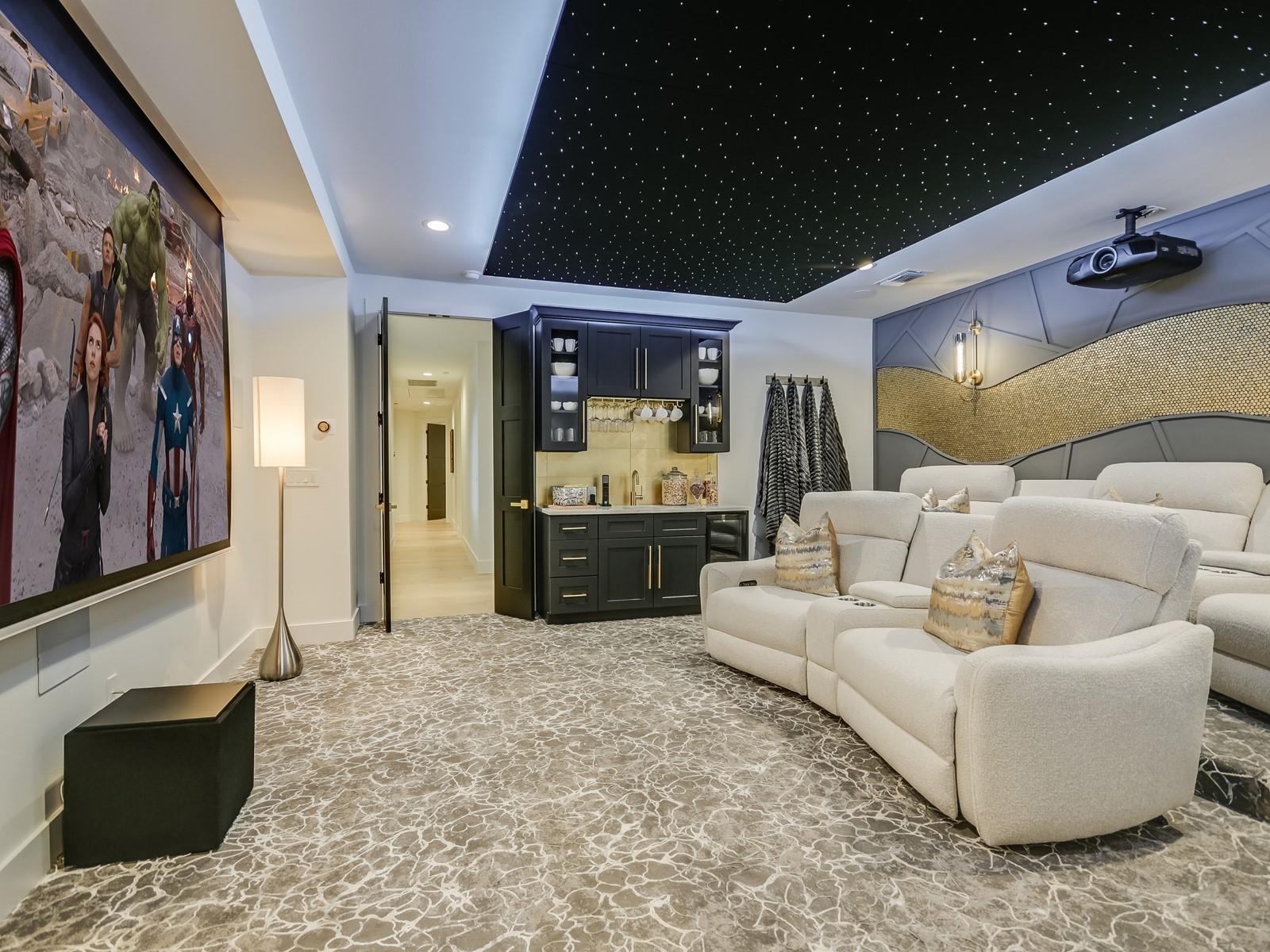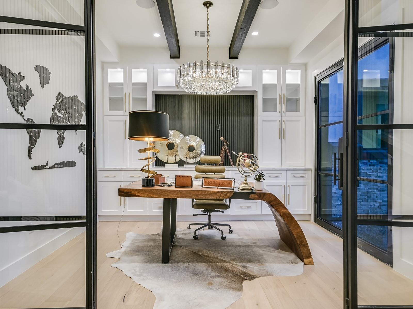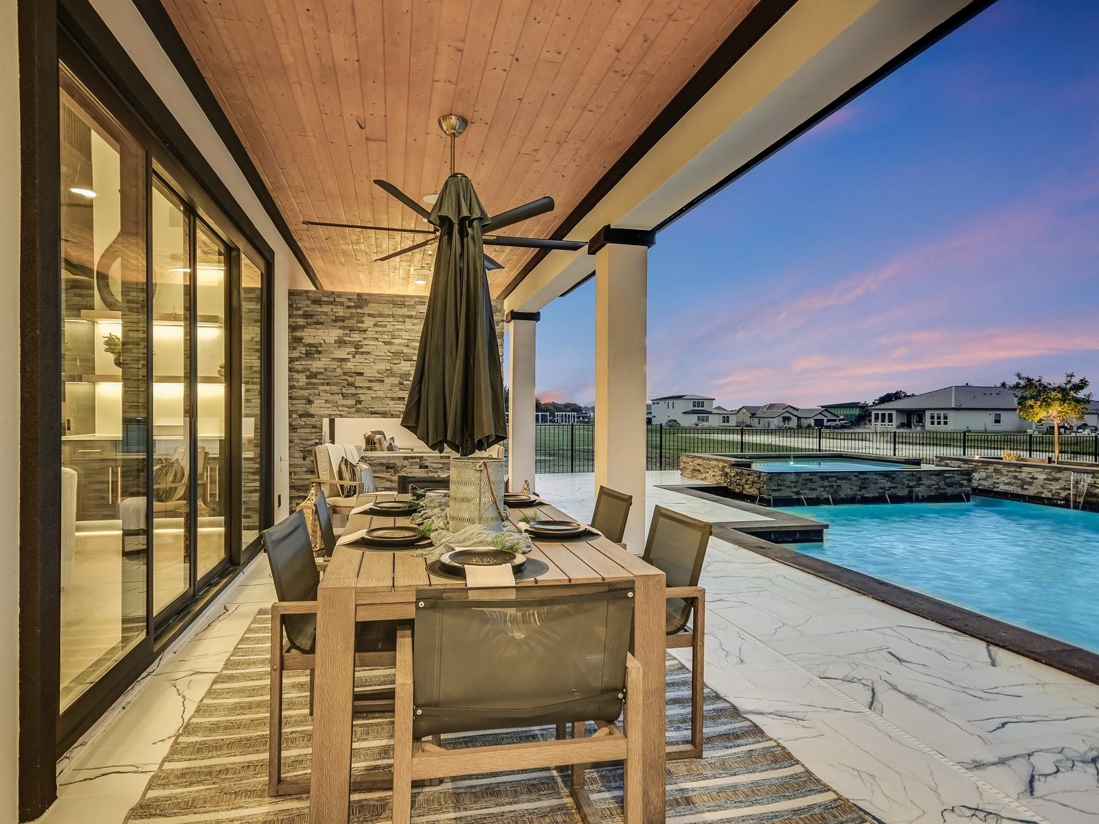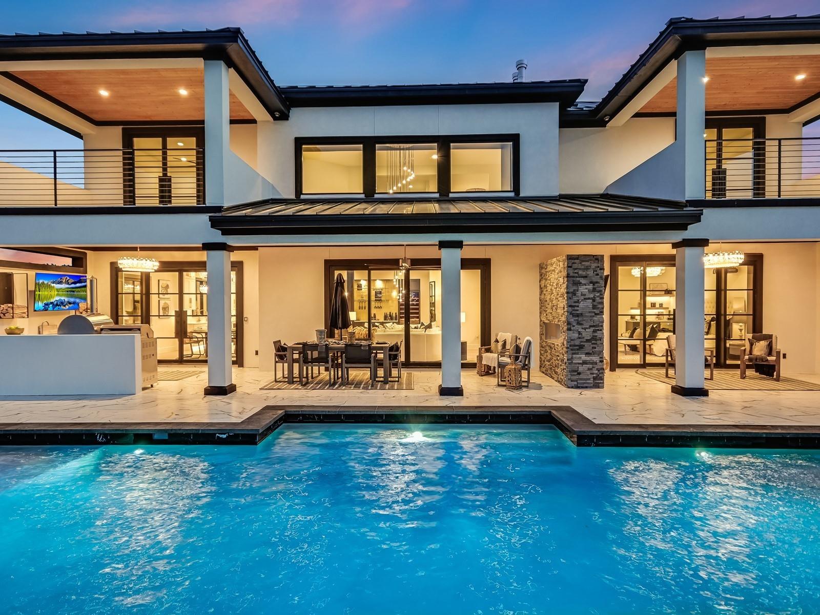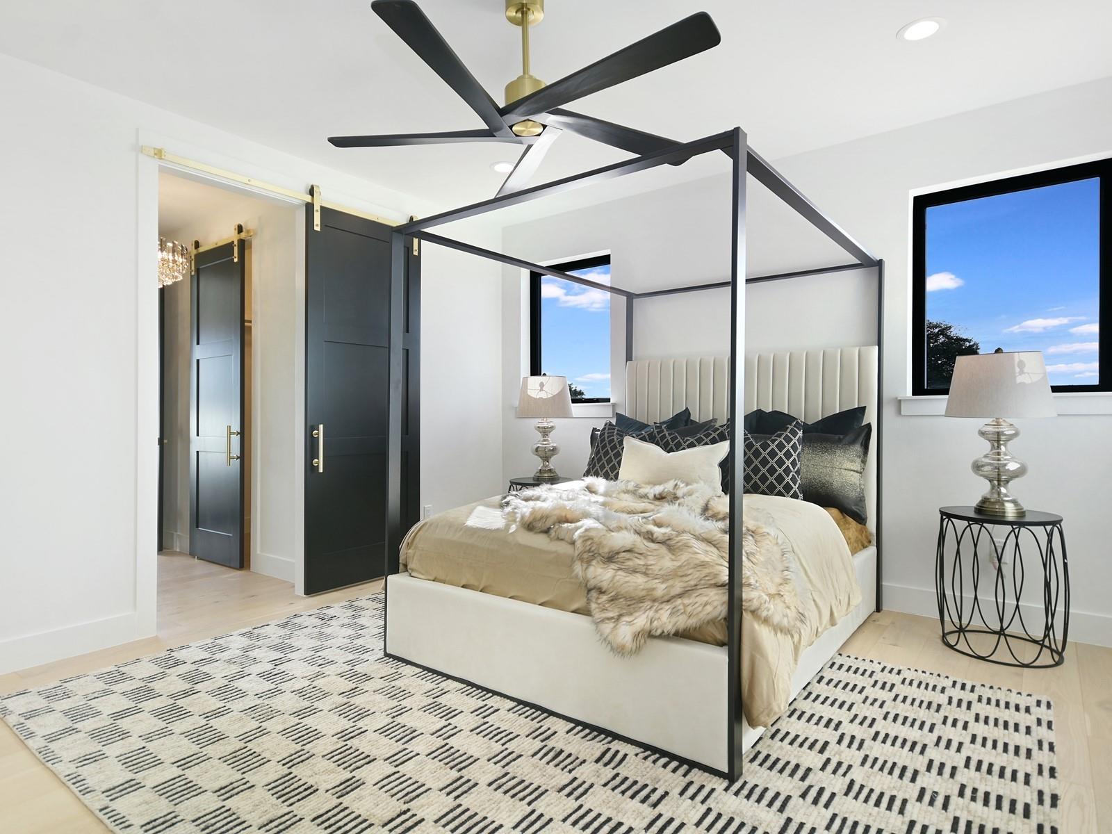 Perched in the upscale Clearwater Landing at Lake LBJ community, this newly constructed residence is the ultimate dream home for those insisting on the finest in design and craftsmanship. Spanning 4,995 sq. ft., this two-story Hill Country contemporary home is graced by a bright and open floorplan boasting wide plank White Oak hardwood floors, designer light fixtures, and a joyful mix of creamy whitewalls, black wrought-iron and glass doors and wood-accented walls and ceiling beams. The captivating two-story foyer, with its cascading chandelier and curved staircase, draws you into a layout made for entertaining. Fluted wall panels anchored by a linear fireplace define the 20’ ceiling in the great room, lit by a dramatic pendant chandelier and natural light that spills in from the 12’ glass sliding doors. The show-stopping gourmet kitchen with custom cabinetry and a large center island features quartz countertops and professional-grade appliances that are duplicated in the adjacent Butler’s kitchen. The divine primary suite presents opulent amenities such as a coffee bar, retractable projector screen, surround sound, and fireplace, plus an ensuite bath better equipped than any high-end spa! The second floor hosts a junior suite, three guest suites, a bonus prayer room, and a loft. Enjoy family time in your home theater equipped with surround sound, a bar for snacks, and plush reclining seats. You will not find another home of this caliber, so don't miss the chance to make it yours! Short golf cart ride to the marina where your boat awaits! Boat slip #69. Lake access and leased boat slip convey.