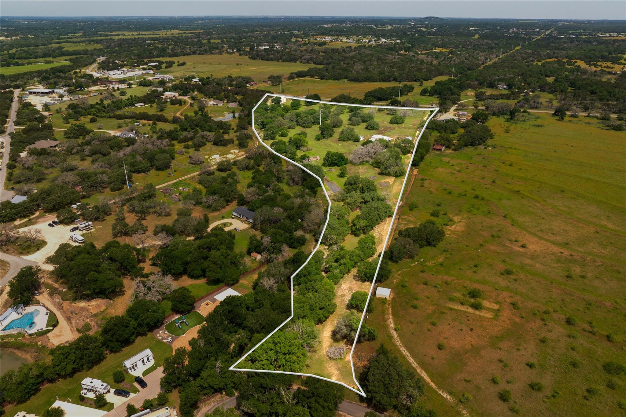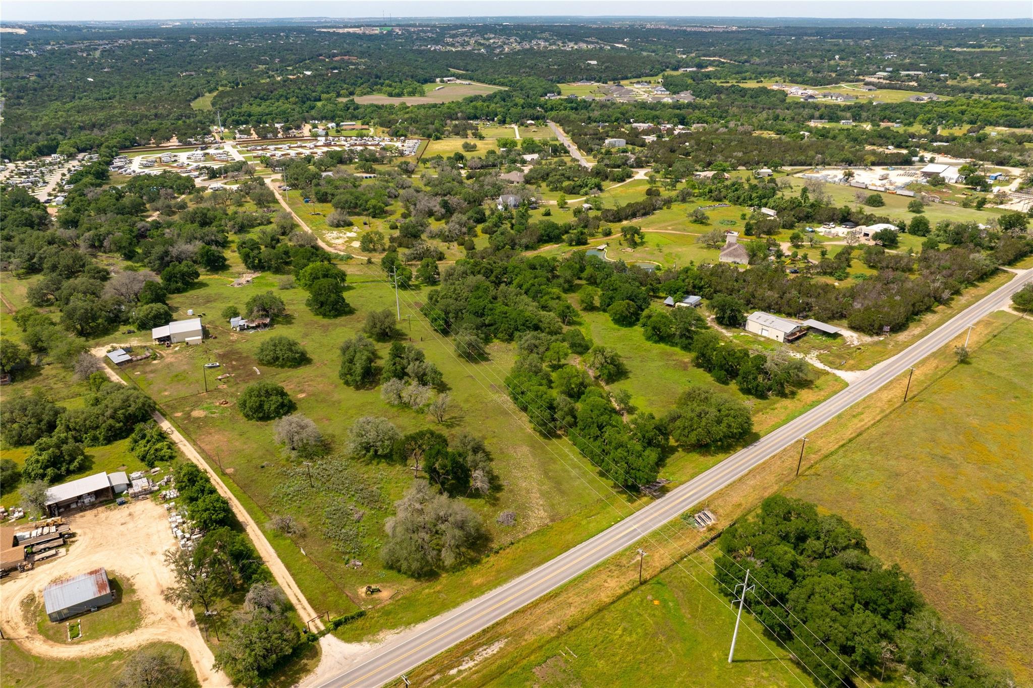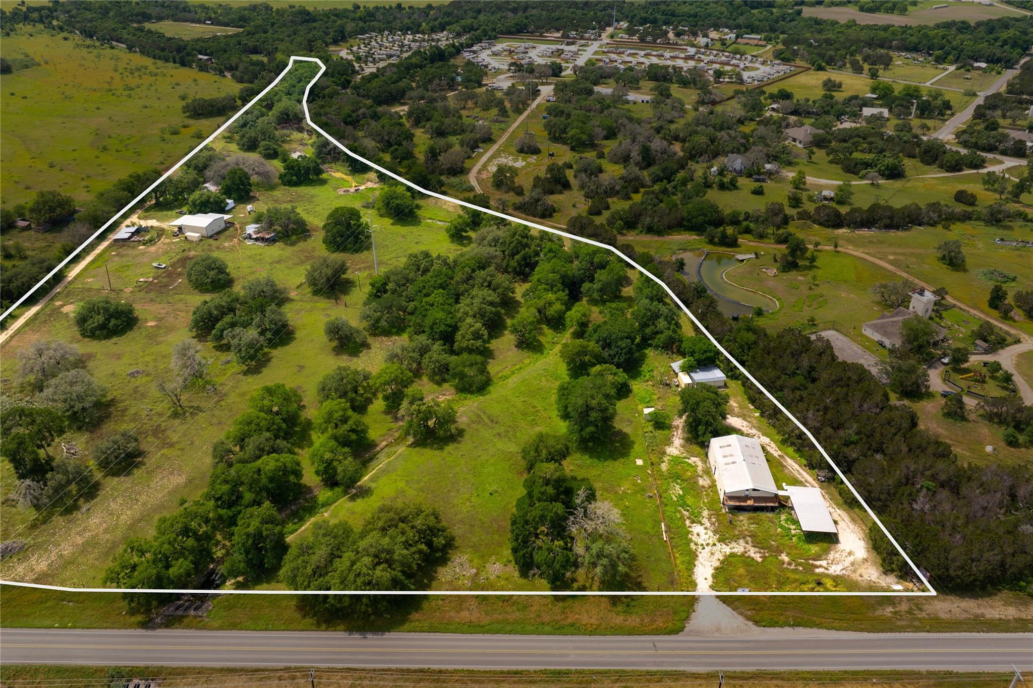 This listing includes the Mercantile store on 17.83 acres (6801 FM 3405) and 1 acre with a small home on it (6755 FM 3405) for a total of 18.83 acres. The home was built in 1930 and is not being shown at this time. The house and all buildings are being sold as-is. The Mercantile store has an apartment on the 2nd floor. Approximately 800 feet of FM 3405 frontage. Completely fenced. Low tax rate, tons of trees, and it’s outside of the city limits. There are so many possibilities with this property!