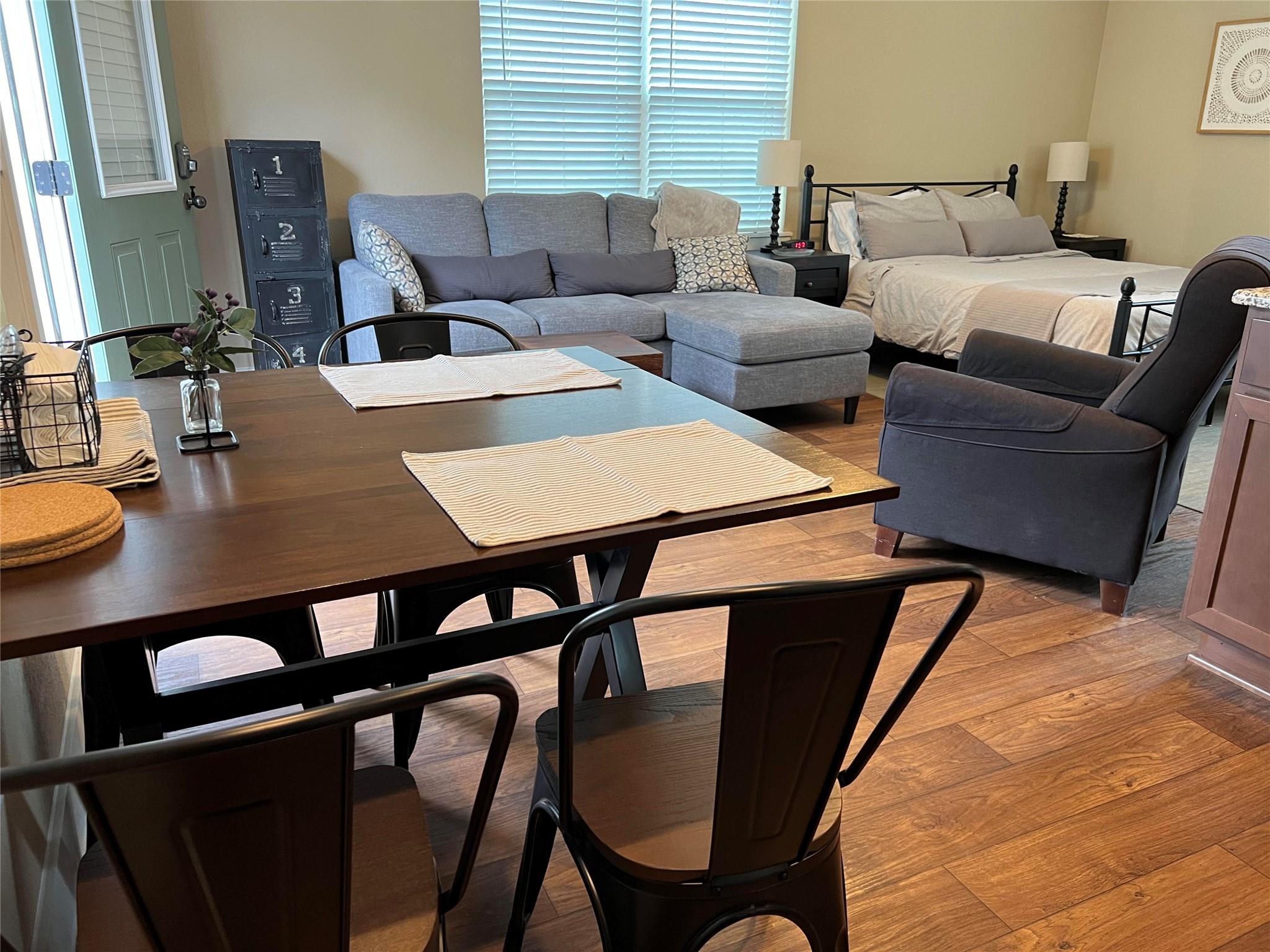 This is an efficiency apartment above the garage. Very nicely furnished and a great location. Main house and garage apartment are on the same utility meters, tenant in garage apartment will pay 20% of the utility fees.