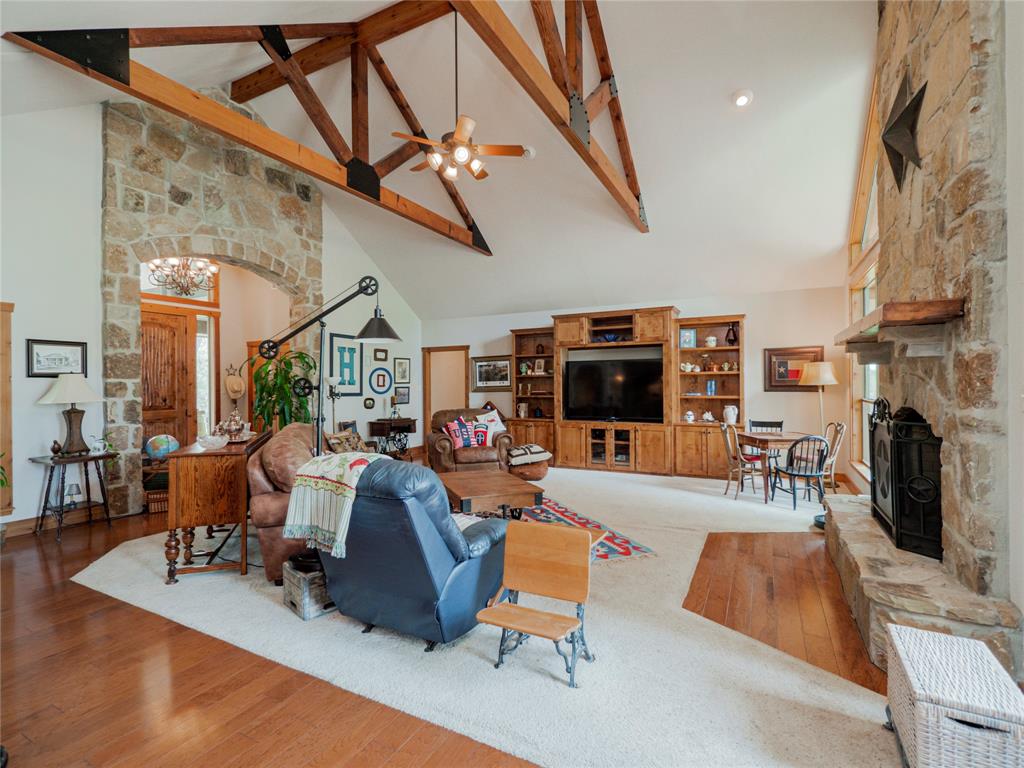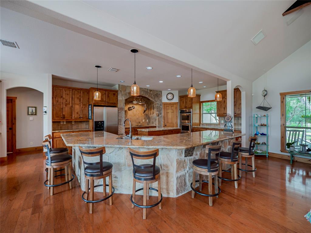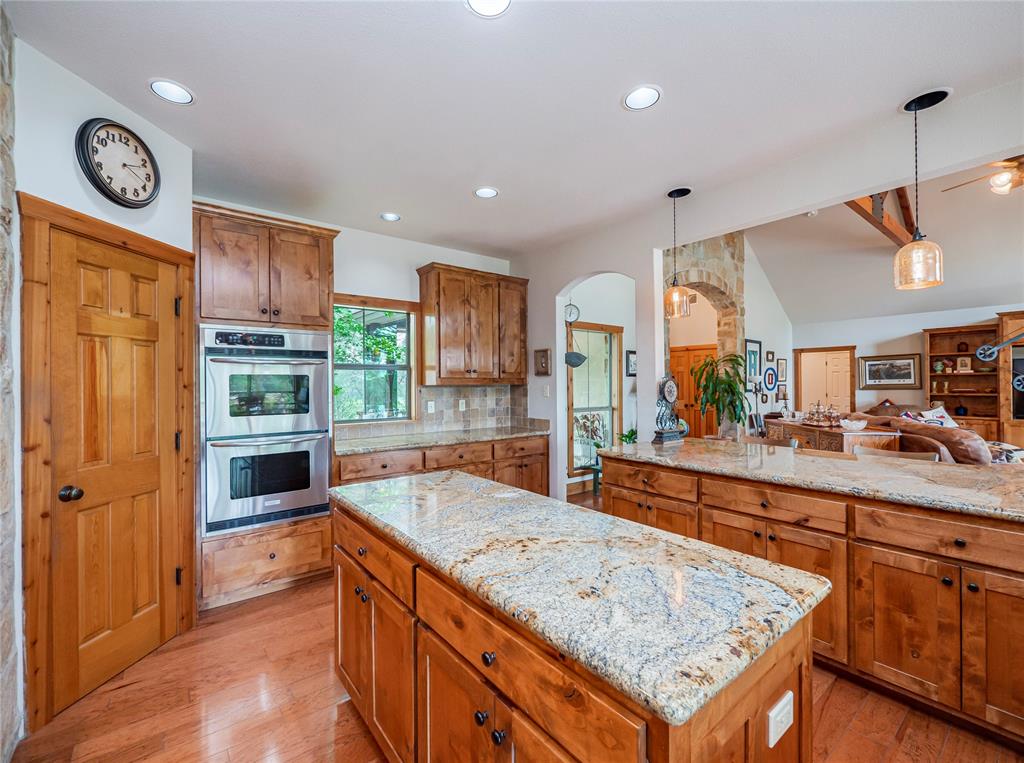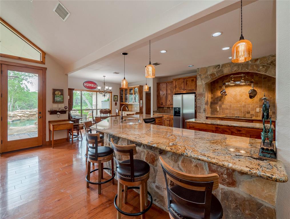 Welcome to your Hill Country retreat! Nestled on 25 fenced acres of mature oak trees and backing up to Rockwall Ranch with an AG exemption in place, this custom home offers all the privacy you could ever dream of. Step inside and be met with stunning cedar posts, high ceilings, rock accent walls and gorgeous wood floors throughout. You'll love cooking in the kitchen with its granite countertops, custom cabinetry and built-in entertainment center complete with a 65" tv. After dinner cozy up in front of the fireplace or take a dip in your resort style pool with waterfall and hot tub! The luxurious master suite includes an attached bonus room for gym, nursery or office. This home features a split floor plan consisting of 3 bedrooms, 3 bathrooms, a 4 car garage with full bath and office, plus an additional workshop with another full bath! There's plenty of room for relaxing or entertaining guests. You will love this 25 acre oasis (hunting is allowed)! Feel like you're way out in the country but less than 20 minutes to major retailers and restaurants in New Braunfels and less than 30 minutes to downtown San Antonio. Property consists of 3 separate parcels of land. With this unique gentlemen's ranch the opportunities are limitless!