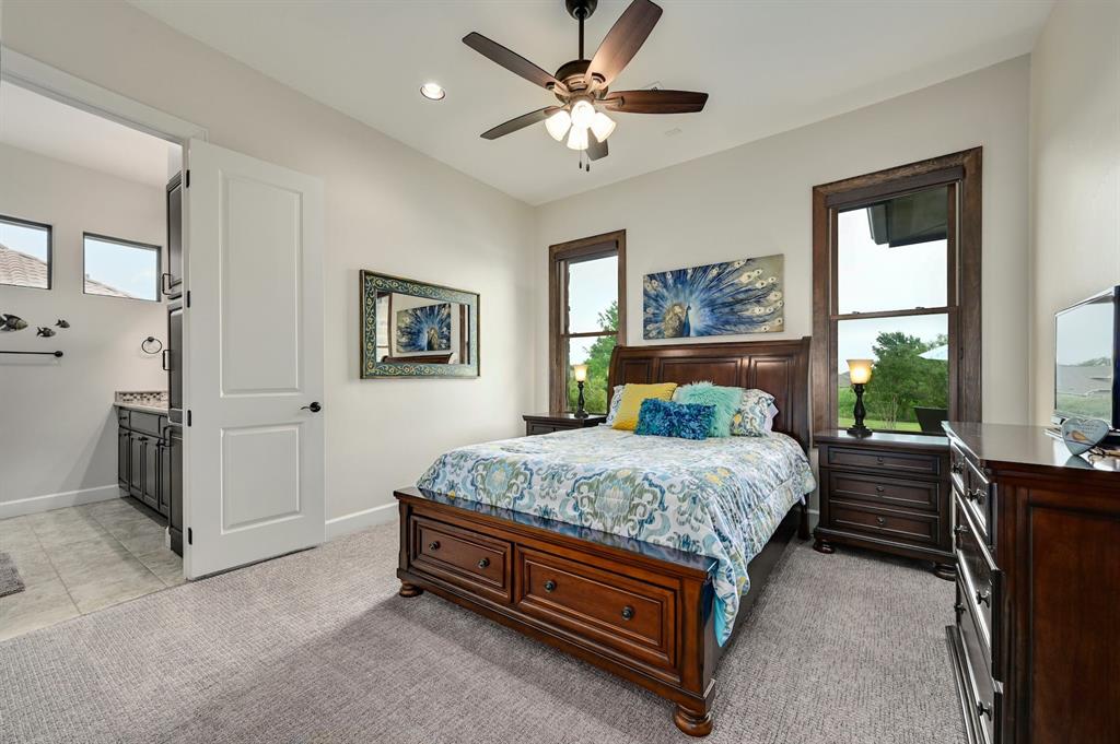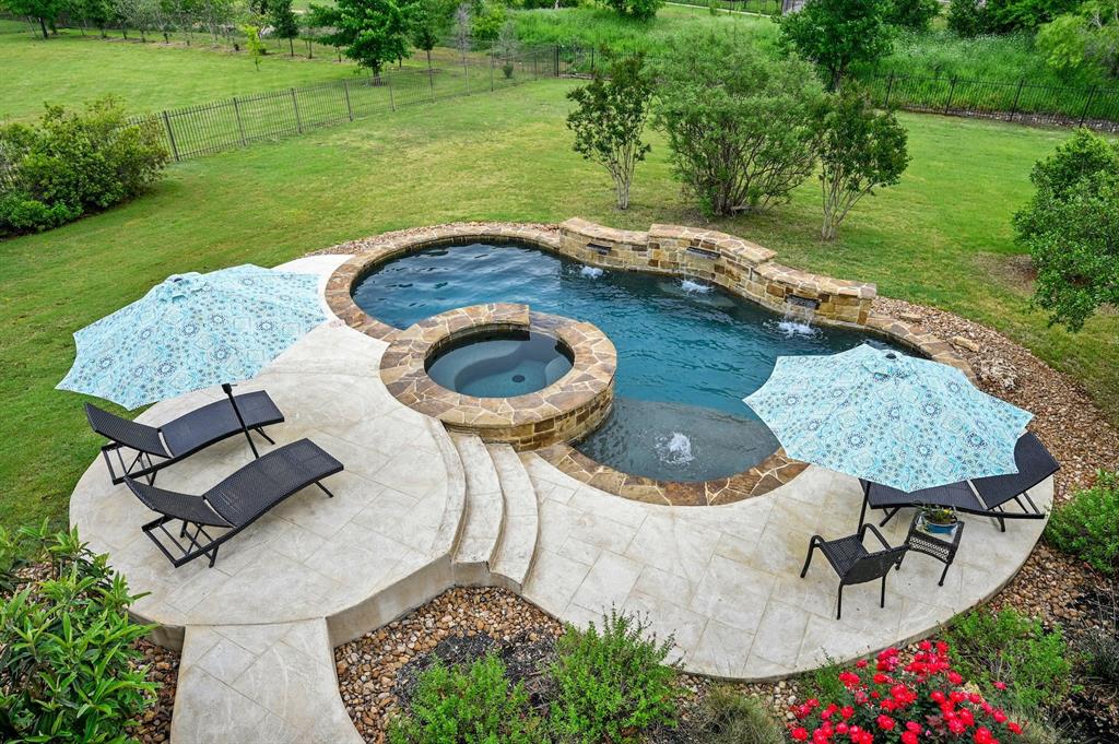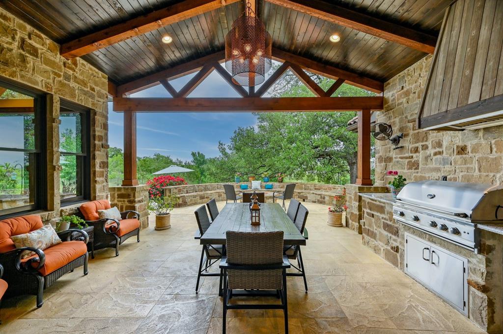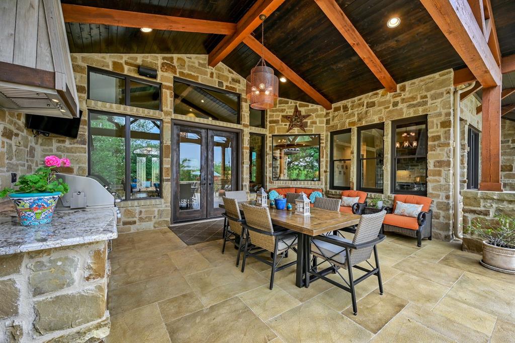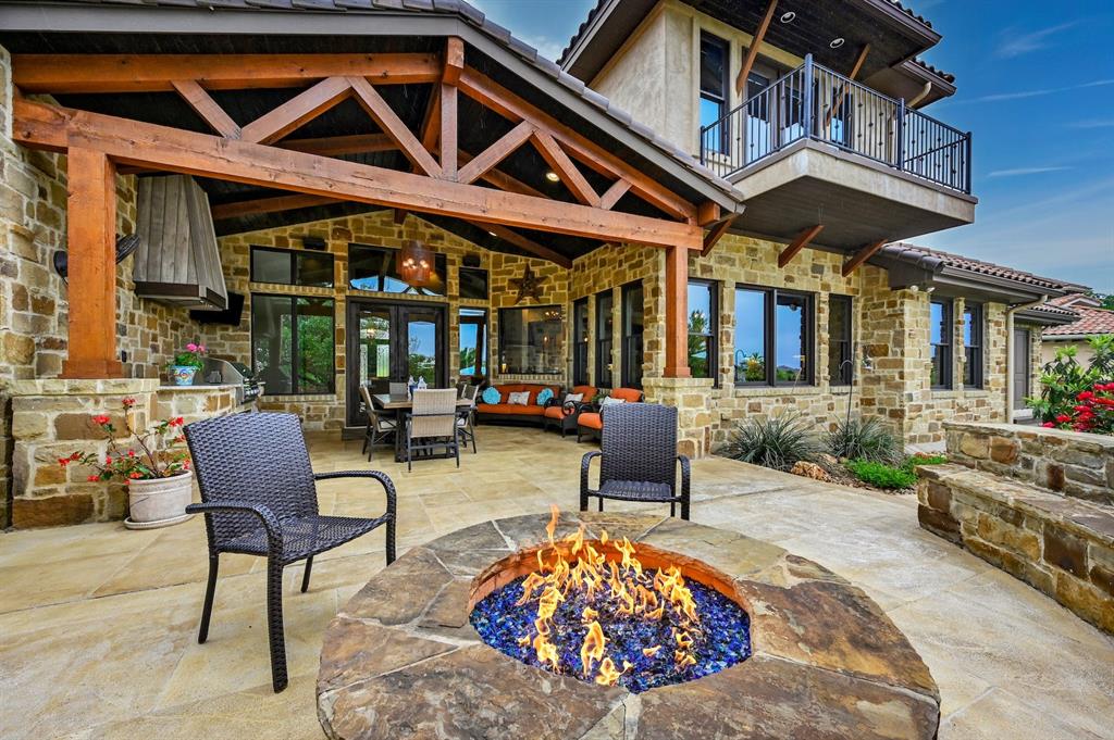 This immaculate home sits on an oversized, estate lot, almost one acre, adorned with heritage oak trees in the award-winning, Jack Nicklaus signature golf course community of Cimarron Hills in Liberty Hill ISD. Inside the home you will find a sprawling 5,233 sqft of living space, 4 bedrooms, 4 full/2 half bathrooms, 2 living areas, an office, & a media room. The floor to ceiling stone fireplace brings comfort and grandeur to the living room, while the white-oak flooring and wood beamed ceiling imbue the home with warmth. The truly uncompromising, state-of-the-art kitchen was designed with chefs and frequent entertainers in mind with an expansive center island, high-end SS appliances that include double ovens with convection, and oversized gas cooktop. The elegant primary suite inspires relaxation with its soft-toned walls, wood flooring, and direct access to the resort-style backyard. Enjoy a spa day in your own glamorous, ensuite bath that boasts 2 vanities, a standalone tub surrounded with stone, and a separate walk-in shower. Find each of the 3 secondary bedrooms on their own separate wing of the home, each having access to their own bath. Upstairs you will find a 3-tier media room with built in dry bar and beverage fridge, perfect for a poker night or family movie night. Extend your living outdoors under the expansive, covered living area that makes entertaining a breeze with an outdoor kitchen, glass fire pit & space for both dining and lounging. The glistening pool is a tempting treat on hot summer days while the outdoor spa is pure relaxation during the winter. An oasis of calm and tranquility can be found at the rear of the property which backs to a green space with direct access to the walking trail out of your back gate. Enjoy all that Cimarron Hills has to offer including golf, tennis, pickleball, spa, fitness center, pool, restaurant, events and socials. You will not just be making an address change; you will be making a lifestyle change...don't miss it!