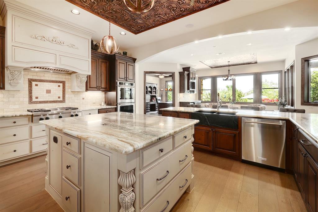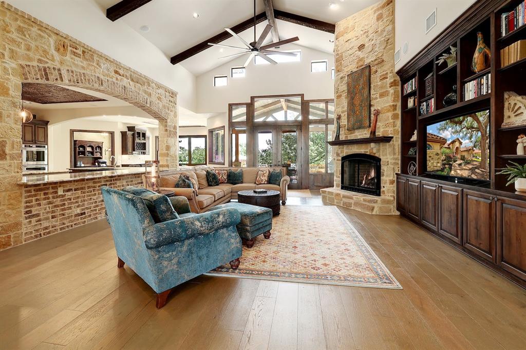 | Interior Features | Bookcases, Breakfast Bar, Built-in Features, Ceiling Fan(s), Beamed Ceilings, Tray Ceiling(s), Vaulted Ceiling(s), Chandelier, Granite Counters, Double Vanity, Eat-in Kitchen, Kitchen Island, Multiple Dining Areas, Multiple Living Areas, Open Floorplan, Pantry, Primary Bedroom on Main, Recessed Lighting, Soaking Tub, Sound System, Walk-In Closet(s) | |
