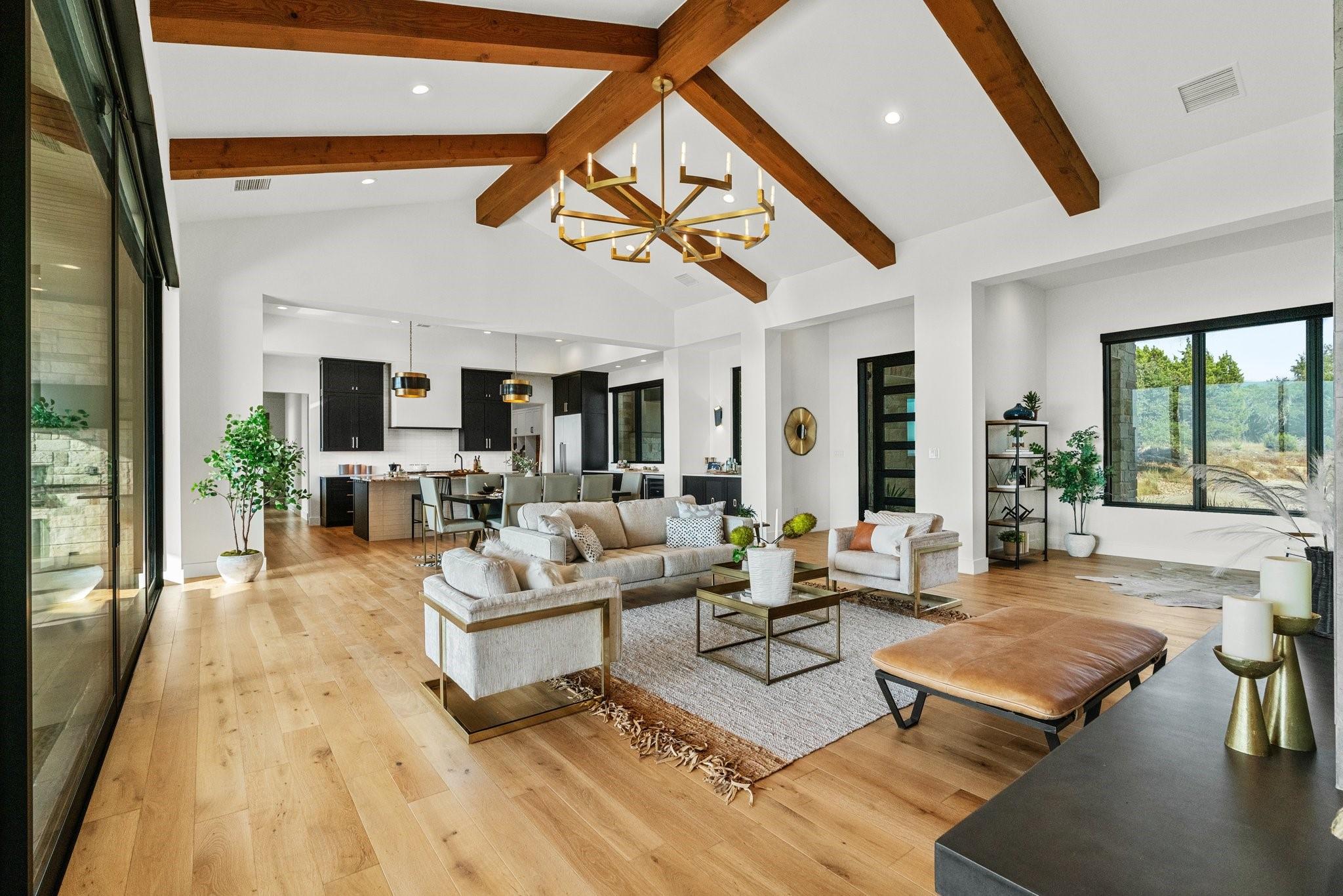| Interior Features | Breakfast Bar, Built-in Features, Ceiling Fan(s), Beamed Ceilings, High Ceilings, Vaulted Ceiling(s), Granite Counters, Quartz Counters, Double Vanity, Dry Bar, Electric Dryer Hookup, Entrance Foyer, In-Law Floorplan, Kitchen Island, Multiple Dining Areas, Multiple Living Areas, Open Floorplan, Pantry, Primary Bedroom on Main, Recessed Lighting, Smart Thermostat, Soaking Tub, Storage, Walk-In Closet(s), Washer Hookup, Wired for Data, Wired for Sound | |