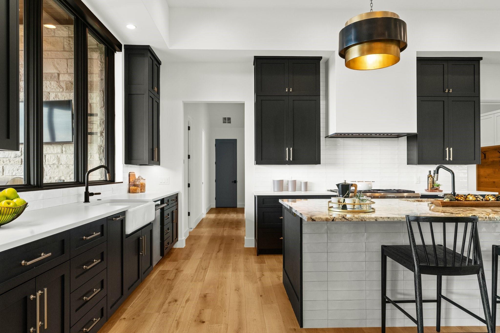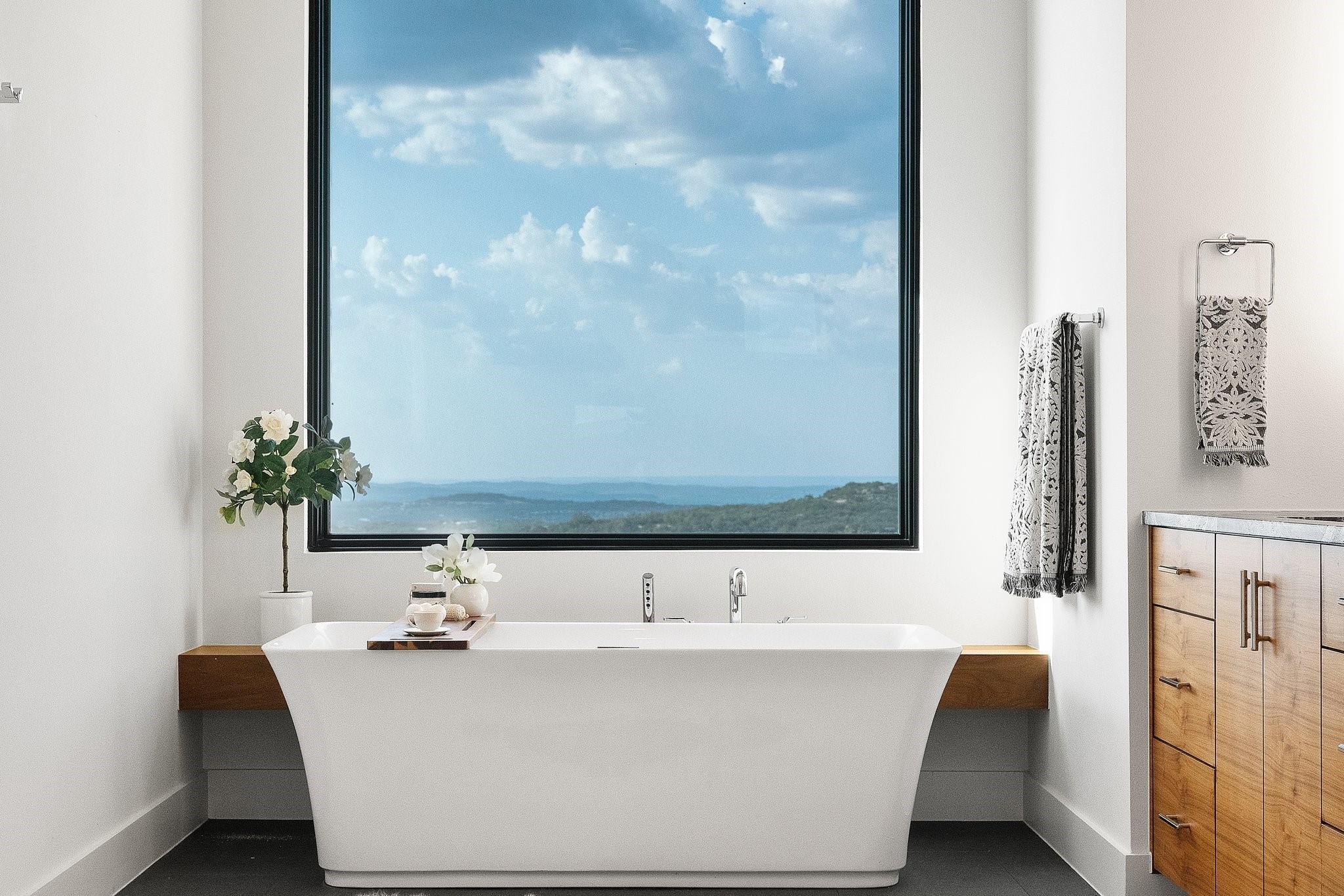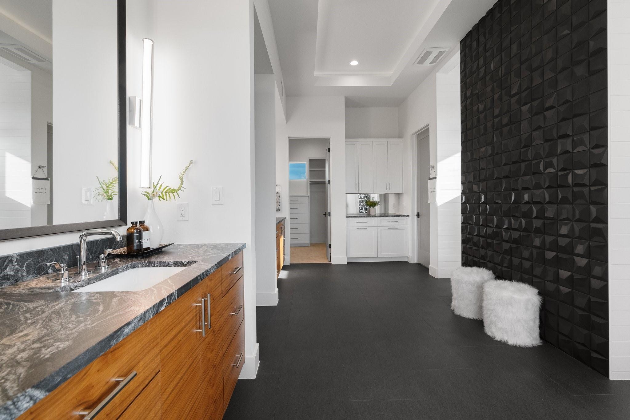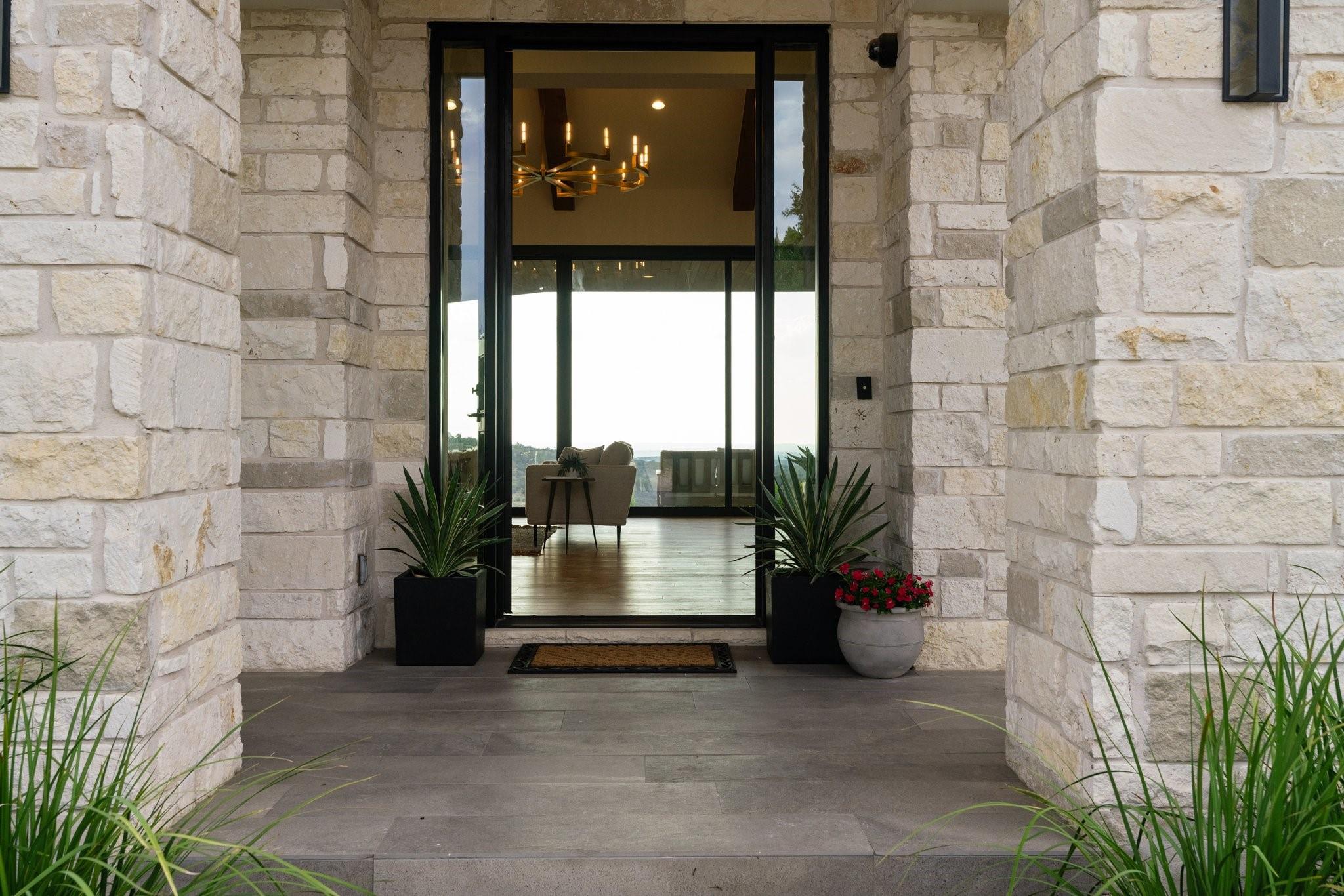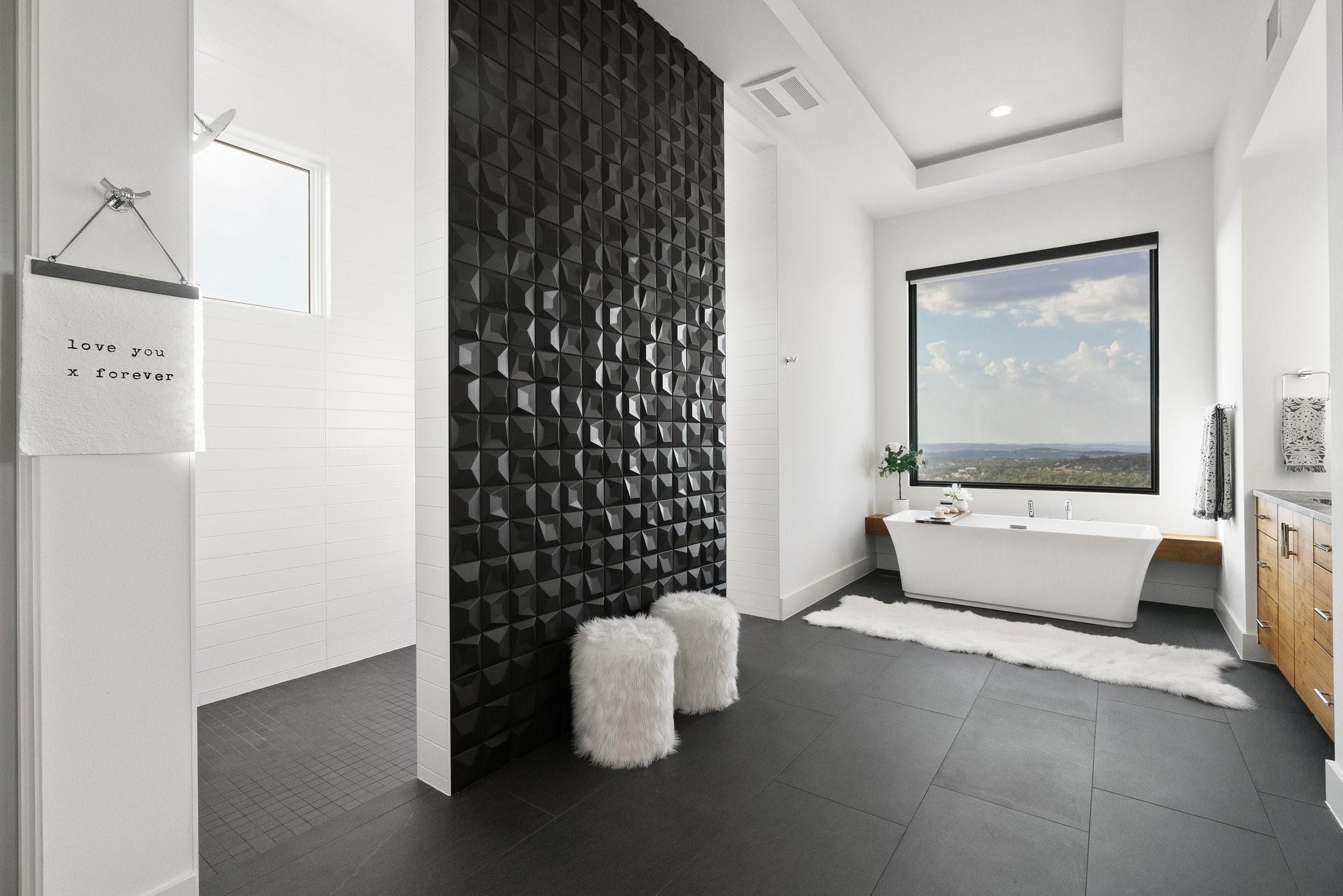 A stunning modern masterpiece graciously nestled atop 28+ private acres with breathtaking panoramic views of the Texas Hill Country. Built in 2018 by the renowned John Siemering Custom Homes, this meticulously designed home beautifully blends bold and neutral tones, harmonizing with the natural surroundings while prioritizing comfort, functionality, and luxury. The open floor plan flows gracefully, boasting a luxurious main-level owner’s retreat, 2 secondary bedrooms, a dedicated study (or 4th downstairs bedroom), and an upper level 5th bedroom, full bath, and spacious additional living, game or media room. The brilliantly designed gourmet-style kitchen is the heart of this exquisite home and a culinary enthusiast's dream, featuring top-of-the-line Thermador appliances, custom black cabinetry with elegant brass hardware creating an eye-catching contrast against the crisp white walls and clean lines of the designer backsplash. The generous granite island serves as the centerpiece of this gorgeous kitchen, providing a dreamy space for cooking, entertaining and gathering with family and friends. The dining flows easily into the main living space further enhanced by soaring wood-beamed ceilings, white oak hardwood floors, a stunning fireplace with custom stone hearth and hand-crafted built-ins, adding warmth and refinement. Bathed in natural light with an abundance of windows and floor-to-ceiling glass doors, spectacular views of the tranquil rolling hills can be seen for miles and miles. Additional smart features include a deep water well, whole-house reverse osmosis + water purification system, 3 zoned HVACs, tankless water heaters, motorized shades, AV wiring, and highly-efficient foam insulation. Endless opportunities for further enhancements such as a pool, extended outdoor living spaces, a guesthouse, sport courts, barns, and more. Low tax rate. Dripping Springs ISD. Minutes to shopping, restaurants, schools, and Lake Travis. The best of Texas Hill Country living!