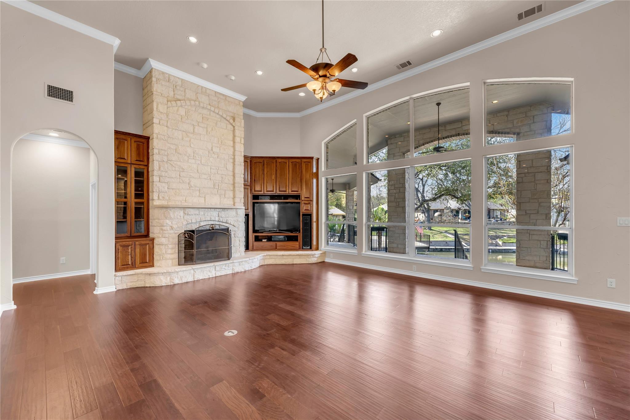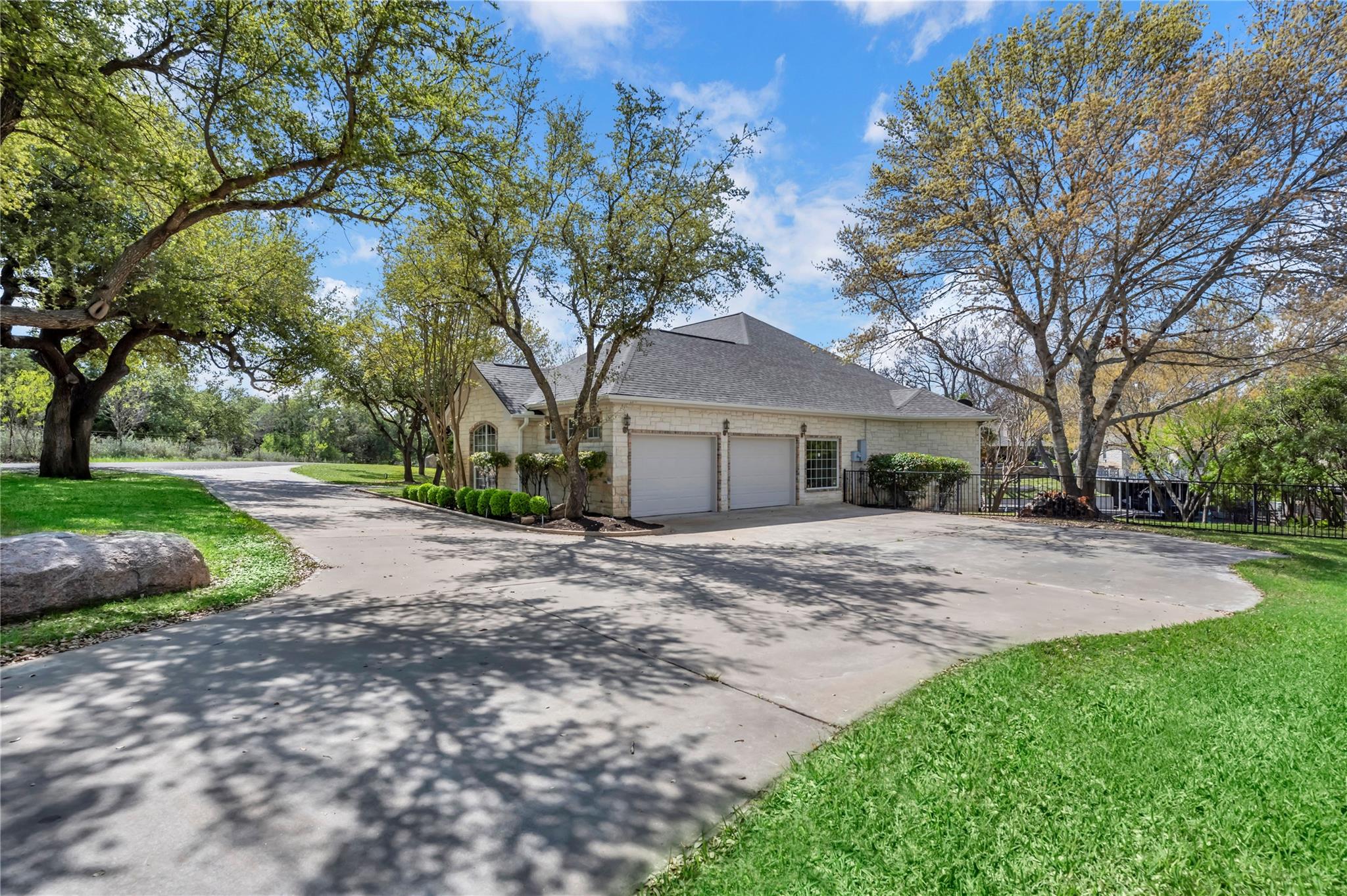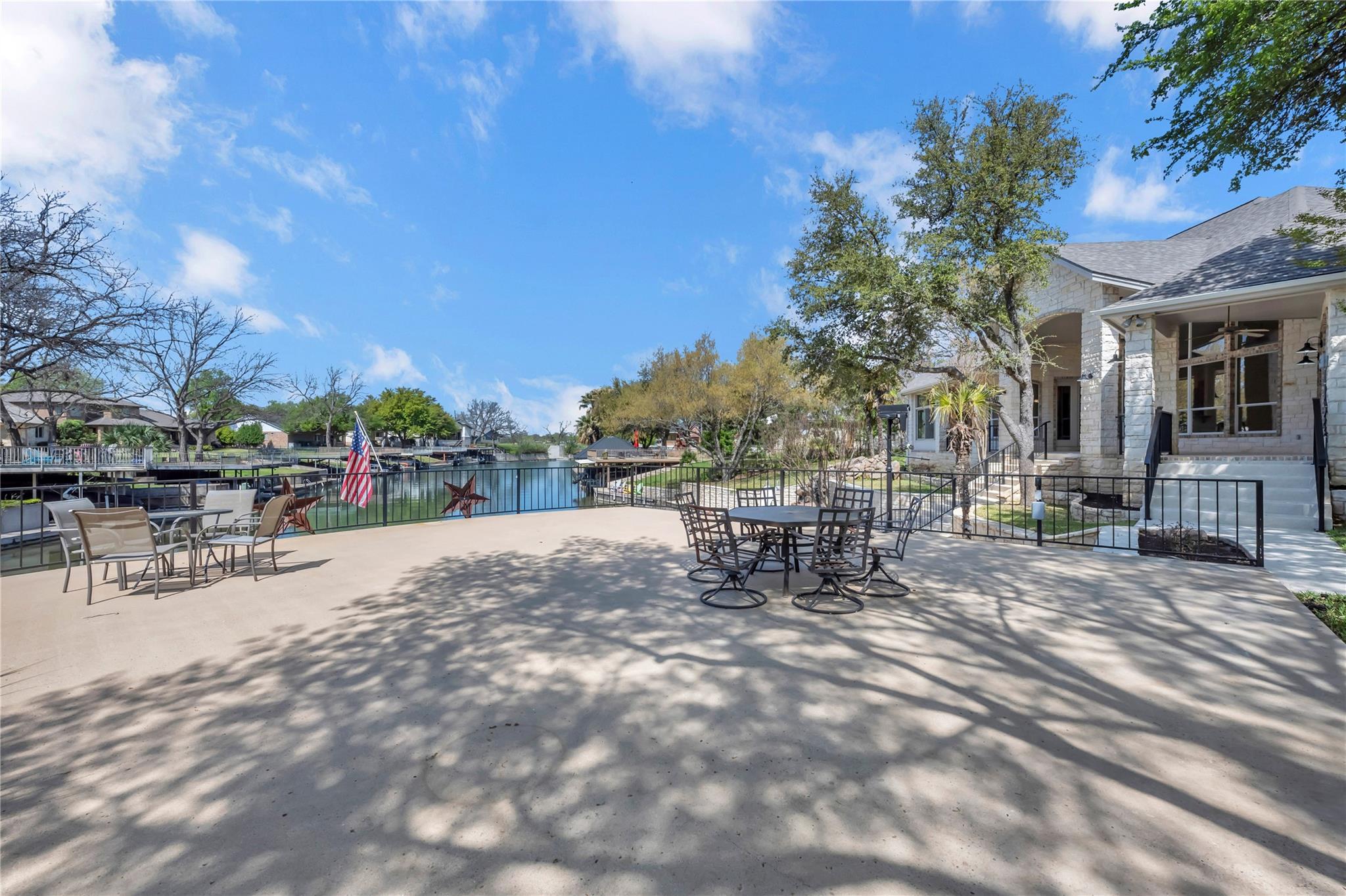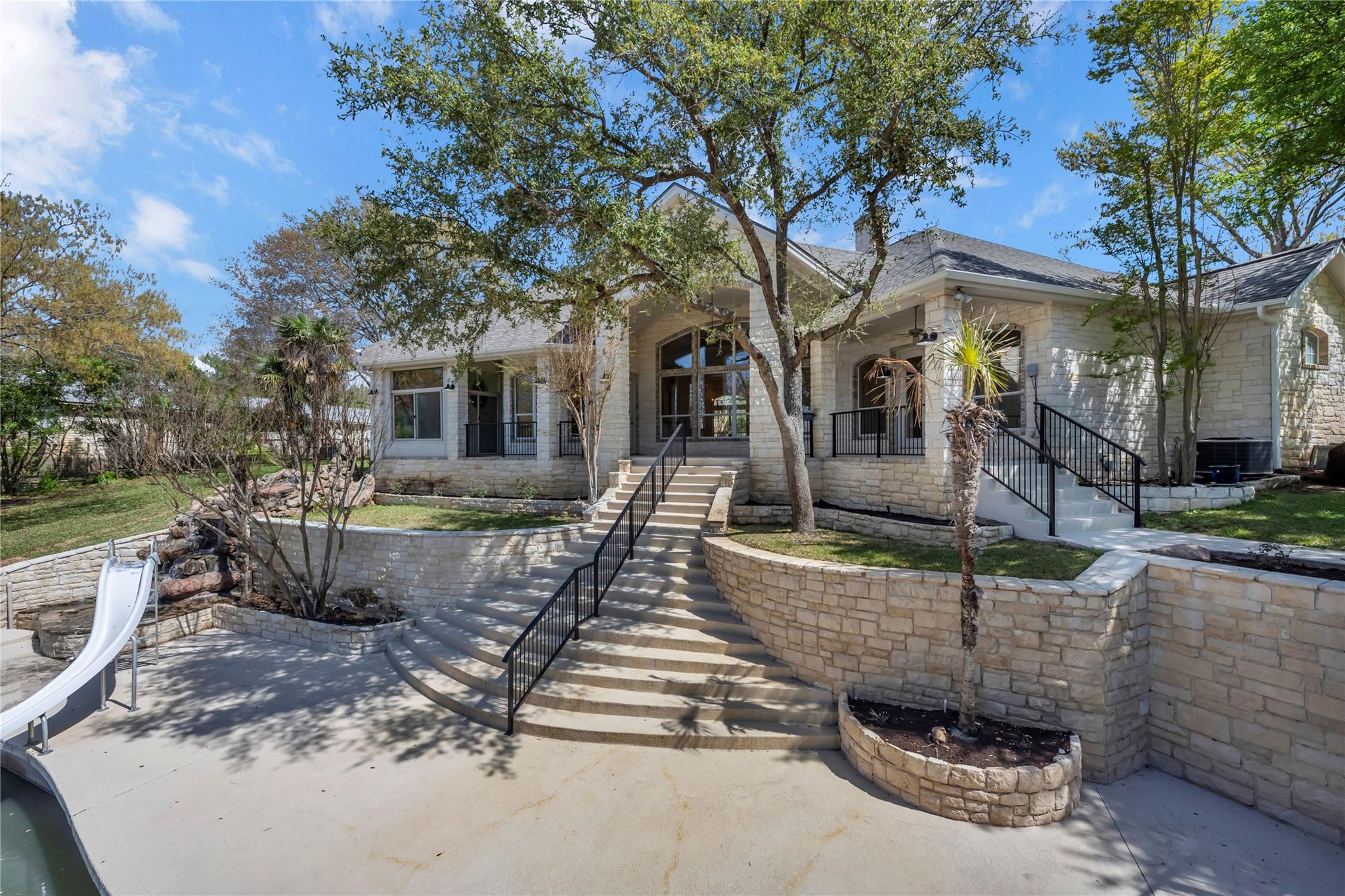Welcome to the GRAND 316 Bridgepoint Dr on Lake LBJ! This property will capture your attention on the drive in through the quiet neighborhood, the driveway shaded with stunning mature trees! This property gives you enough space inside and out for all your family and guests from parking, bedrooms & outdoor living space! You are invited into the home by gorgeous custom rock work and soaring ceilings that showcase your lake view! With 122 ft of waterfront you have space for your personal boat dock with 2 electric boat lifts, large concrete patio upstairs, lots of deck area, large serene water fountain, water slide and jet ski ramp. The house recently got all new paint inside and out, new cool deck, all the metal painted, new carpet, new roof and gutters!