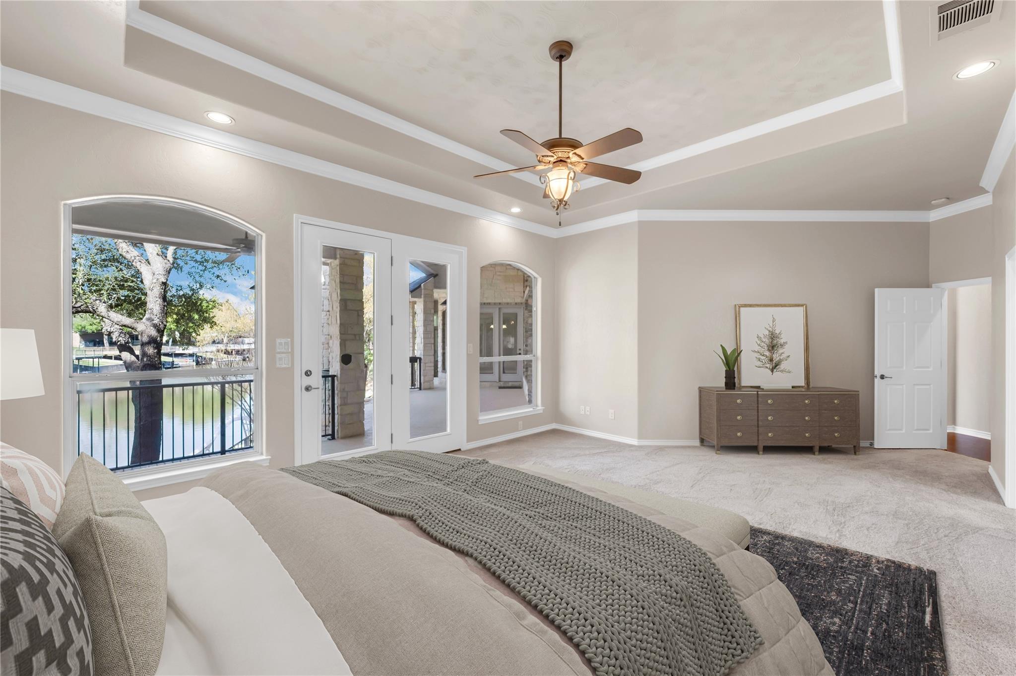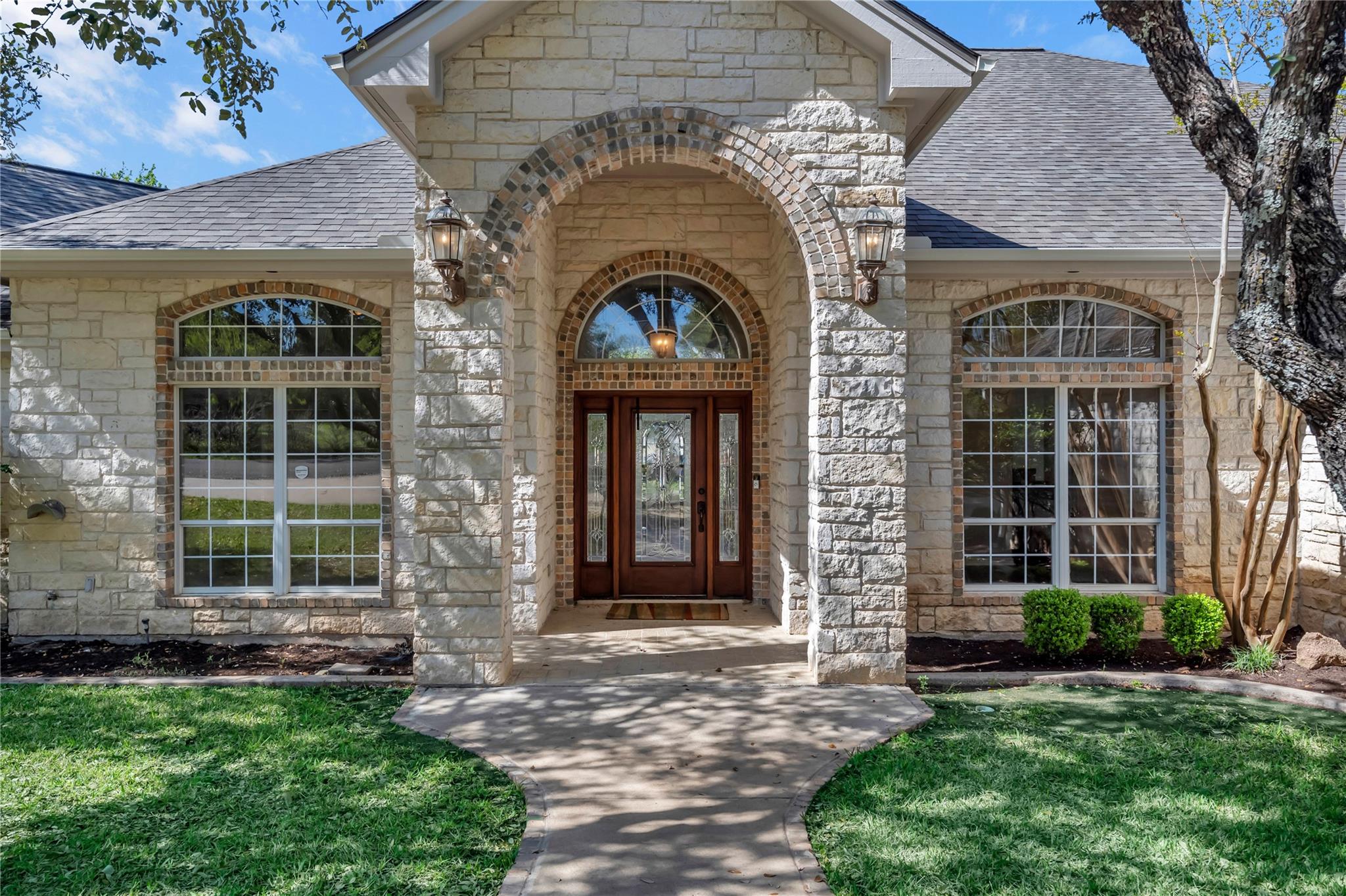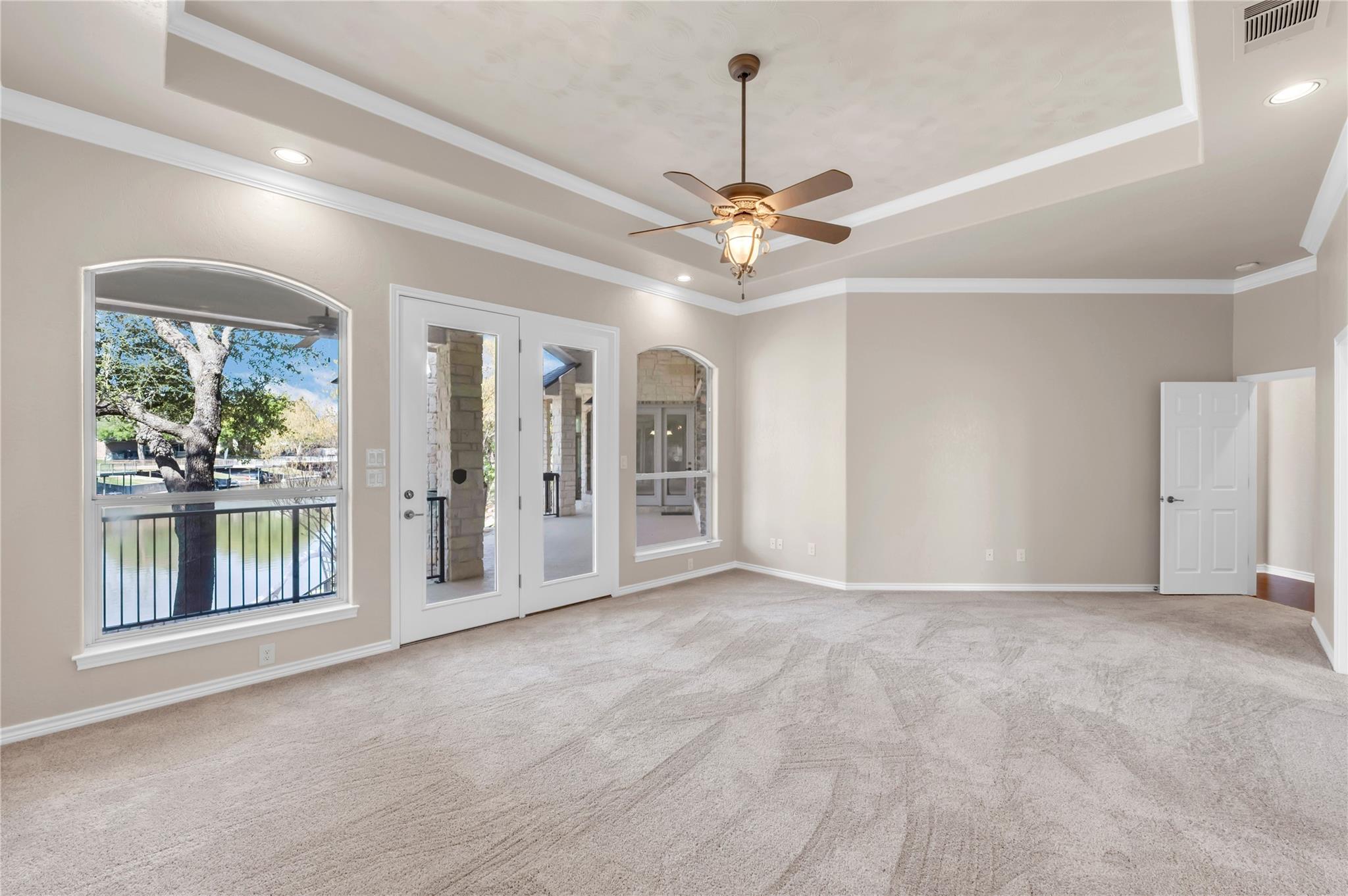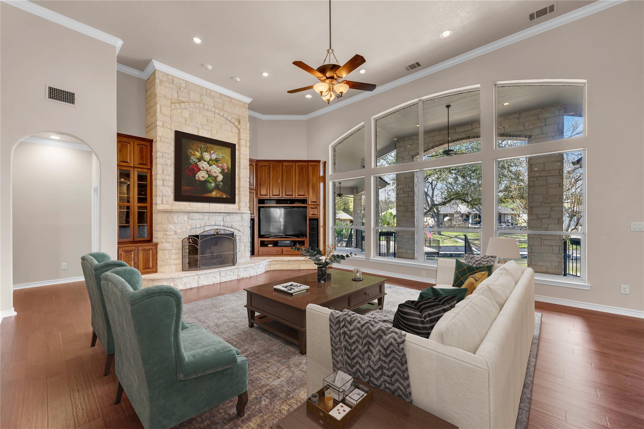 Welcome to the GRAND 316 Bridgepoint Dr on Lake LBJ! This property will capture your attention on the drive in through the quiet neighborhood, the driveway shaded with stunning mature trees! This property gives you enough space inside and out for all your family and guests from parking, bedrooms & outdoor living space! You are invited into the home by gorgeous custom rock work and soaring ceilings that showcase your lake view! With 122 ft of waterfront you have space for your personal boat dock with 2 electric boat lifts, large concrete patio upstairs, lots of deck area, large serene water fountain, water slide and jet ski ramp. The house recently got all new paint inside and out, new cool deck, all the metal painted, new carpet, new roof and gutters!
