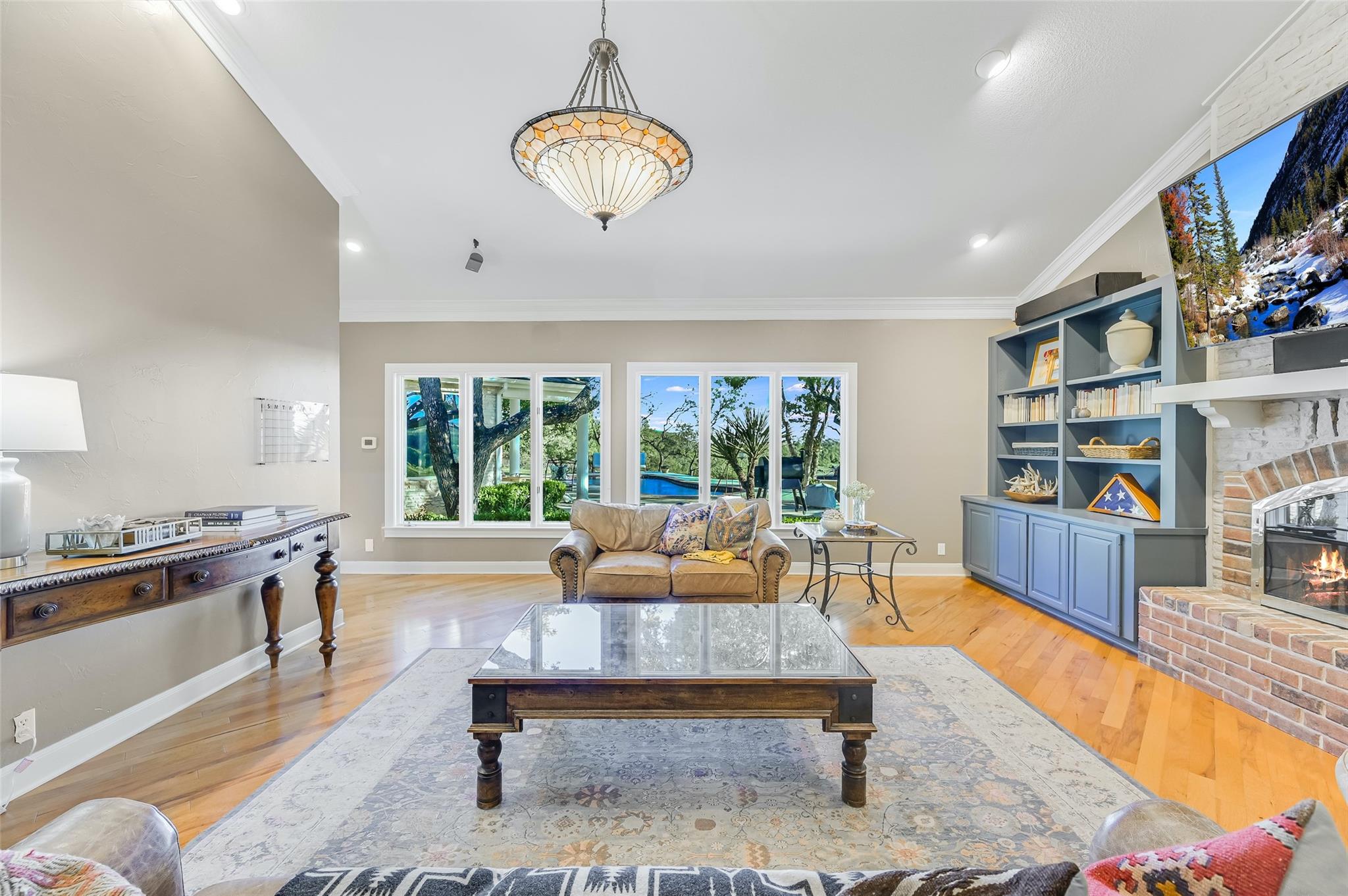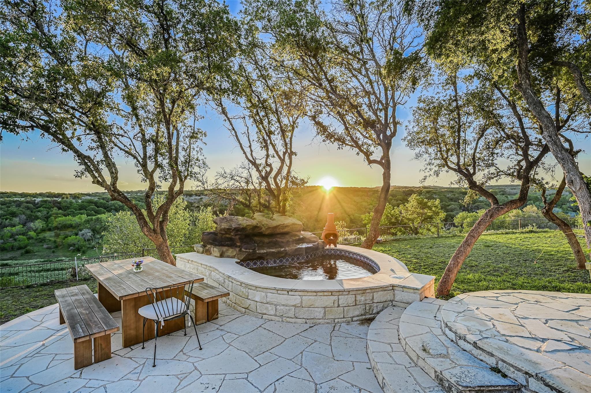Possible Seller Financing WAC - Nestled on a sprawling 32+ acres along the majestic bluffs of the Pedernales River in Spicewood, this property offers a rare blend of natural beauty and refined living. The estate boasts unparalleled vistas of the Pedernales River and hill country, making it a haven for those seeking awe-inspiring geological viewpoints and the rich biodiversity of the Pedernales River habitat. A gated driveway lined with towering Oak trees and a charming white fence sets the stage for the splendor that lies beyond. This ranch-style single-level home has been meticulously renovated, offering an elegant fusion of modern luxury and rustic charm with hardwood floors and granite countertops. Picturesque windows frame the breathtaking views of the pool and canyon, inviting the outdoors in. Boasting two oversized primary suites, formal and casual dining areas, a spacious formal living room, family room, and game room, this residence effortlessly accommodates a luxurious lifestyle. Additionally, a separate 1-bed 1-bath guest house with a living room and kitchen provides privacy and comfort for guests. Outside, experience the peace and serenity around you, enjoy cooling off in the pool, barbecues with the family, or soaking in the hot tub. Take in the canyon views on the expansive patio while watching the sunset. The gentle rolling terrain adorned with magnificent oak trees creates an idyllic setting for equestrian pursuits. Lake Travis ISD, low property tax rates, and convenient access to shopping and dining in Lakeway/Bee Caves. Boating enthusiasts will delight in the proximity to Lake Travis and Lake LBJ, while nature lovers can explore the numerous nearby state parks. Experience Hill Country living at its finest—a harmonious blend of natural splendor, refined elegance, and warm community spirit awaits at this exquisite Spicewood retreat. **The property has the ability to be subdivided into 5 separate lots, with a minimum size of two acres. **