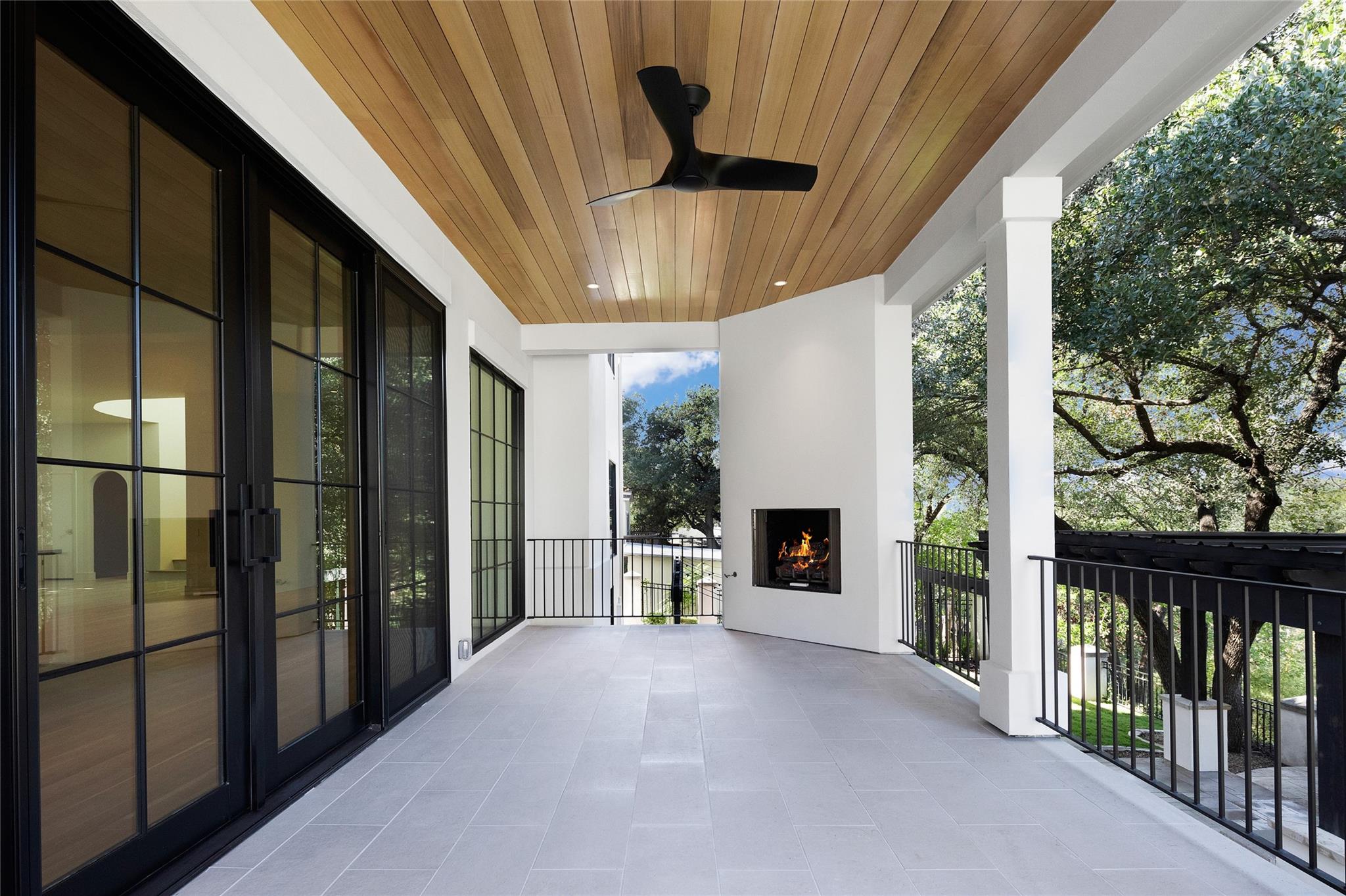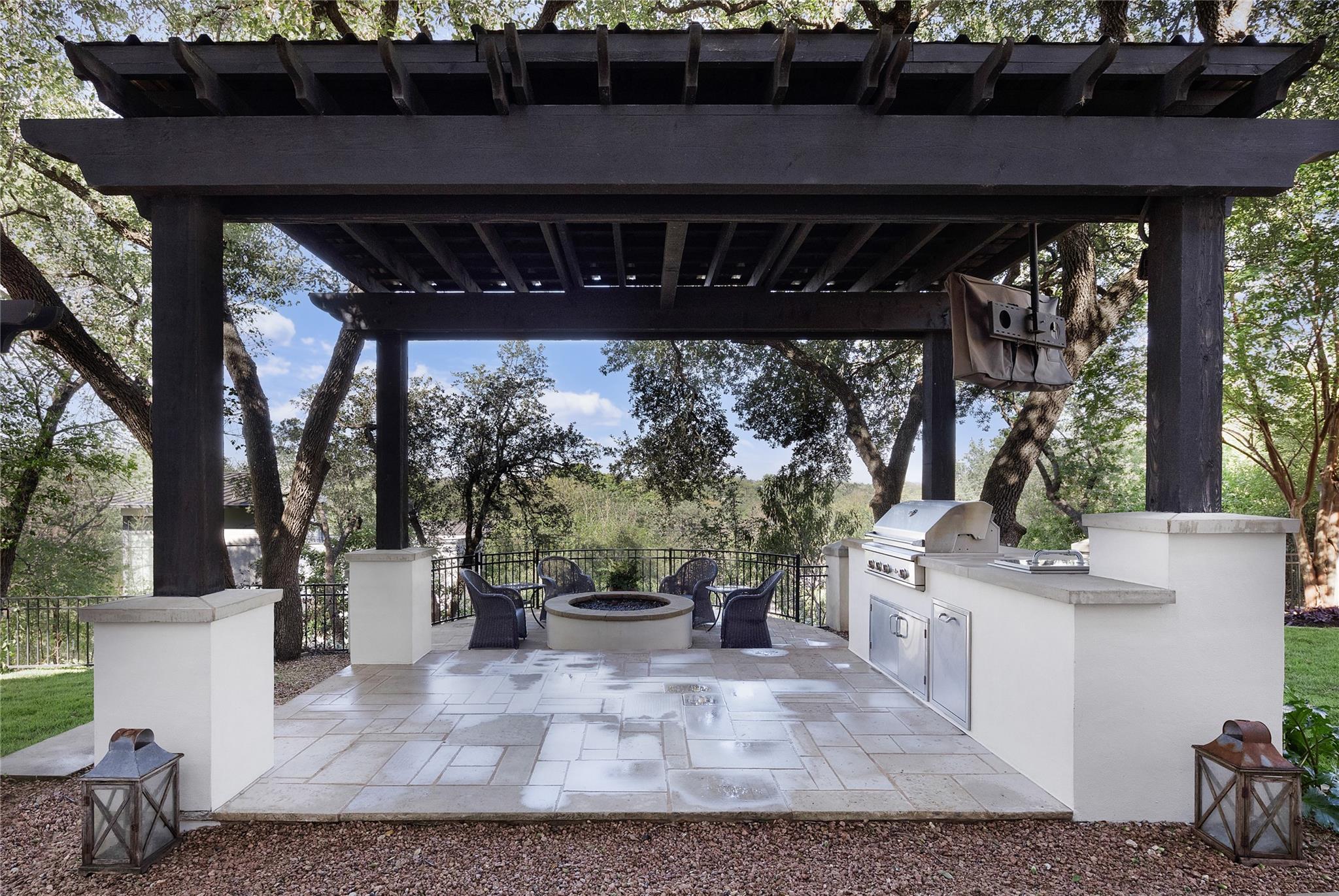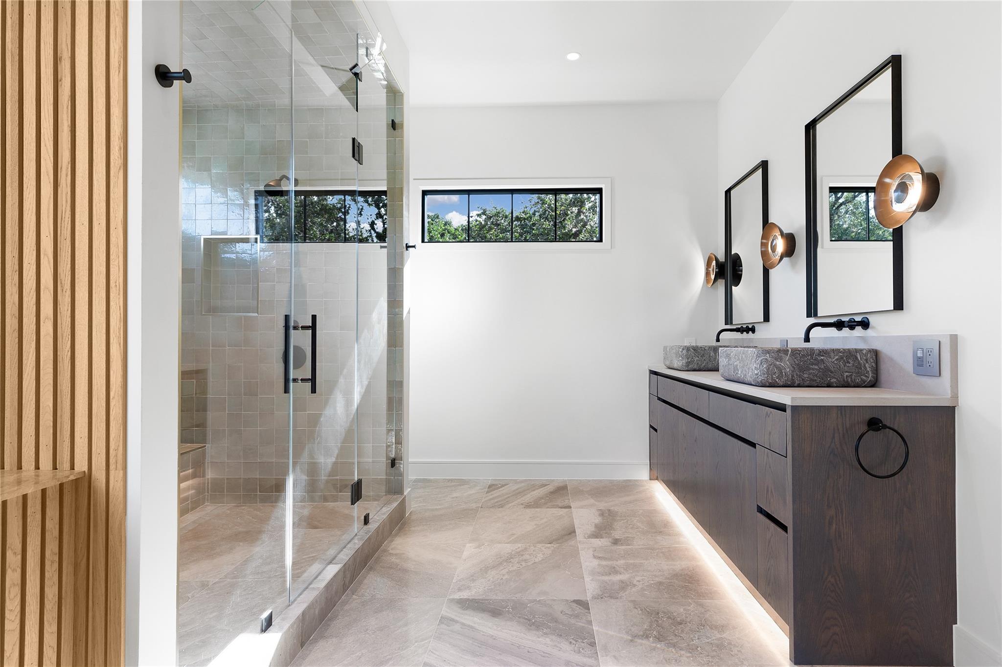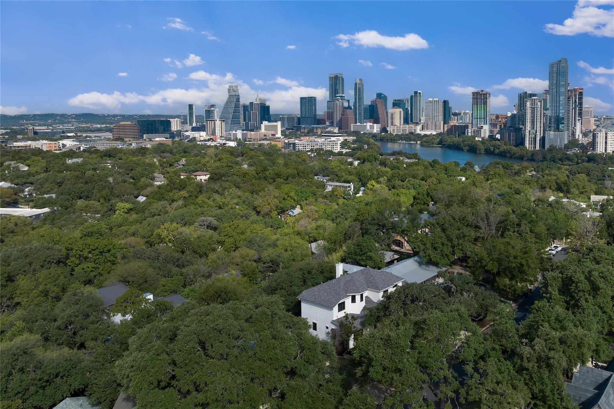 Discover modern luxury in this meticulously upgraded custom residence, with architecture by Michael Stouse of StouseDesign and construction by Texas Construction Company.Drive up to this lavish home, greeted by two stunning heritage oaks, gas fired porch lanterns, a mix of stone façade and smooth finish stucco overlay.As you step through the beautiful arched mahogany front door you will notice the amount of light and warmth that fill the home.Met by a fully custom curved staircase with recessed strip lighting, designer chandelier and steel handrail.Every inch of this home has been thoughtfully redesigned to meet the highest standards.Enjoy an open concept living space encompassing the foyer, kitchen, dining, and living area.The kitchen is a chef’s dream, boasting new walnut cabinetry, top-of-the-line appliances, and a massive center island with comfortable bar seating.Roman Clay plaster walls and ceiling in the office, above the custom gas-fired central hearth, and the hood vent add even more sophistication and presence to this magnificent home. In the master suite, you’ll find first and foremost a stunning view of the Austin Skyline.The en-suite bath comes complete with an Atmos steam shower, a whirlpool bathtub by Malibu complete with white oak wood panels and a downtown view, as well as a Japanese style Duravit wall-mounted commode.The attention to detail extends to every room, with custom cabinetry in walnut, white oak, and the highly custom primary closet.Thoughtful high-end aesthetics are all around you as you stroll through your new home.The backyard vibe is second to none with multiple entertaining areas, fireplaces/pits, grill and mounted TV, as well as a bocce pitch under string lights.A gardeners dream in the tiered terrace with peach, pear, pomegranate, lemon, loquat and more for you to cultivate and indulge in.Witness the luxury in the upgrade list attached.Contact us now to experience this exceptional property in person and move into perfection