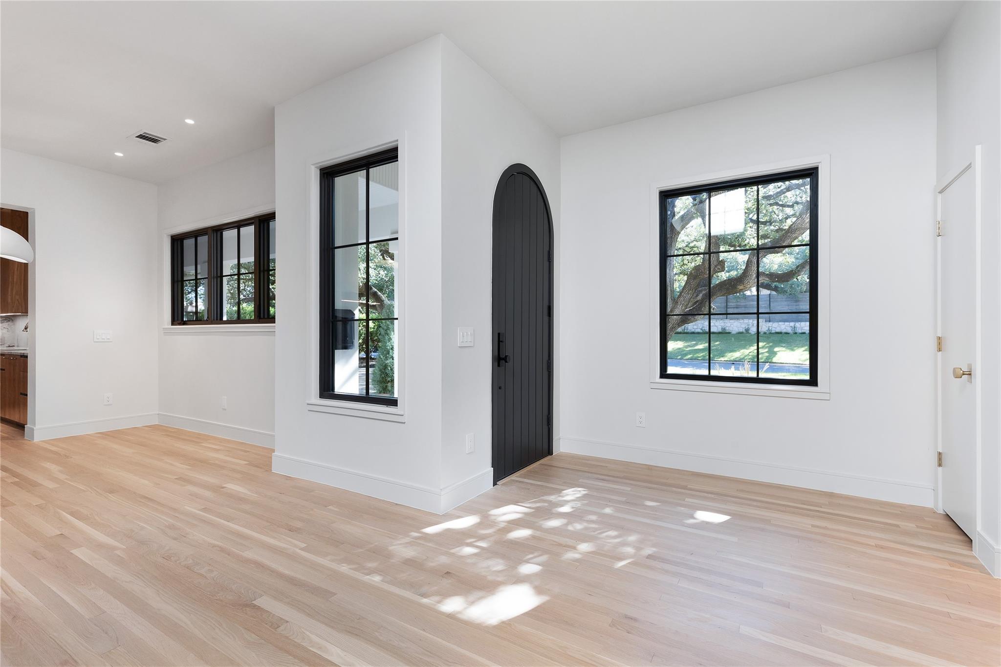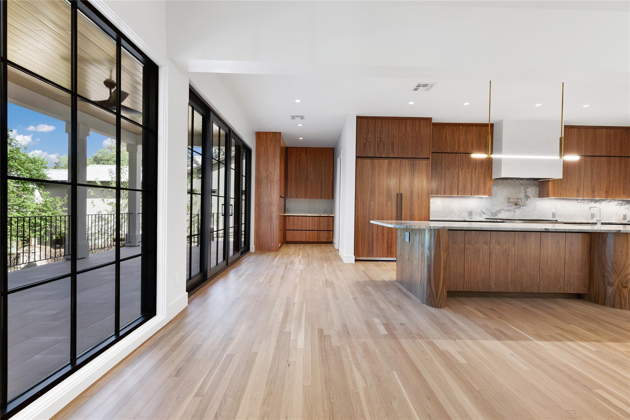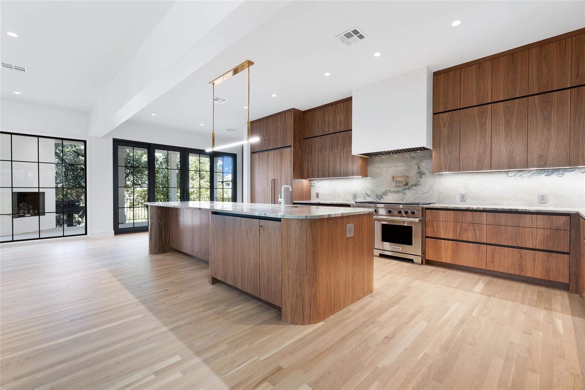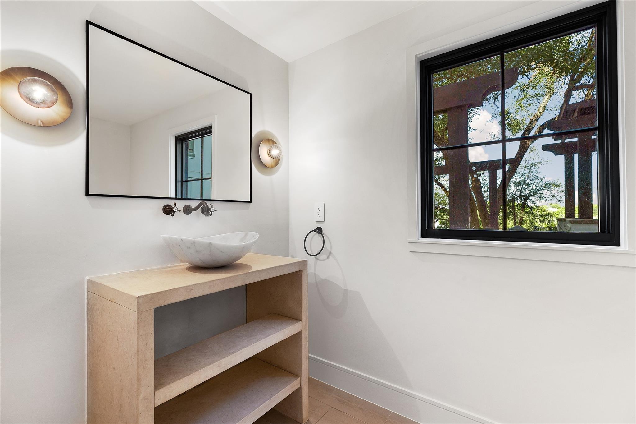 Discover modern luxury in this meticulously upgraded custom residence, with architecture by Michael Stouse of StouseDesign and construction by Texas Construction Company.Drive up to this lavish home, greeted by two stunning heritage oaks, gas fired porch lanterns, a mix of stone façade and smooth finish stucco overlay.As you step through the beautiful arched mahogany front door you will notice the amount of light and warmth that fill the home.Met by a fully custom curved staircase with recessed strip lighting, designer chandelier and steel handrail.Every inch of this home has been thoughtfully redesigned to meet the highest standards.Enjoy an open concept living space encompassing the foyer, kitchen, dining, and living area.The kitchen is a chef’s dream, boasting new walnut cabinetry, top-of-the-line appliances, and a massive center island with comfortable bar seating.Roman Clay plaster walls and ceiling in the office, above the custom gas-fired central hearth, and the hood vent add even more sophistication and presence to this magnificent home. In the master suite, you’ll find first and foremost a stunning view of the Austin Skyline.The en-suite bath comes complete with an Atmos steam shower, a whirlpool bathtub by Malibu complete with white oak wood panels and a downtown view, as well as a Japanese style Duravit wall-mounted commode.The attention to detail extends to every room, with custom cabinetry in walnut, white oak, and the highly custom primary closet.Thoughtful high-end aesthetics are all around you as you stroll through your new home.The backyard vibe is second to none with multiple entertaining areas, fireplaces/pits, grill and mounted TV, as well as a bocce pitch under string lights.A gardeners dream in the tiered terrace with peach, pear, pomegranate, lemon, loquat and more for you to cultivate and indulge in.Witness the luxury in the upgrade list attached.Contact us now to experience this exceptional property in person and move into perfection