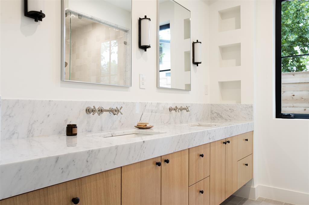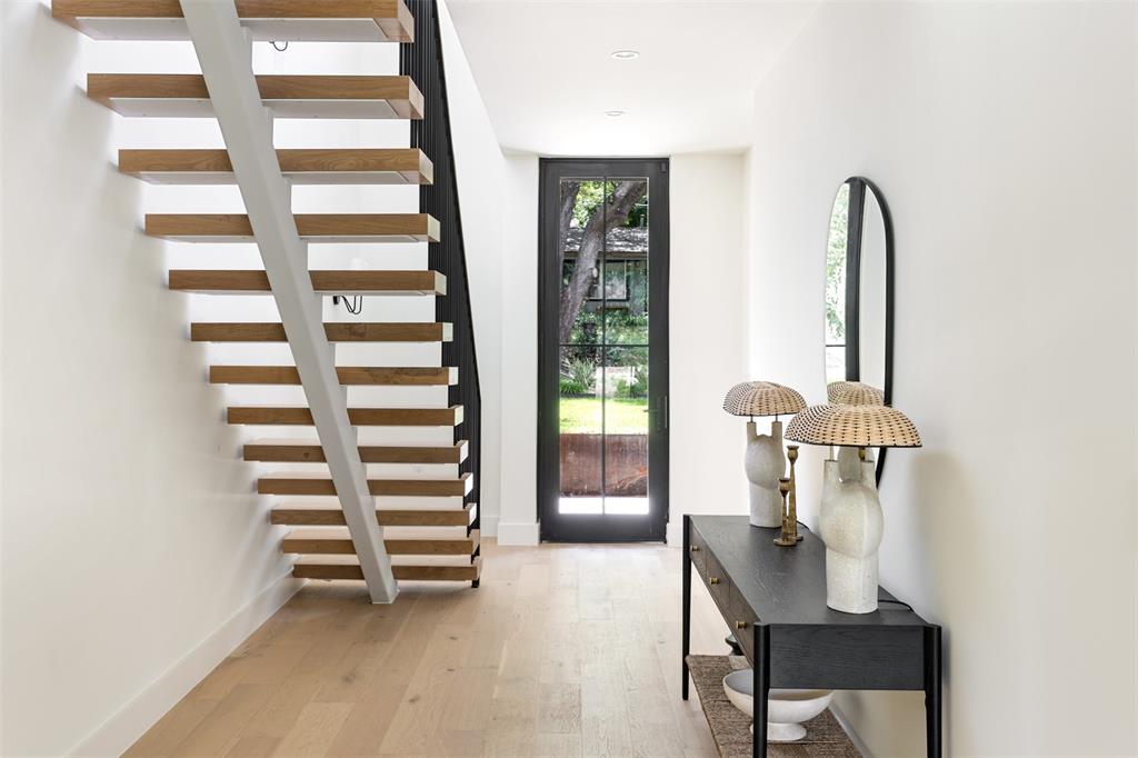 Welcome to The Garden Villa Project. Created by renowned local builder, Cedar & Oak Homes, this home exemplifies warm and modern design. Nestled in a sought after neighborhood in 78704, this stucco residence sits on a quiet tree lined street exuding modern charm. All the finishing touches create an atmosphere that is both luxurious & highly functional, yet feels cozy & inviting. Beautifully expressing the modern and warm vibe of the design, the partially open floor plan seamlessly incorporates the kitchen, dining, and living. A beautiful floating staircase flanks the grand entryway & large windows and doors allow light to pour in while providing picturesque views of the surrounding foliage. Incredible custom features include an inviting chef's kitchen with panel ready appliances, marble countertops, soft close cabinetry & a large center island. A Venetian plaster fireplace that anchors the living room space, & provides a beautiful focal point seen throughout the home. Timeless lighting selections enhance the ambiance, while the Zellige tile adds a touch of artisanal charm. The primary suite features vaulted & beamed ceilings, large windows, a spacious primary closet w/built in storage and cabinetry, & a spa like bathroom w/a steam shower & large double vanity. Multiple built-in storage nooks - the drybar in the dining room & the secret attic storage nook add charm to the home in surprising places. Every turn reveals more character and attention to detail through design selections, architecture, and quality of craftsmanship.The luxury extends beyond the interior, with a fully landscaped front & back yard, complete with irrigation, and a large covered patio creating a picturesque oasis. Equipped with a metal roof, a security system, pre-wired for sound & Wi-Fi, Ram windows & doors, a tankless water heater, & energy-efficient HVAC, it offers peace of mind & all the modern amenities. Minutes to everything, walkable to parks, trails, restaurants, and 78704 attractions.