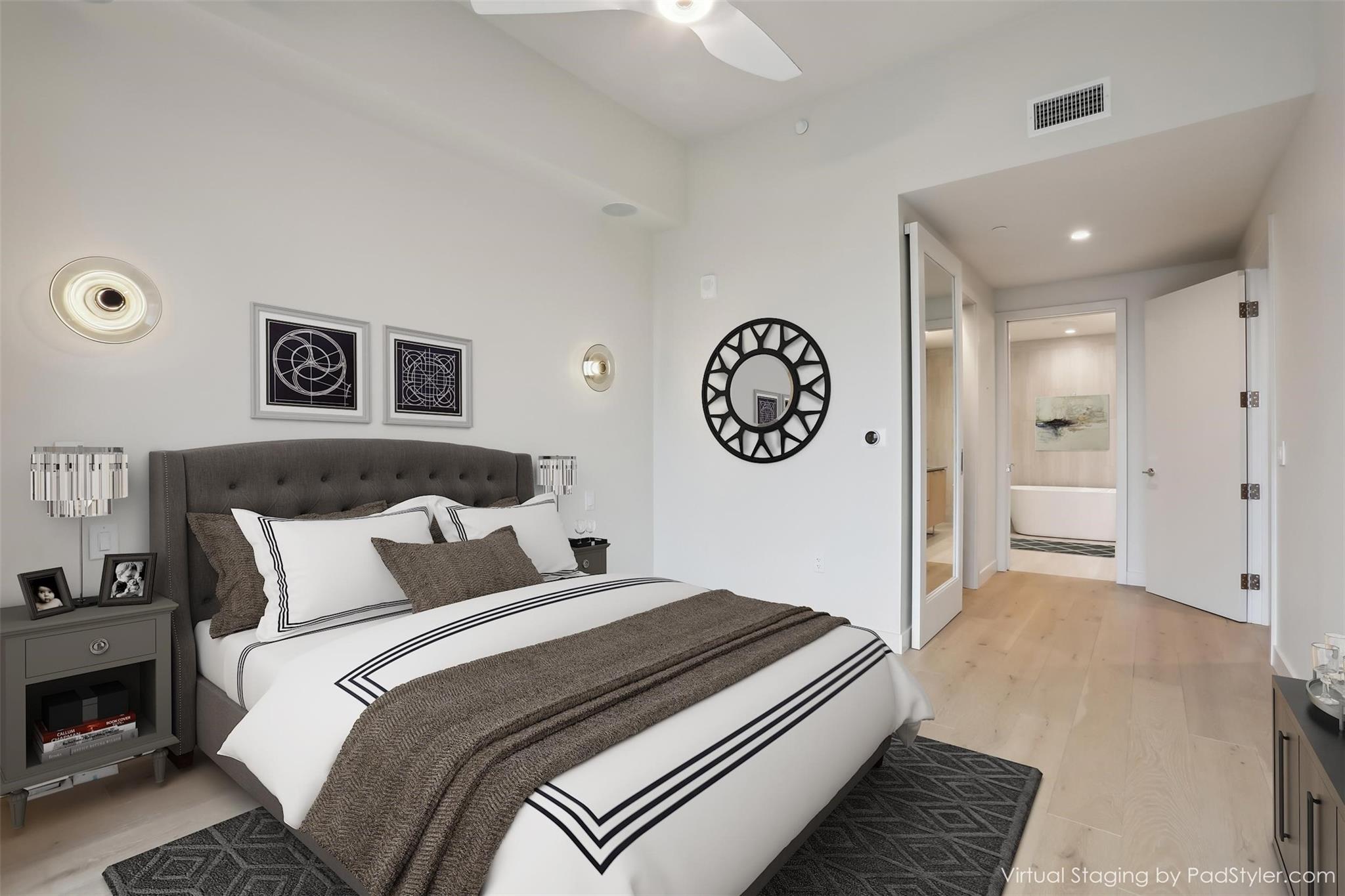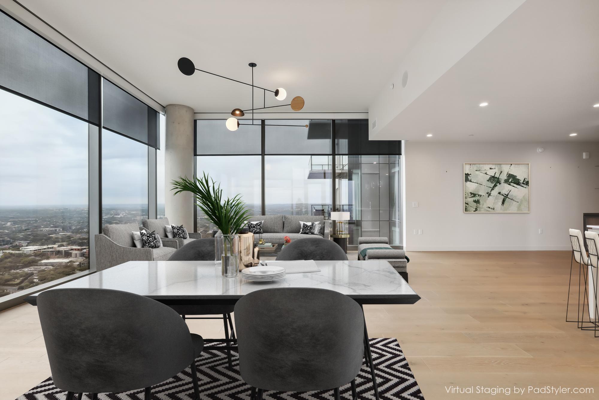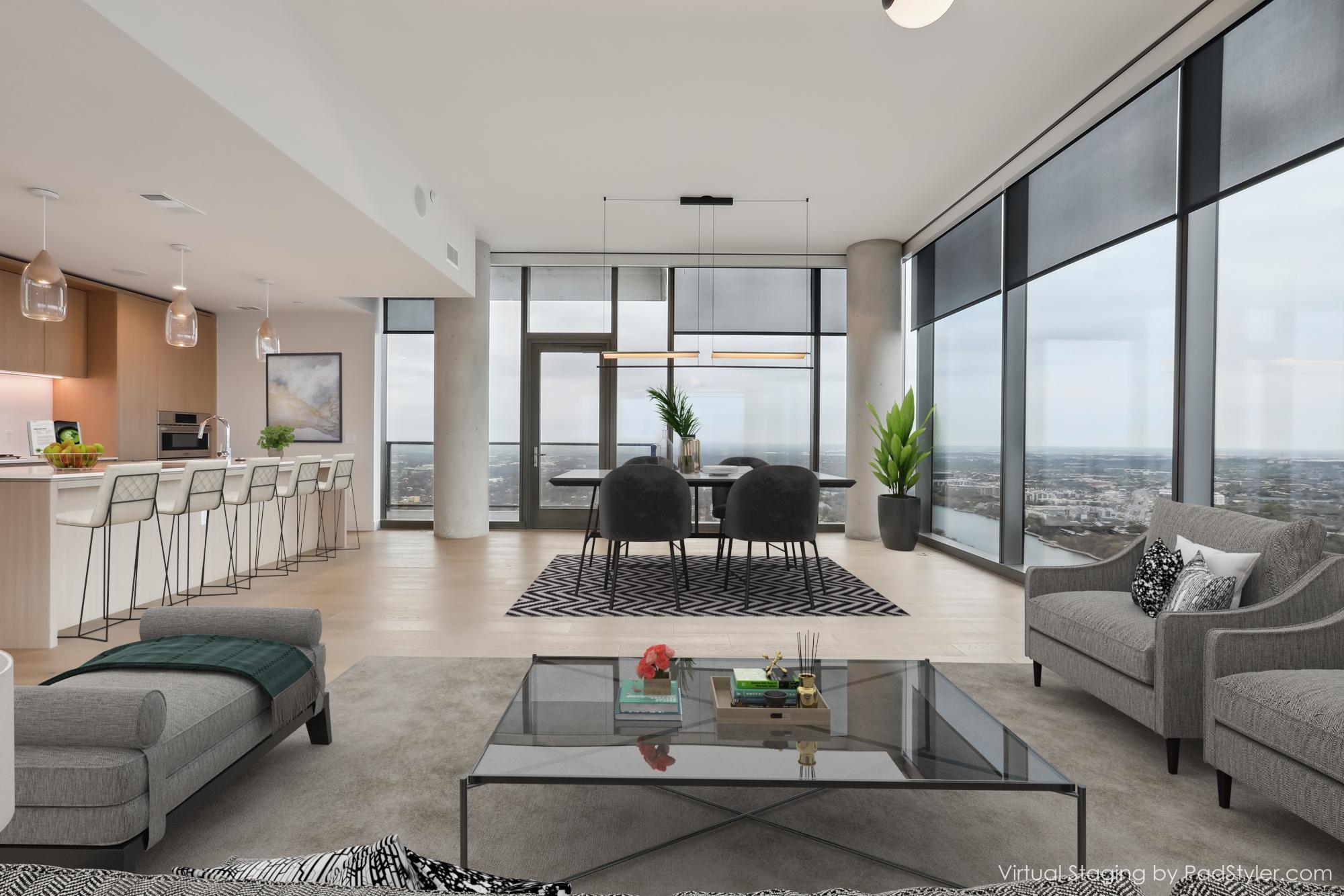 Stunning 180-degree panoramic view of Lady Bird Lake* Luxurious condo nestled at the end of Rainey St on the shores of Lady Bird Lake*3 bedroom/3 full baths*Sleek quartz counter tops, Italian cabinetry with soft close* Paneled dishwasher & built in refrigerator & under-counter Thermador wine fridge*Smart full home technology including automated solar shades, lighting, door locks, video door bell, and integrated Sonos audio system in every room*Perched on the 44th floor* 4406 includes 2 parking spaces with a rare EV charger.* White oak wood floors* The building offers exceptional amenities that encompass 13,000 sq ft of communal spaces on the 11th and 37th floors