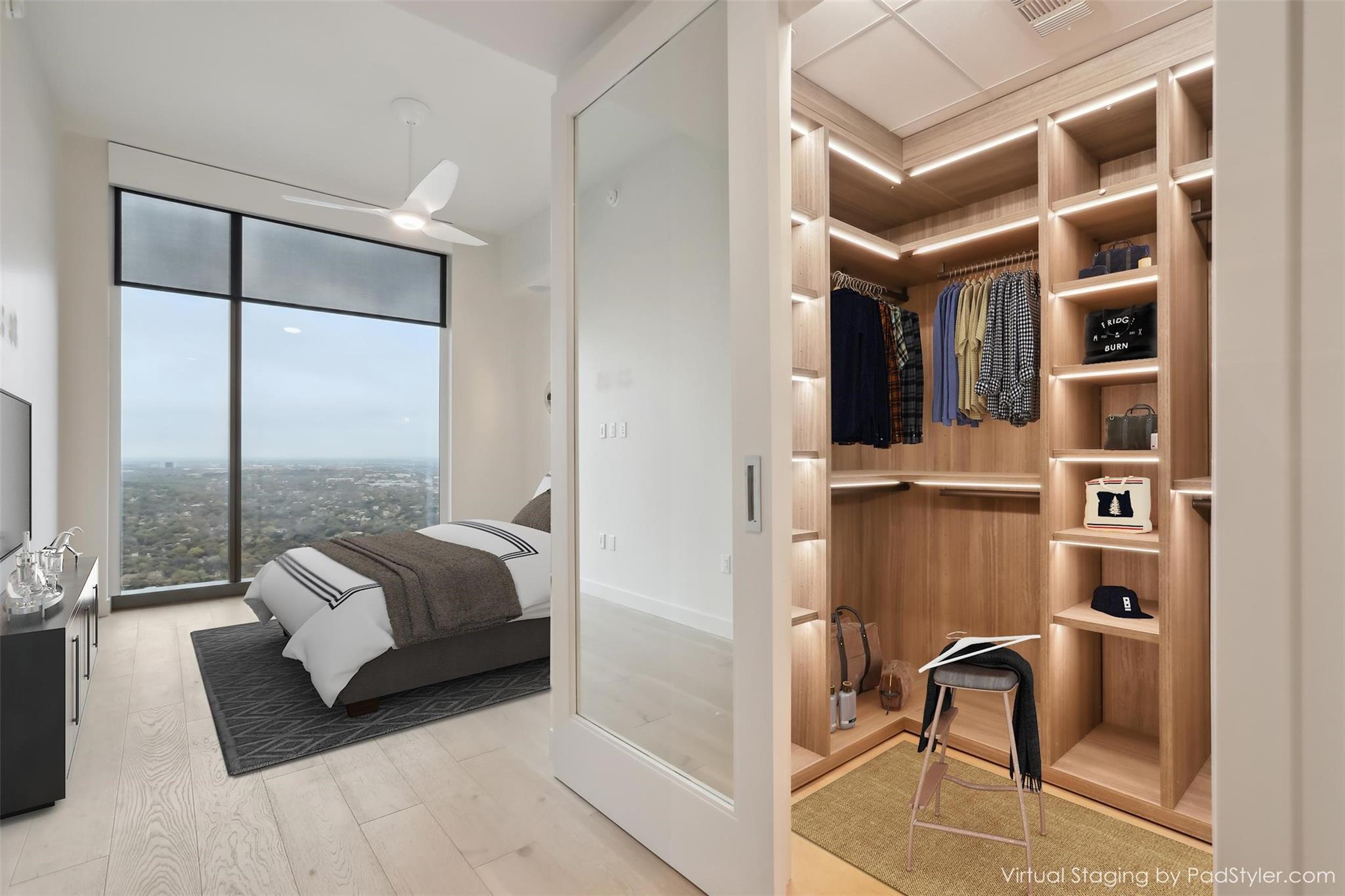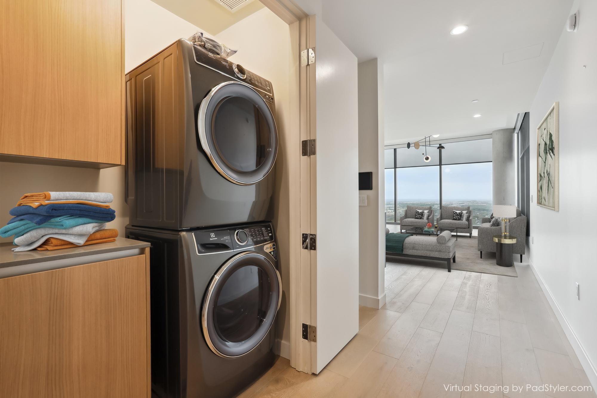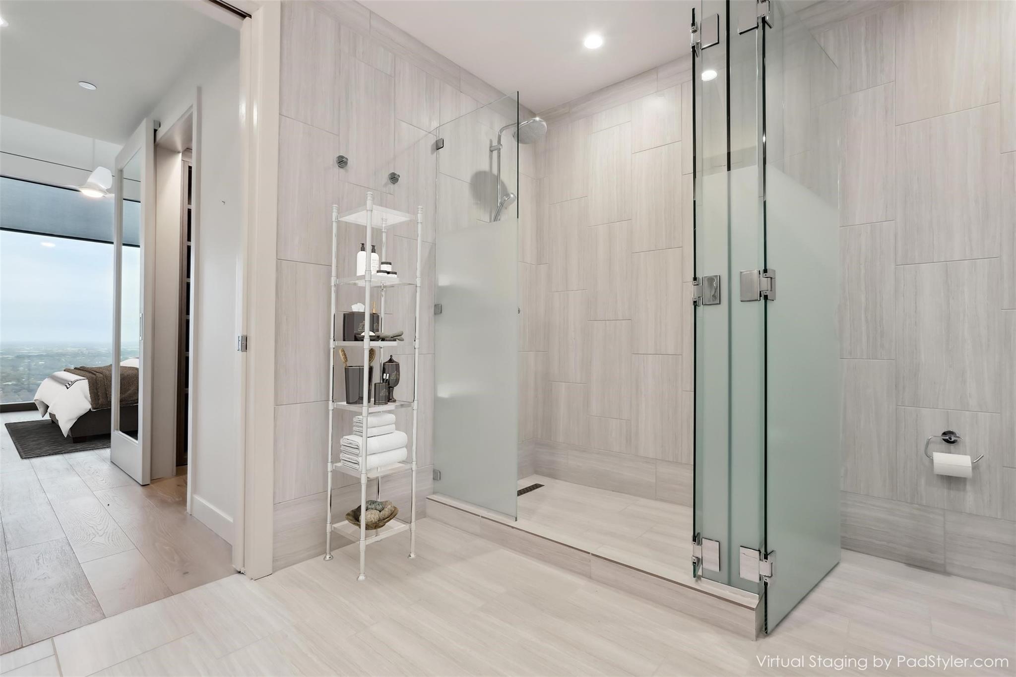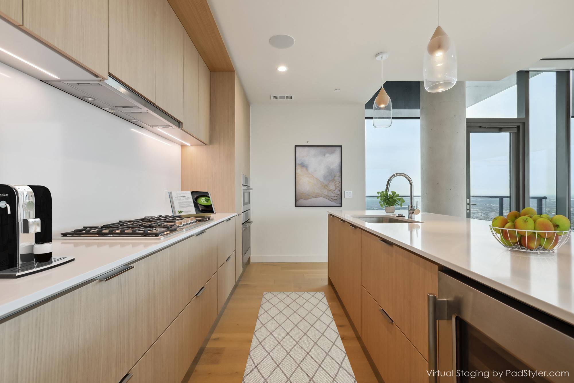 Stunning 180-degree panoramic view of Lady Bird Lake* Luxurious condo nestled at the end of Rainey St on the shores of Lady Bird Lake*3 bedroom/3 full baths*Sleek quartz counter tops, Italian cabinetry with soft close* Paneled dishwasher & built in refrigerator & under-counter Thermador wine fridge*Smart full home technology including automated solar shades, lighting, door locks, video door bell, and integrated Sonos audio system in every room*Perched on the 44th floor* 4406 includes 2 parking spaces with a rare EV charger.* White oak wood floors* The building offers exceptional amenities that encompass 13,000 sq ft of communal spaces on the 11th and 37th floors