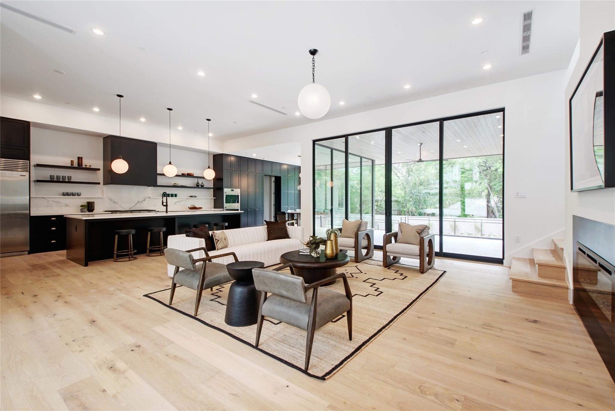 «NOW PRICED BELOW $1,000 PER SF FOR NEW CONSTRUCTION IN TARRYTOWN» double lot that is just under half an acre with proximity to downtown Austin & walking distance to your neighborhood park & tennis courts » This bespoke, modern home designed by the award-winning firms of FAB Architecture & Side Street Home is a stunning new construction home located in the highly sought-after Tarrytown neighborhood » This luxurious property boasts 6 bedrooms including a private guest quarters ideal for long-term guests or a private office, 6 full & 2 half bathrooms, providing ample space for comfortable living » The home blurs the lines between indoor & outdoor living » As you enter, you're greeted by an open, great room with tall ceiling and ample glass that is perfect for entertaining » The gourmet kitchen features top-of-the-line appliances (Wolf® & SubZero®) & beautiful finishes that are sure to impress any chef. The spacious bedrooms offer plenty of natural light & serene views & interiors include elevated finishes such as white oak flooring that allow for an array of furnishing styles » The grounds & pool provides a tranquil oasis from the hustle & bustle of city life » The attention to details and quality construction create the perfect blank canvas to make this your sanctuary...IMAGINE THE POSSIBILITIES!