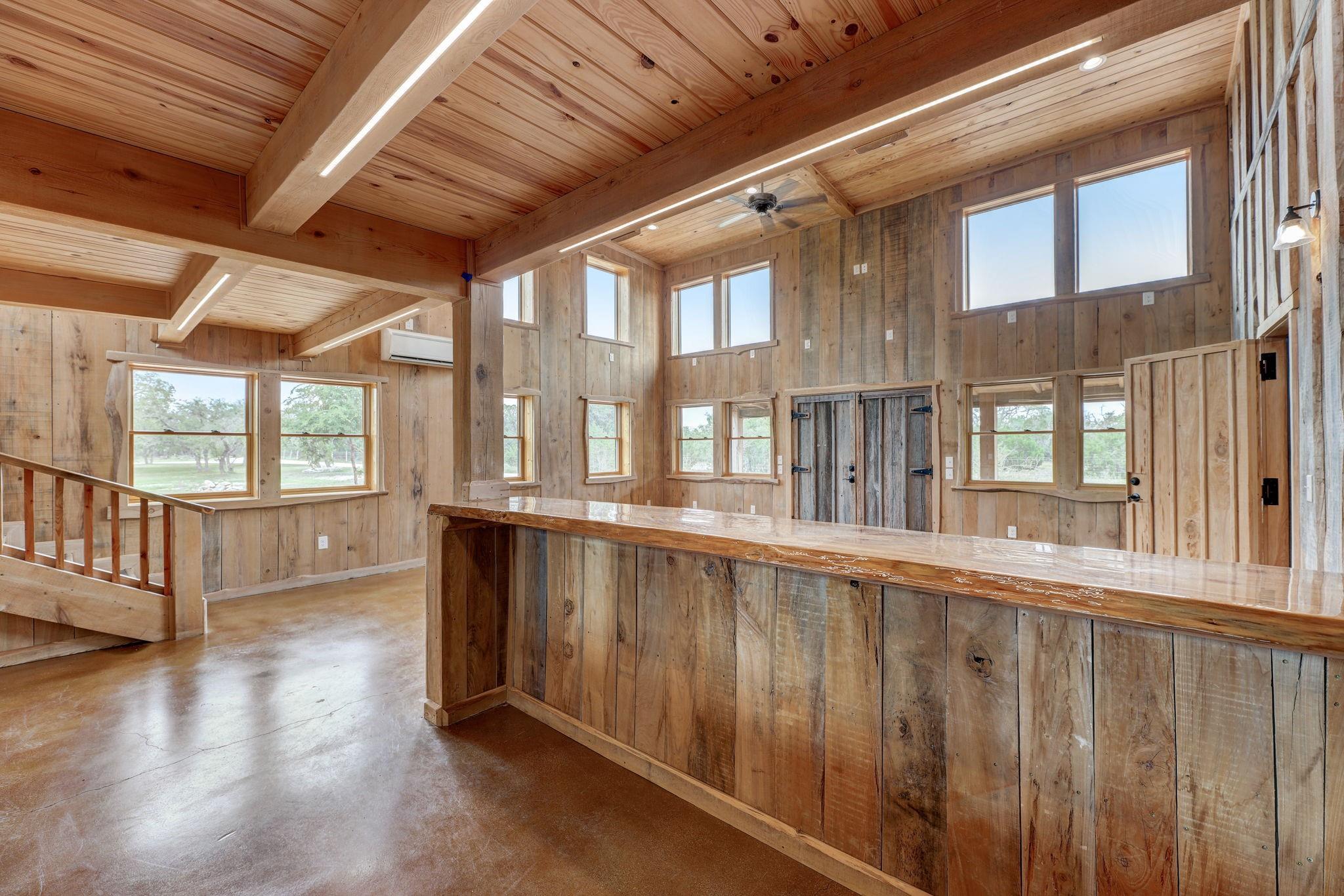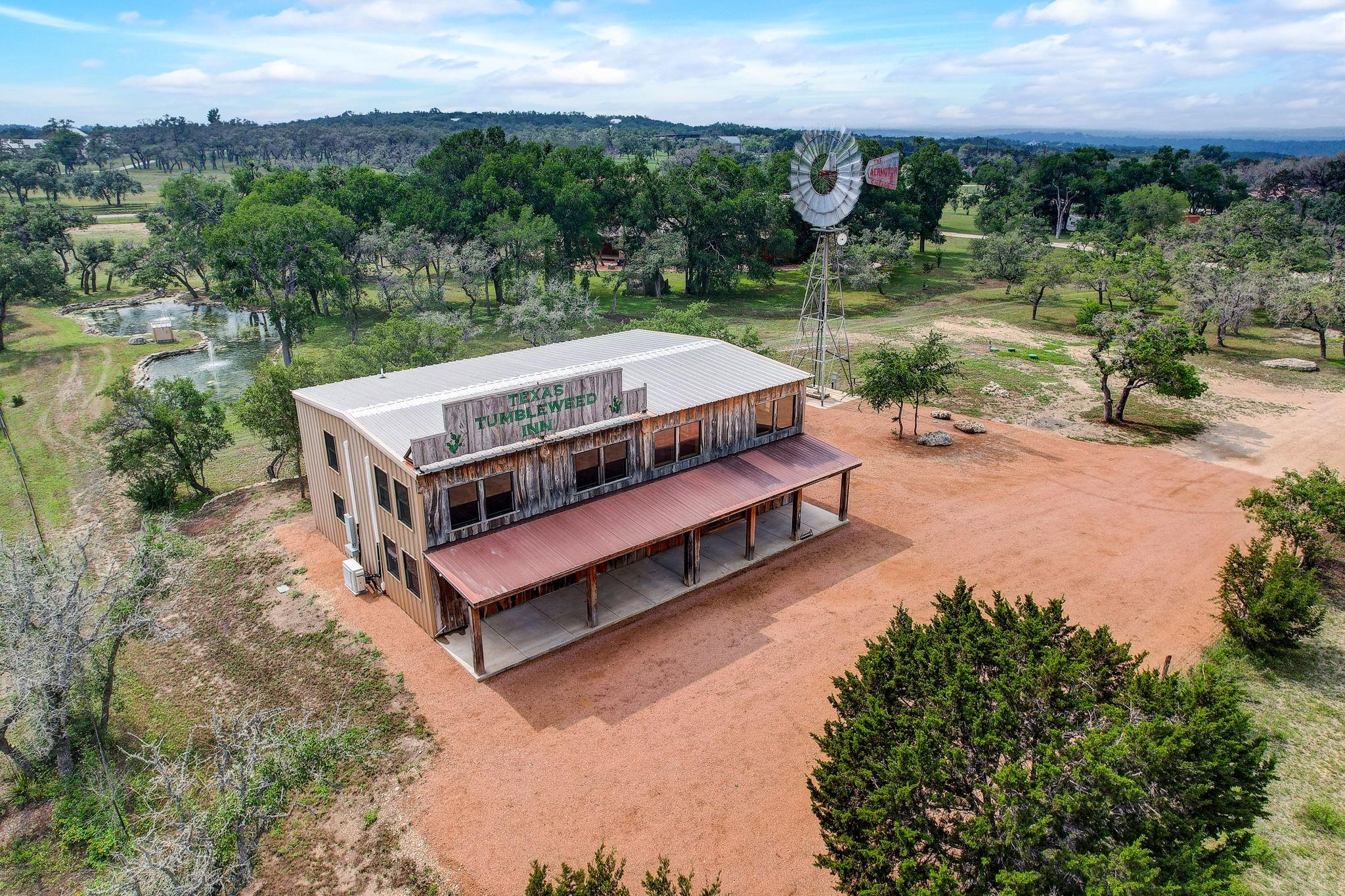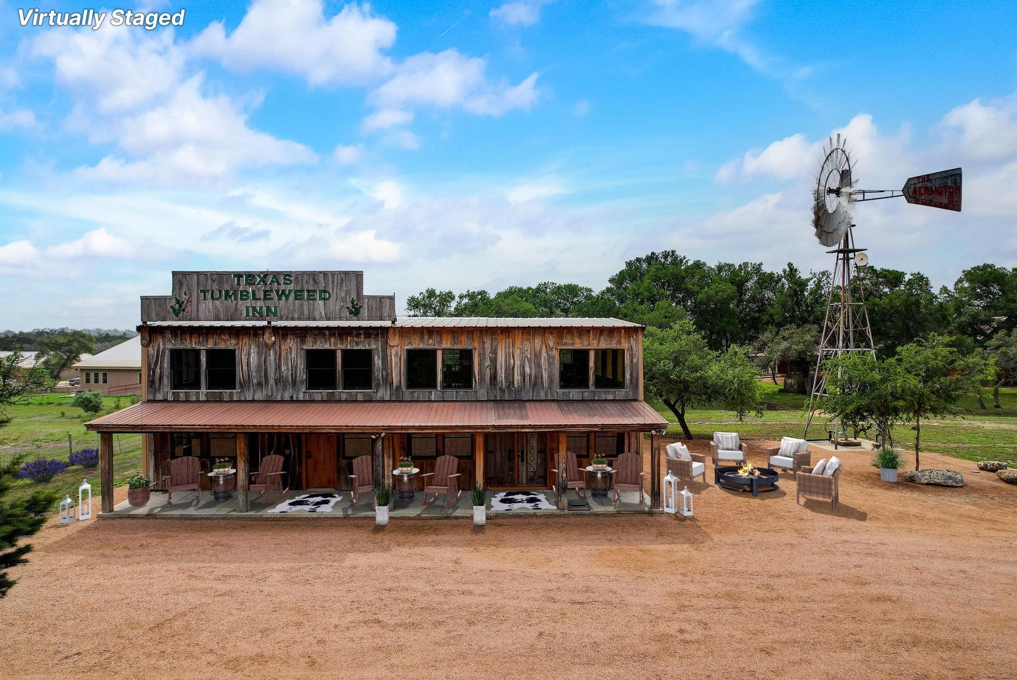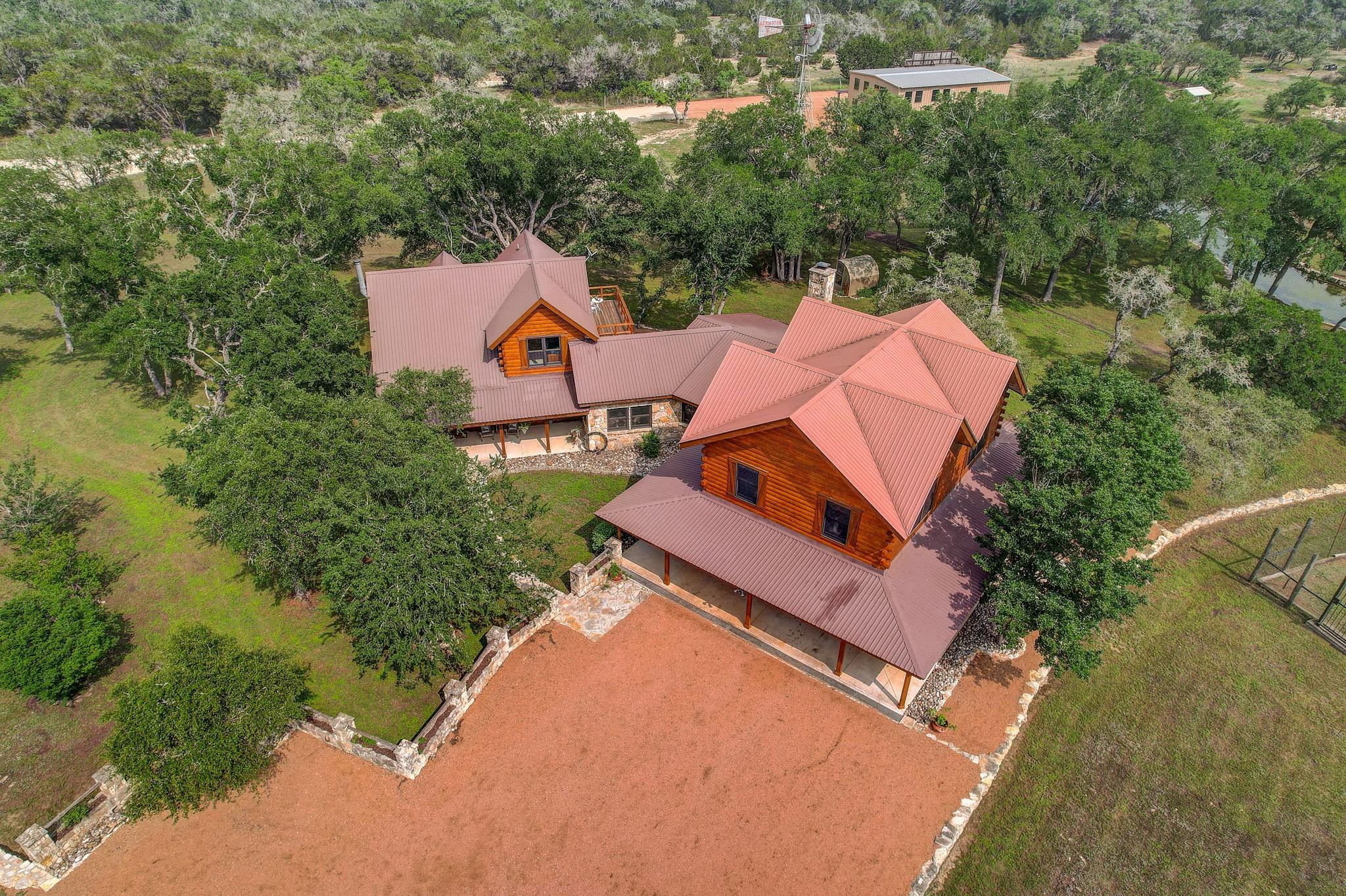Welcome to a beautiful & truly unique property nestled in the heart of the TX Hill Country. There is so much versatility with this lovely property, it's suitable for a family compound, retreat, STR, B&B, or a perfect place for gatherings & events. Entering the property, you immediately feel a sense of peace and tranquility as you are amongst the numerous large oak trees, the lush grass & the crystal-clear pond. Nestled in the center of the property is a beautiful custom built, log & rock home, built w/ attention to detail and quality of craftsmanship. This home is a work of art built of wood brought in from Colorado, & some of the wood was sourced here in Wimberley, TX! The home boasts 5,000 sq ft, soaring ceilings, multiple bedrooms, and an open floor plan set up for entertaining. There are 2 fully equipped, custom kitchens, 3 dining areas/ 3 living rooms, 2 large lofts that can serve as extra space for sleeping, game rooms, office, or yoga space. Another exceptional feature of this property is the custom, newly built 3,600 st ft (approx), SALOON and additional lodging! This space is creatively built wi/ stunning woods throughout. This space consists of a Texas style SALOON w/ a bar, large open area and loft. Alongside the SALOON is the TEXAS TUMBLEWEED INN featuring 2 Bd/ 2 full B, 1/2 B, a spacious loft, full kitchen, dining and living room. This is totally TEXAS & brand new, finished in May! There are 2 parking spots for RV’s w/ connections, & ample parking. The lay of the property is well laid out for a large pool nestled among the oak trees, centered between the house and pond for everyone to enjoy, meandering paths through the grove of majestic oak trees and of course – the pond! Conveniently located just minutes from downtown Wimberley, 1 hour from Austin and minutes from wineries, breweries, shopping, restaurants, Jacobs Well, the Blanco River and SO much more. This special property offers a true Texas Hill Country lifestyle and endless opportunities.