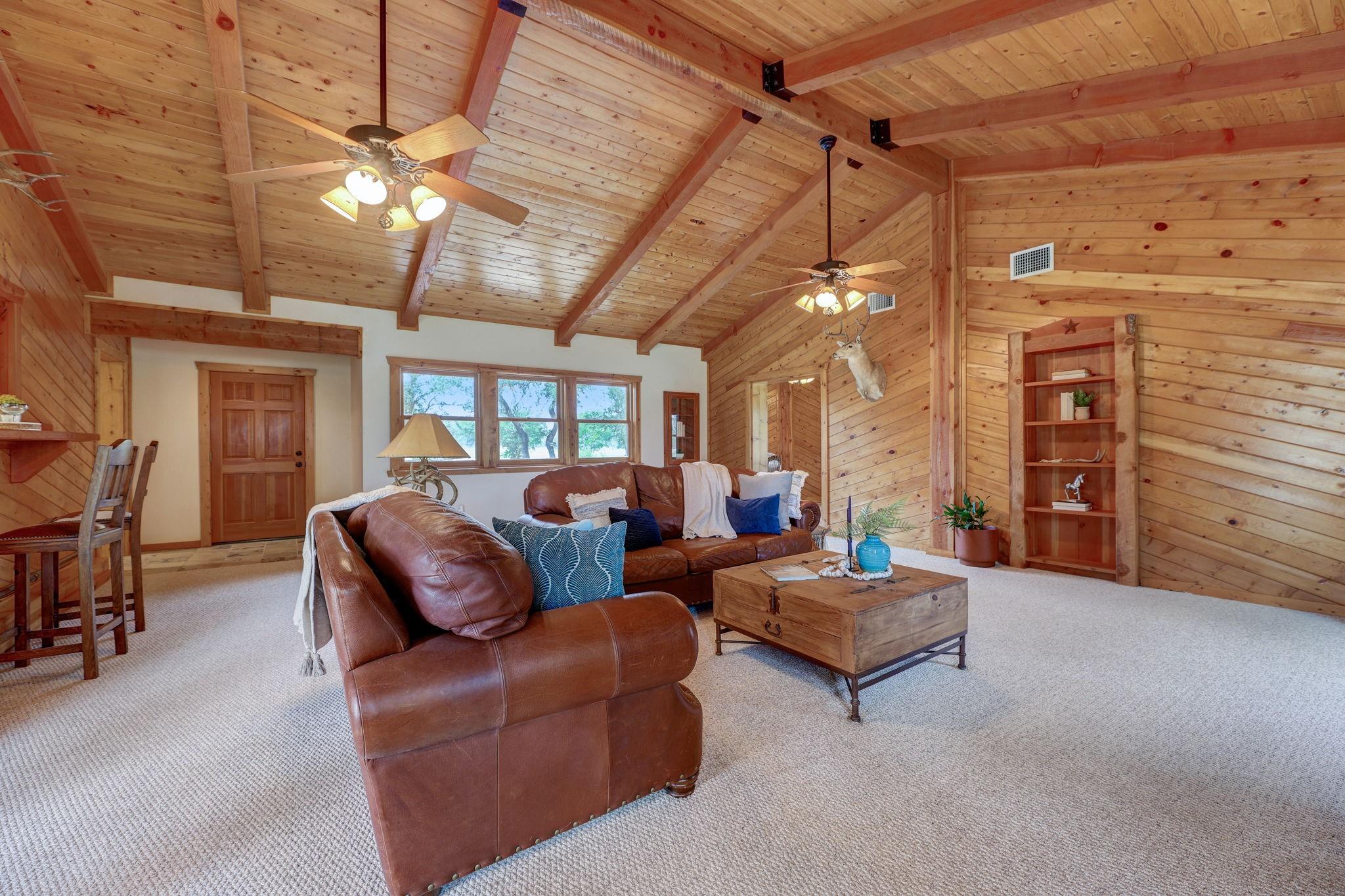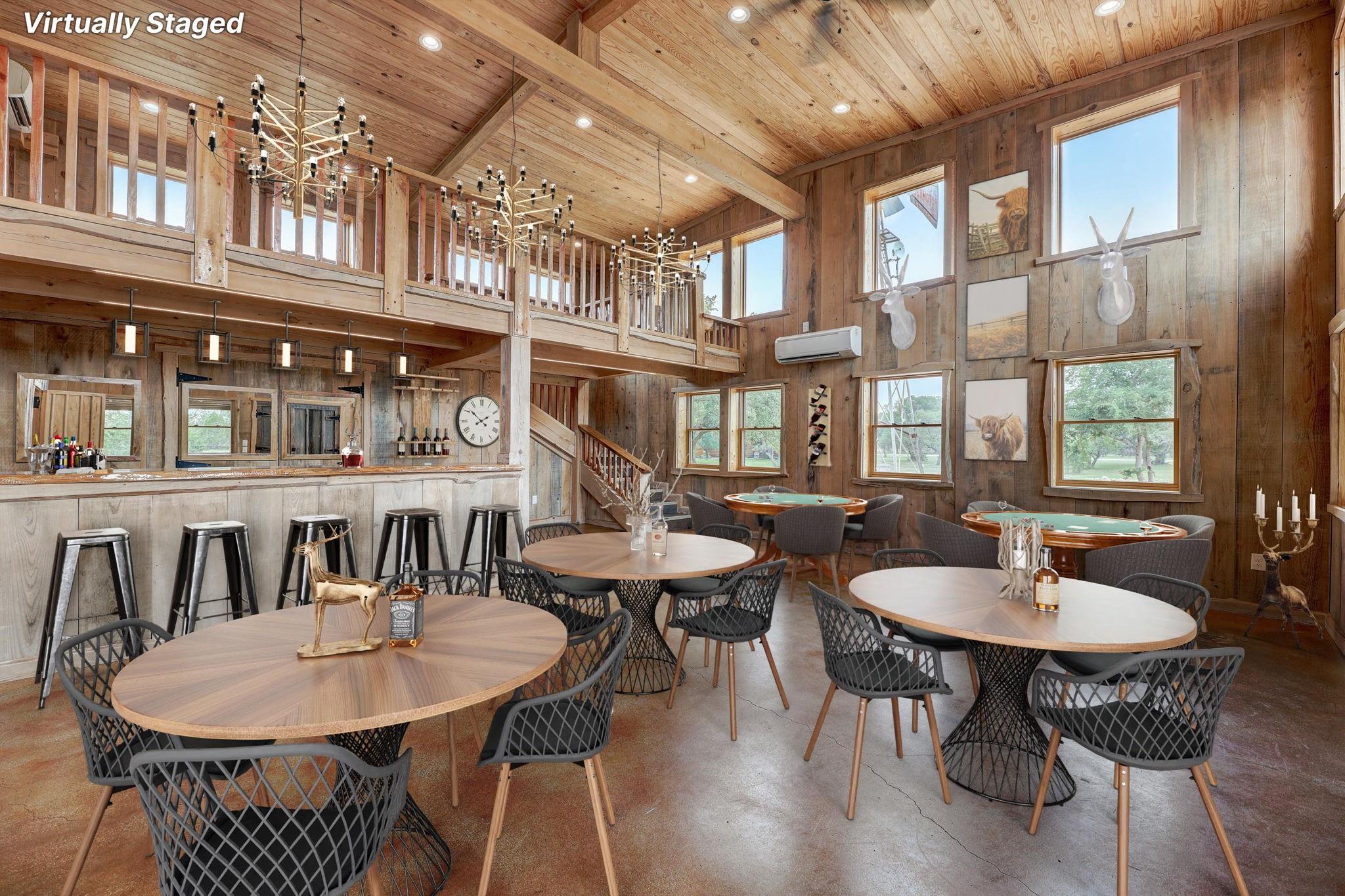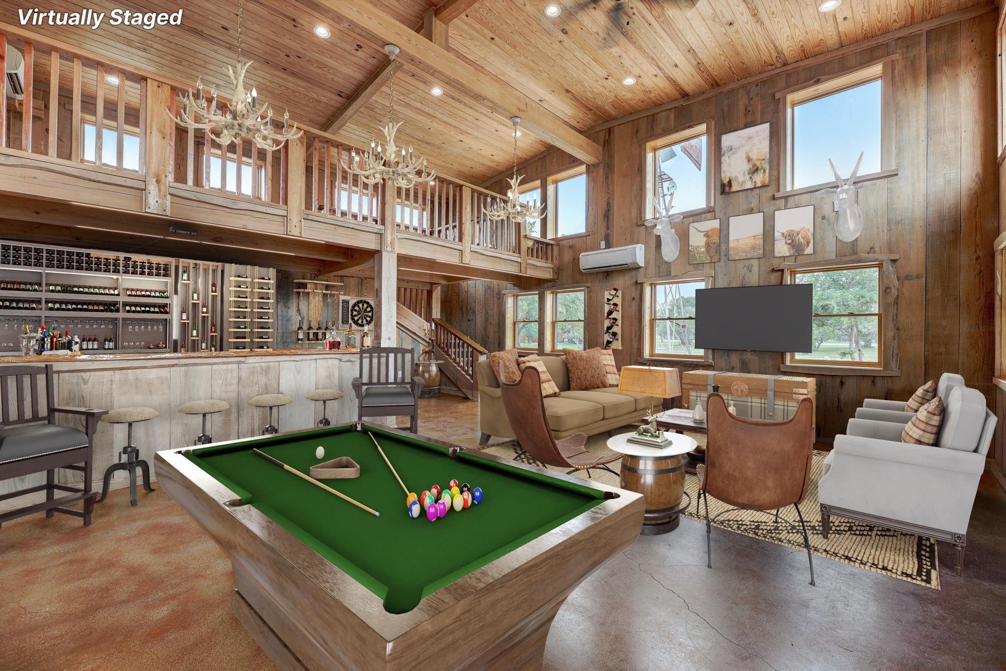 Welcome to a beautiful & truly unique property nestled in the heart of the TX Hill Country. There is so much versatility with this lovely property, it's suitable for a family compound, retreat, STR, B&B, or a perfect place for gatherings & events. Entering the property, you immediately feel a sense of peace and tranquility as you are amongst the numerous large oak trees, the lush grass & the crystal-clear pond. Nestled in the center of the property is a beautiful custom built, log & rock home, built w/ attention to detail and quality of craftsmanship. This home is a work of art built of wood brought in from Colorado, & some of the wood was sourced here in Wimberley, TX! The home boasts 5,000 sq ft, soaring ceilings, multiple bedrooms, and an open floor plan set up for entertaining. There are 2 fully equipped, custom kitchens, 3 dining areas/ 3 living rooms, 2 large lofts that can serve as extra space for sleeping, game rooms, office, or yoga space. Another exceptional feature of this property is the custom, newly built 3,600 st ft (approx), SALOON and additional lodging! This space is creatively built wi/ stunning woods throughout. This space consists of a Texas style SALOON w/ a bar, large open area and loft. Alongside the SALOON is the TEXAS TUMBLEWEED INN featuring 2 Bd/ 2 full B, 1/2 B, a spacious loft, full kitchen, dining and living room. This is totally TEXAS & brand new, finished in May! There are 2 parking spots for RV’s w/ connections, & ample parking. The lay of the property is well laid out for a large pool nestled among the oak trees, centered between the house and pond for everyone to enjoy, meandering paths through the grove of majestic oak trees and of course – the pond! Conveniently located just minutes from downtown Wimberley, 1 hour from Austin and minutes from wineries, breweries, shopping, restaurants, Jacobs Well, the Blanco River and SO much more. This special property offers a true Texas Hill Country lifestyle and endless opportunities.