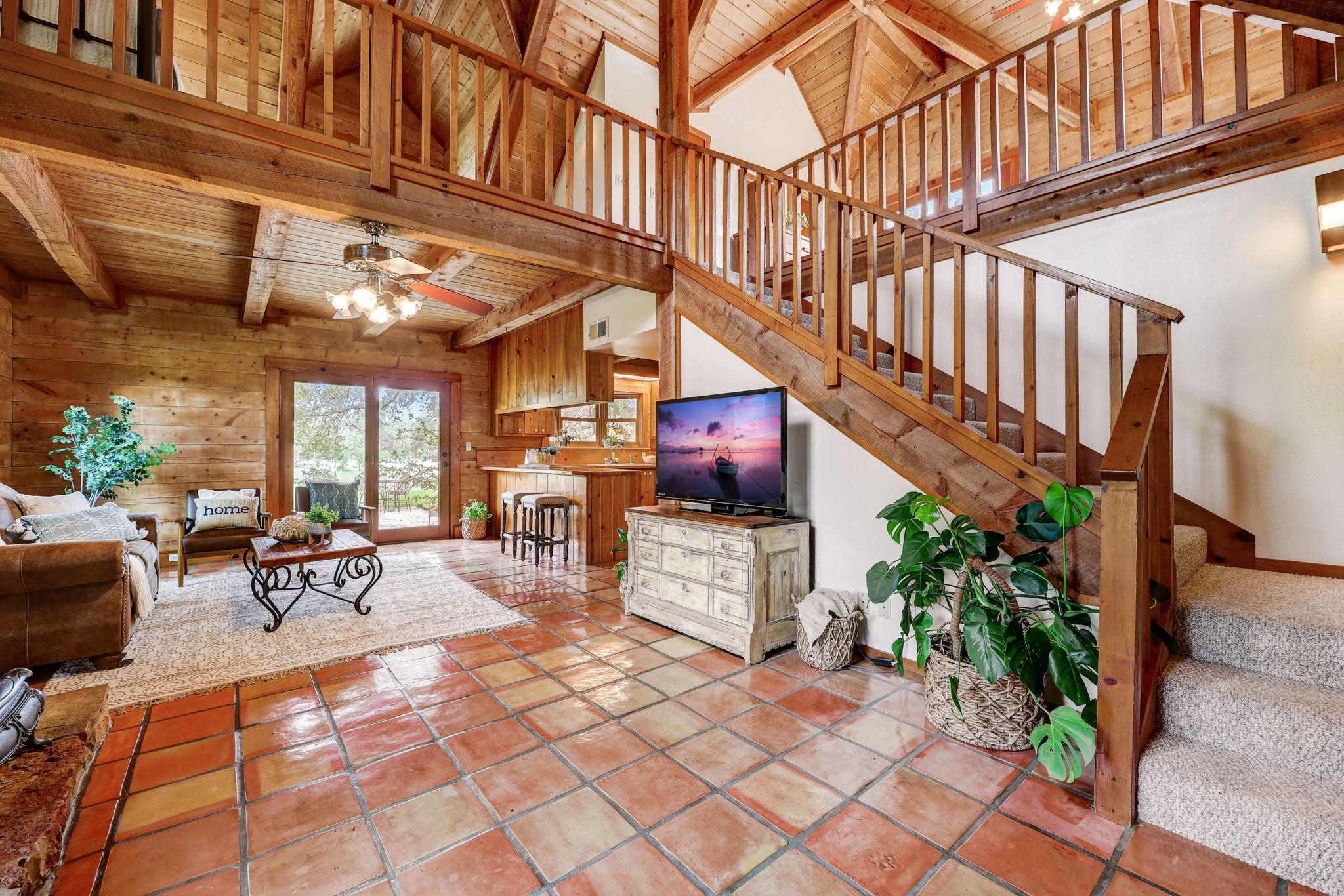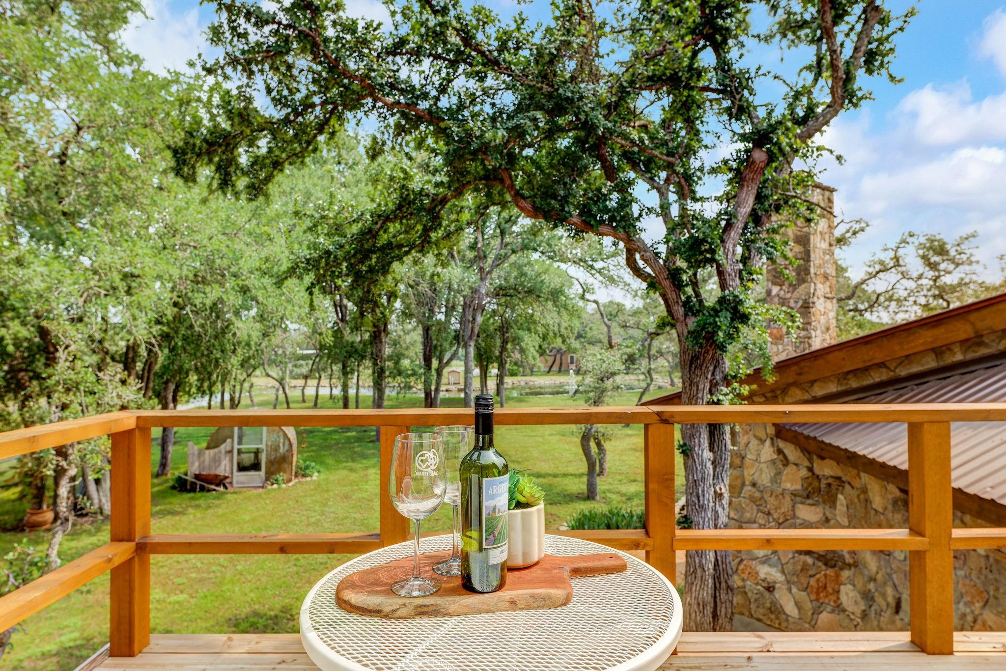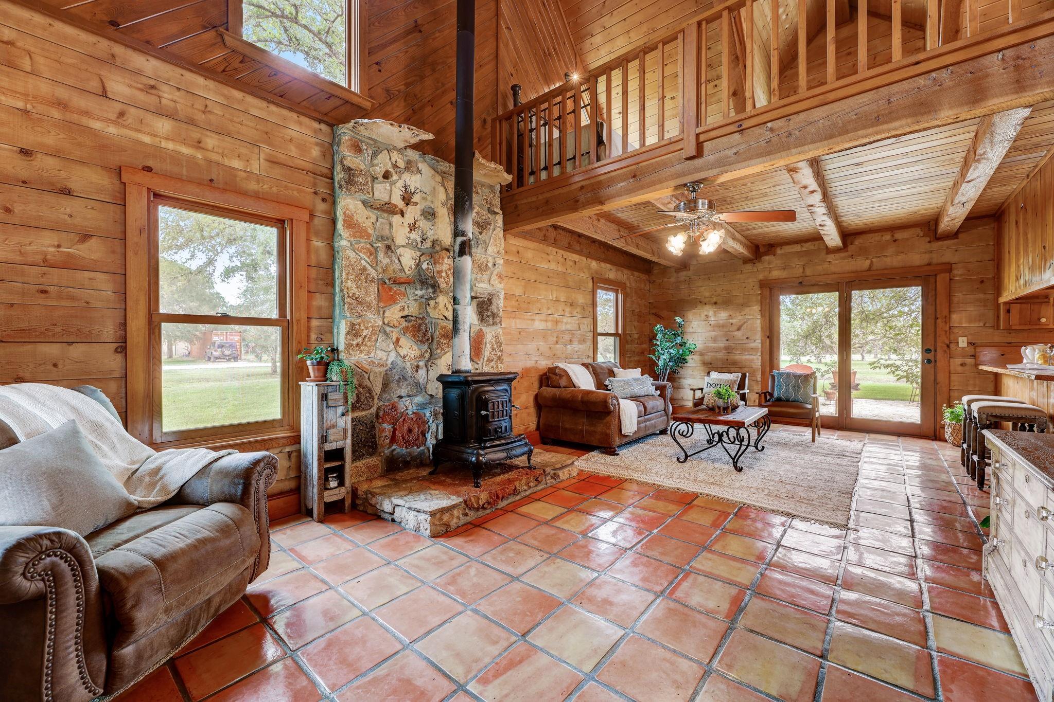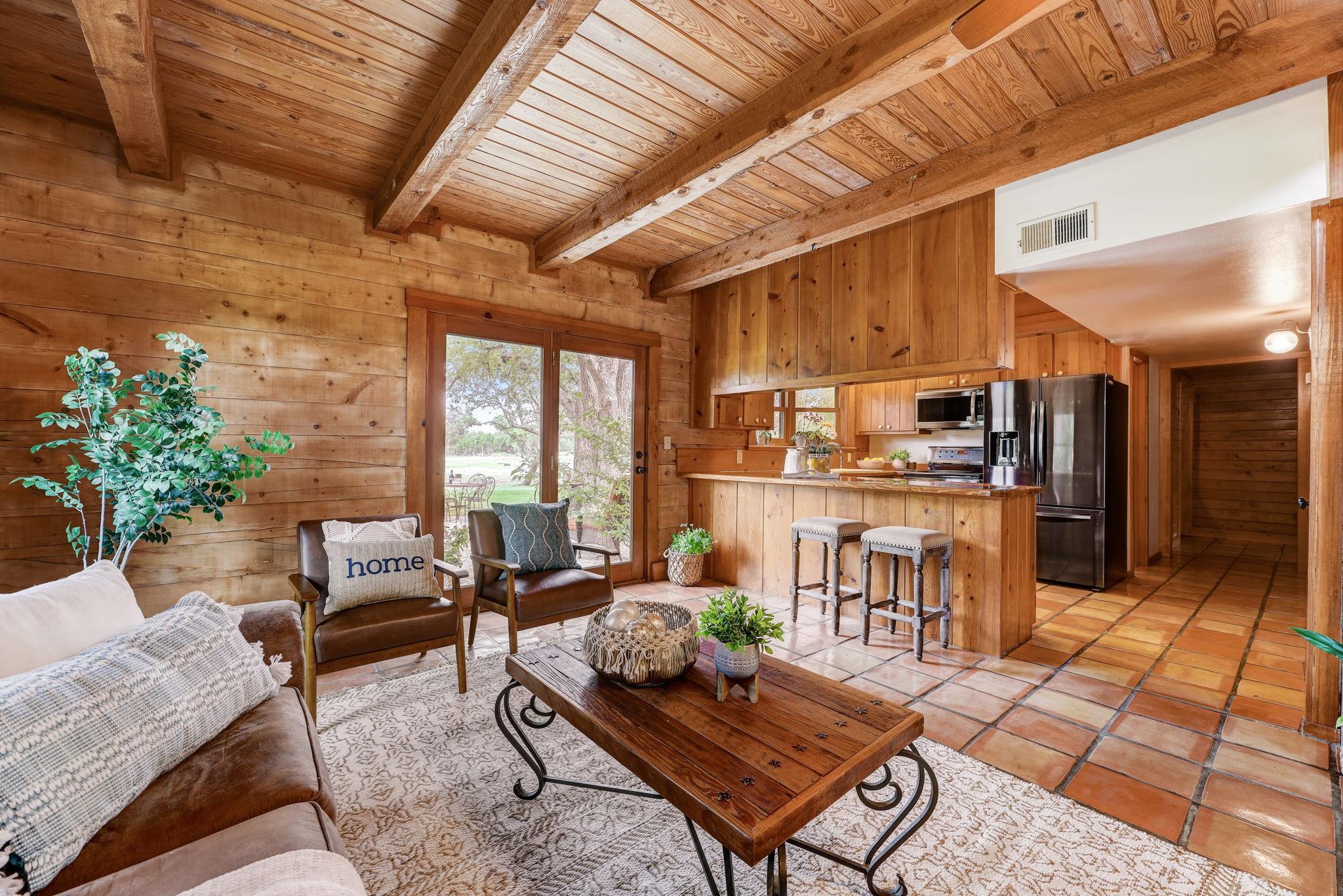 Welcome to a beautiful & truly unique property nestled in the heart of the TX Hill Country. There is so much versatility with this lovely property, it's suitable for a family compound, retreat, STR, B&B, or a perfect place for gatherings & events. Entering the property, you immediately feel a sense of peace and tranquility as you are amongst the numerous large oak trees, the lush grass & the crystal-clear pond. Nestled in the center of the property is a beautiful custom built, log & rock home, built w/ attention to detail and quality of craftsmanship. This home is a work of art built of wood brought in from Colorado, & some of the wood was sourced here in Wimberley, TX! The home boasts 5,000 sq ft, soaring ceilings, multiple bedrooms, and an open floor plan set up for entertaining. There are 2 fully equipped, custom kitchens, 3 dining areas/ 3 living rooms, 2 large lofts that can serve as extra space for sleeping, game rooms, office, or yoga space. Another exceptional feature of this property is the custom, newly built 3,600 st ft (approx), SALOON and additional lodging! This space is creatively built wi/ stunning woods throughout. This space consists of a Texas style SALOON w/ a bar, large open area and loft. Alongside the SALOON is the TEXAS TUMBLEWEED INN featuring 2 Bd/ 2 full B, 1/2 B, a spacious loft, full kitchen, dining and living room. This is totally TEXAS & brand new, finished in May! There are 2 parking spots for RV’s w/ connections, & ample parking. The lay of the property is well laid out for a large pool nestled among the oak trees, centered between the house and pond for everyone to enjoy, meandering paths through the grove of majestic oak trees and of course – the pond! Conveniently located just minutes from downtown Wimberley, 1 hour from Austin and minutes from wineries, breweries, shopping, restaurants, Jacobs Well, the Blanco River and SO much more. This special property offers a true Texas Hill Country lifestyle and endless opportunities.