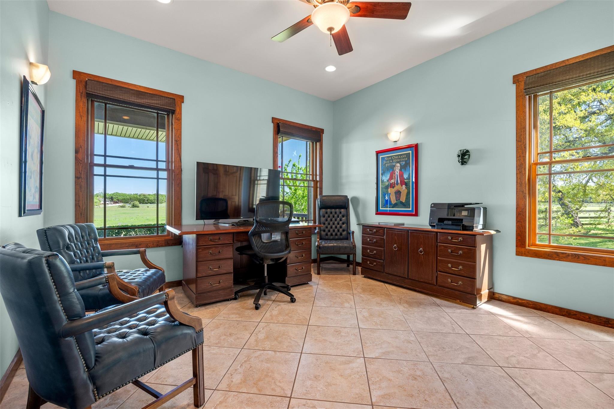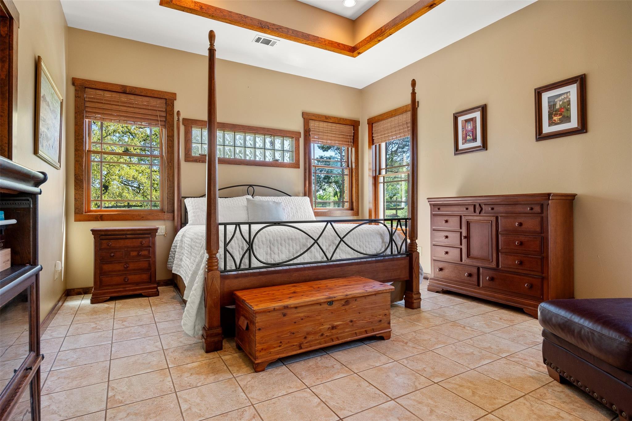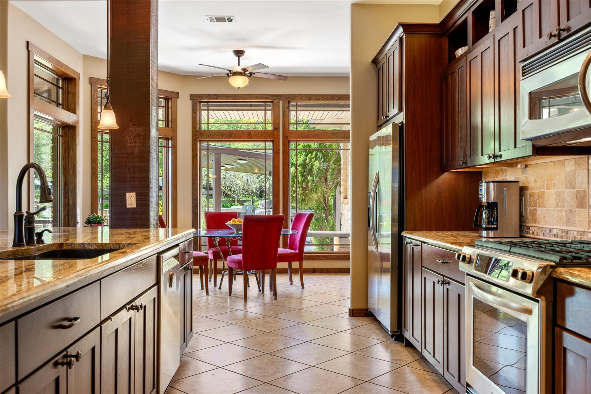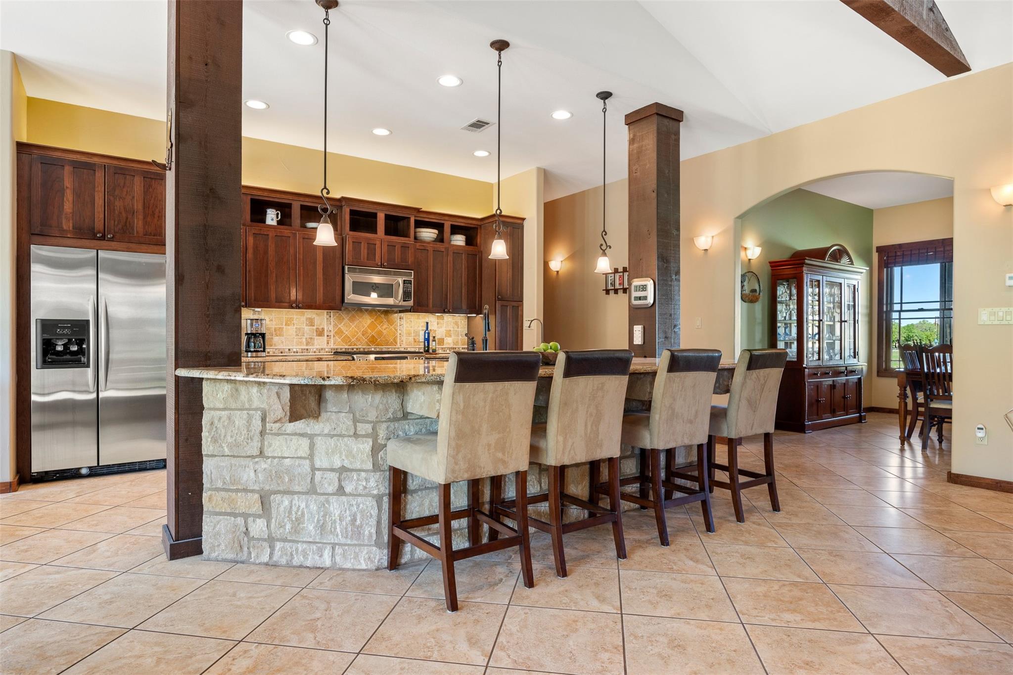 Experience the beauty and serenity of peaceful Texas Hill Country living tucked away from busy roads, along with easy access to in-town conveniences in under 3 miles with Ag Exemption! This wonderful single-level home on generous scenic grounds rests in desirable Dripping Springs and offers an exceptional lifestyle. Complementing the expansive main residence is an income-generating attached vacation rental suite, with its own separate entrance and dedicated electric meter. Total square footage is 3,520, with 4 bedrooms and 3.5 bathrooms. Heightening the appeal are large front and rear porches for taking in the views, covered/uncovered patios plus an outdoor kitchen for entertaining, a heated outdoor soaking pool, and an oversized garage for your vehicles. Beyond double front doors await elegant interiors accented by high vaulted ceilings with wood beams, huge sun-filled windows, lovely tile flooring, and rich wood trim adding warmth throughout. The spacious living room is a dream space for the host with a built-in bar area and an adjoining formal dining room. The open chef’s kitchen is finely appointed with ample wood cabinetry, stainless steel appliances, and a large stone and granite island providing extra seating. A charming breakfast nook makes a perfect spot for morning coffee and casual meals. Nearby is a sizable pantry, half bath, and full laundry room. From the living room, glass doors open to the rear oasis for effortless indoor/outdoor living. The private primary bedroom suite is a tranquil retreat offering access to the patio and yard, a huge walk-in closet, and spa-like bath with dual sinks, soaking tub and shower. Two additional bedrooms sit on the opposite side of the house, flanking a full hall bath. Other highlights include a handsome office for working remotely, central AC & heat, and a water storage tank. The excellent location is close to town amenities and in the highly acclaimed DSISD. See documents for personal property that conveys.
