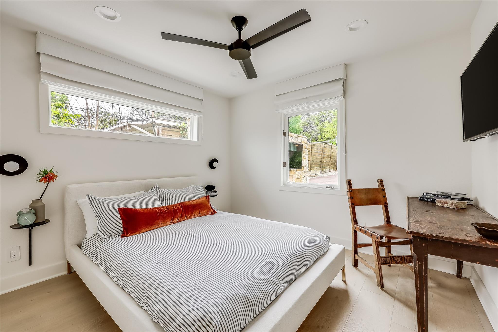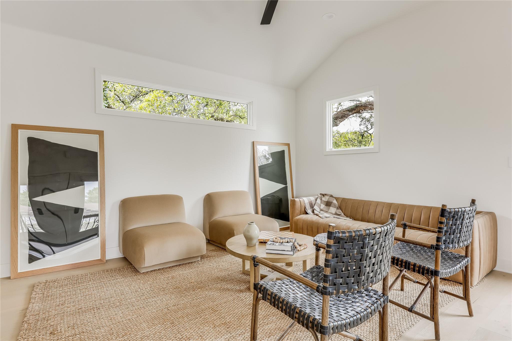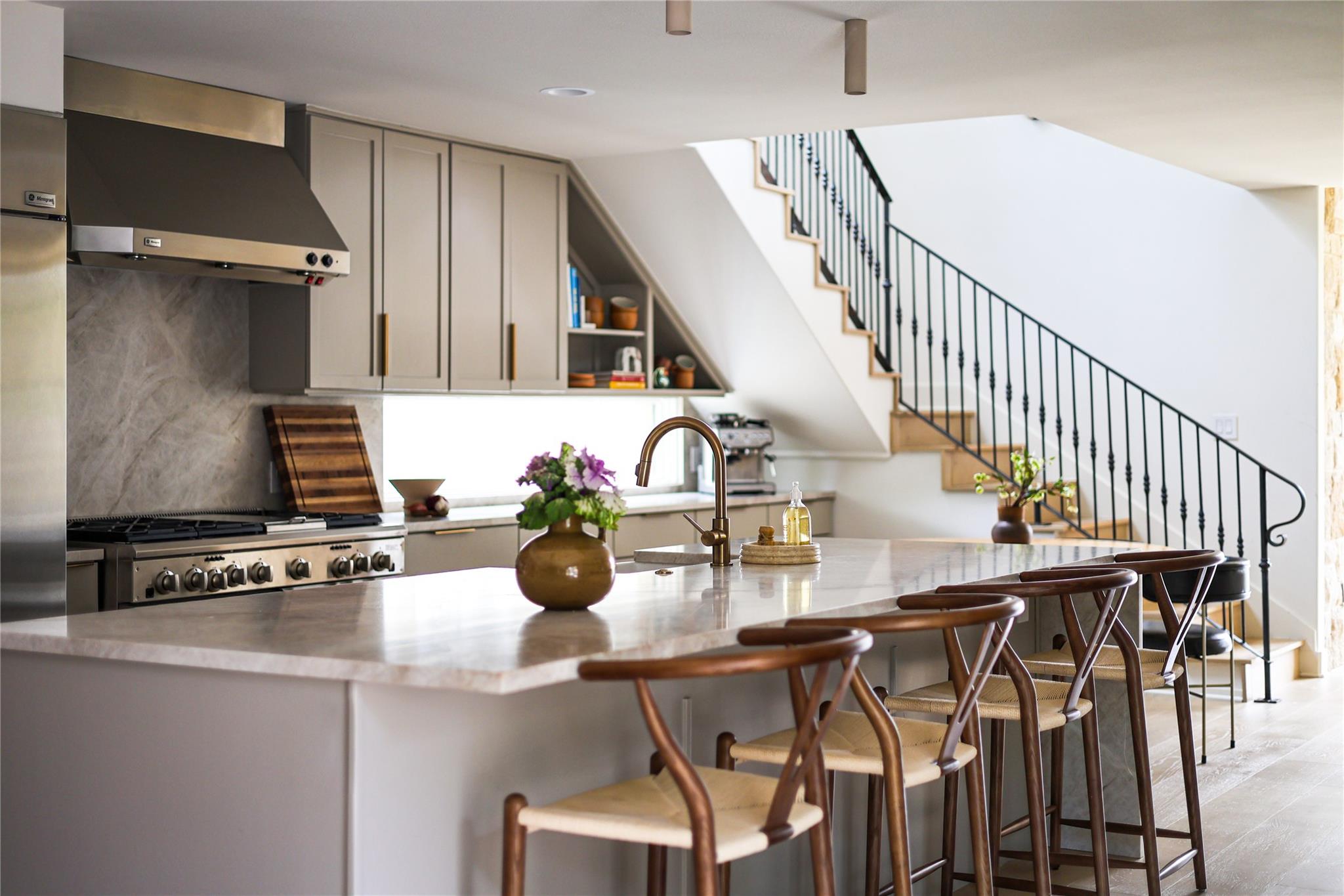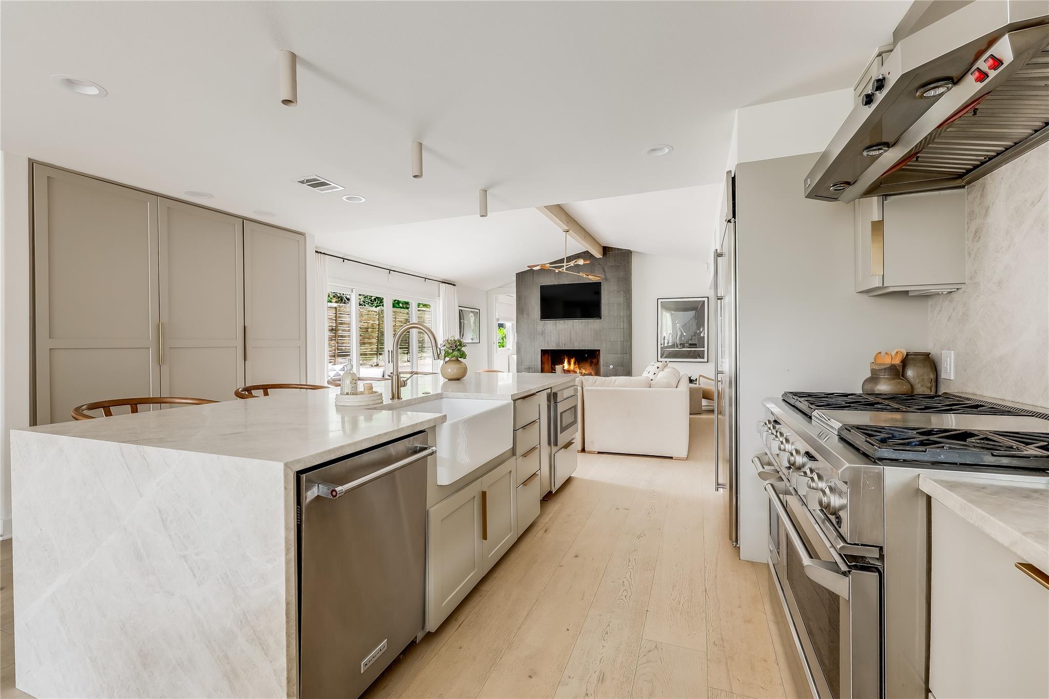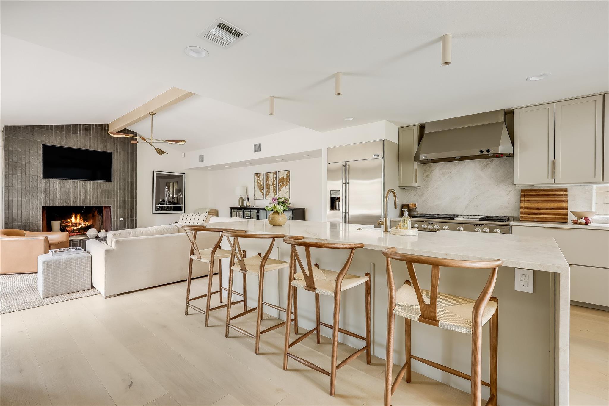Step into luxury living in the heart of Austin's coveted Zilker neighborhood. Offering an unparalleled blend of comfort and convenience, every detail is meticulously selected. Steps away from South Lamar’s vibrant scene, the serene waters of Barton Springs, and Zilker Park. Every inch of this home has been curated with high-end finishes, from the wide plank white oak floors to the custom recessed lighting that illuminates the expansive kitchen and living areas. Equipped with top-of-the-line appliances, a taj mahal waterfall quartzite island, and abundant storage, the kitchen is a haven for culinary enthusiasts. Cozy up next to the floor-to-ceiling wood- burning tile fireplace located in the living room, open to the kitchen. Discover a secondary master suite on the main level, complete with access to the backyard oasis and a luxurious en-suite bathroom. Two additional bedrooms on the first floor offer ample space and natural light. Ascend the hardwood stairs to a secondary living area, boasting panoramic views of the downtown skyline and a wet bar for effortless entertaining. The primary suite awaits with soaring ceilings, an oversized marble bath, and a custom closet for optimal organization. Outside, enjoy a courtyard style patio, offering a serene escape from the bustling city. An oversized garage and ample driveway provide parking for car enthusiasts and hobbyists alike. Don't miss the chance to own this Zilker showpiece offering unparalleled luxury and convenience in an unbeatable location.
