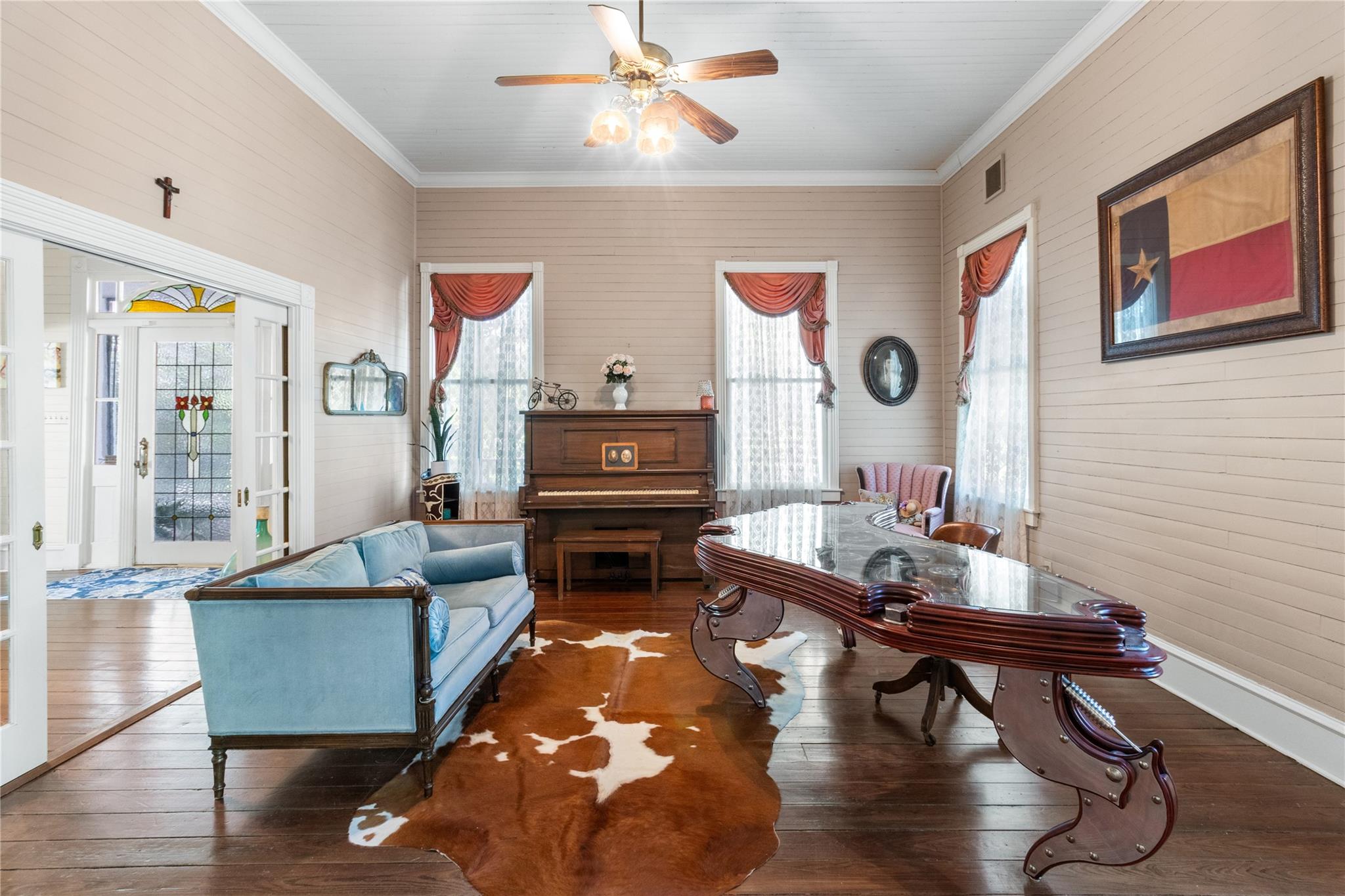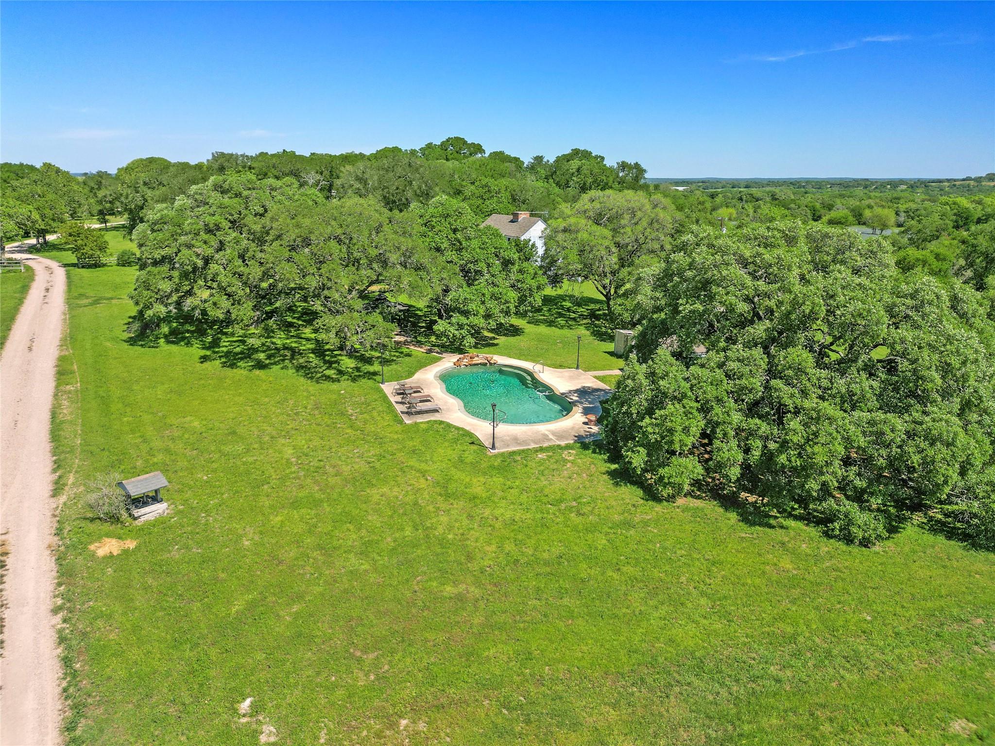 Talk about Texas History!! Here is a rare find of a unique piece of land that holds an abundance of Texas History. This turn key property consists of 27.577 acres of views, century year old live oaks, a pond, a 2 story Plantation Style Main house with original historical details from the 1800’s throughout the 4 bedroom, 5 bathroom, formal living, formal dining (all original to the era of the house), remodeled open concept living, breakfast and kitchen, there is a log cabin with a loft built in1820, 2 story Independence House built in 1800’s by Dr. George Red, an Original Homestead house that was built in 1901, a couple of cozy cabins, an exercise cabin, a remodeled Ranch hand house and a barn with bunk quarters. There are structural remains of the very first indoor hospital in Texas built by Dr. George Red. For entertainment there is a sweet little antique chapel, a large pavilion for large gatherings, a swimming pool with a quaint pool house and gazebo. Each house that is located on this property is fully furnished and all furnishings are included in the sale. Come imagine all the endless possibilities that this property brings as you travel back in time with the luxury amenities of modern day living that is right off the spectacular LaBahia Trail (FM 390). This property is the main part of the once famous Mariposa Ranch Bed & Breakfast with all the houses and amenities. The property would be ideal for any historian, wedding venue, corporate retreat, family compound or air b and b.