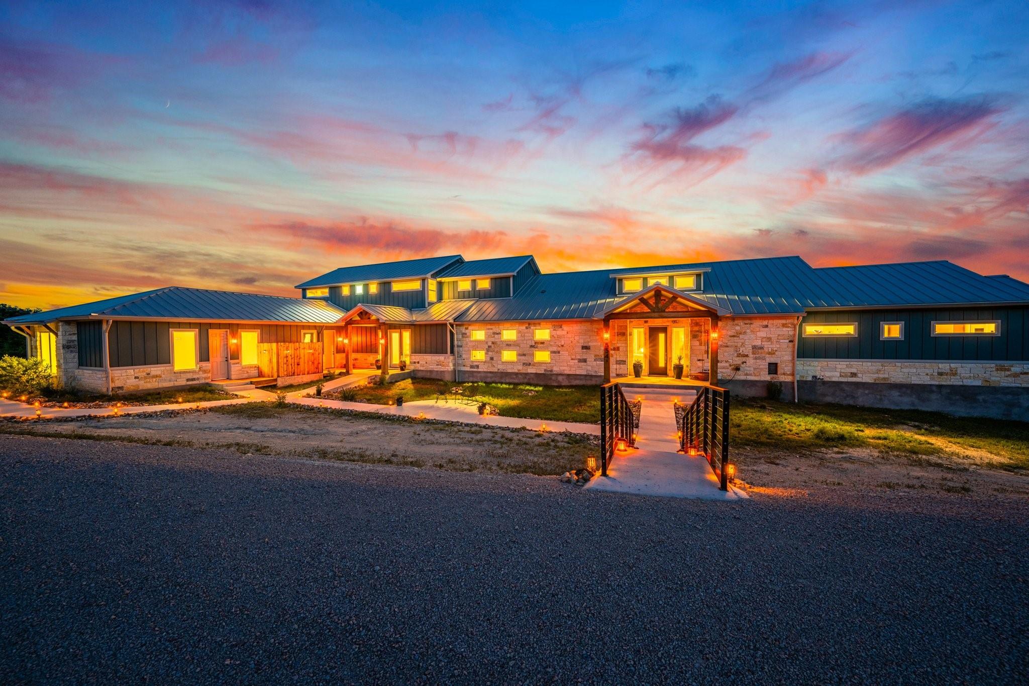 Indulge in the epitome of luxury living with this exceptional property, where sophistication meets convenience. Every inch of this meticulously curated property exudes luxury and elegance. From the exquisitely crafted suites to the spacious main residence, no detail has been spared to ensure a truly lavish experience for discerning individuals. Whether you envision it as a prestigious corporate retreat, an exquisite multi-generational sanctuary, or a decadent short-term rental, this property stands ready to fulfill your every desire. Live in unparalleled comfort while effortlessly generating income in the beautiful dark sky community of Seven Falls Ranch, just minutes away from some of the best wineries the Texas Hill Country has to offer! Moreover, sustainability meets sophistication with a 48,000-gallon rain catchment system and eco-friendly features seamlessly integrated throughout the property. Nestled outside Fredericksburg city limits, it avoids the permitting regulations that govern most short-term rental properties. Sold turn-key, including all bookings and furnishings, minus a few personal items.