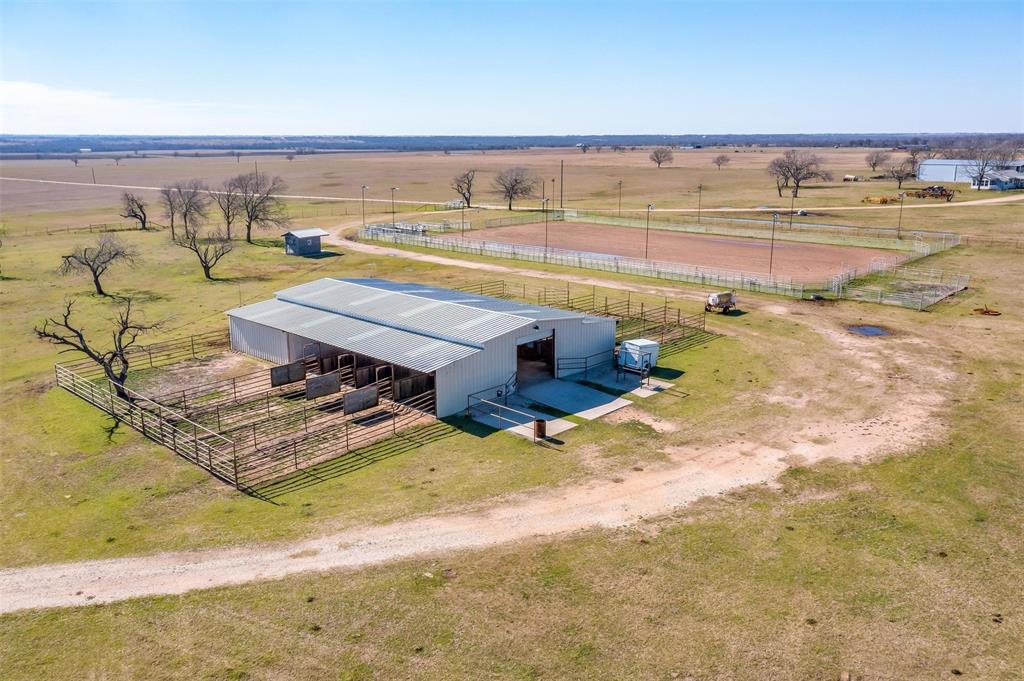 Located on the western edge of Milam County, this 126+/- acre ranch presents a turnkey and beautiful opportunity for any equine lover or professional cowboy to call home. Located just 30 minutes from Taylor, Samsung Headquarters, & 1 hour from major cities Austin, Bryan/College Station, & Waco, you can escape into a hill country inspired, white stone home w a wrap around porch looking over picturesque & pristine coastal hay fields, gently rolling topography, hard woods, & a large pond. The home offers quintessential Texas living w wrap around porches, stained concrete floors, a cedar staircase, & a standing seam metal roof. The property's equine offerings are efficient & a perfect turnkey opportunity for any professional cowboy, weekend warrior, or hobby horse enthusiast. (8) 10x12 stalls, all with water, and exterior pipe runs. Arena is pipe fenced, lit, & approximately 120x220 w a manual roping chute, catch pen, 1 lane on the eastern side of the arena, & 1 trap on the western side.