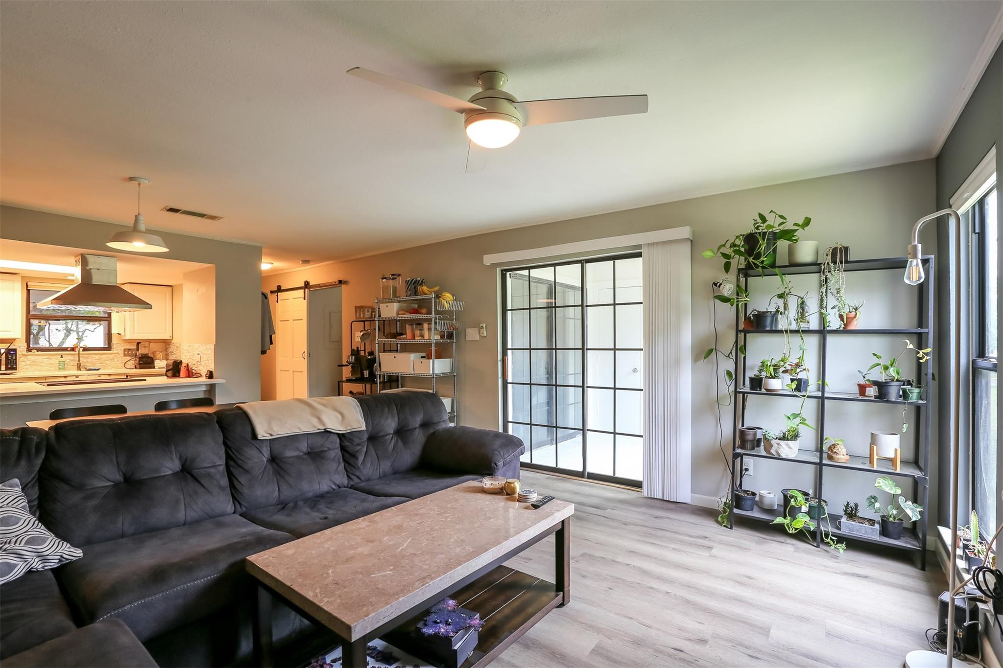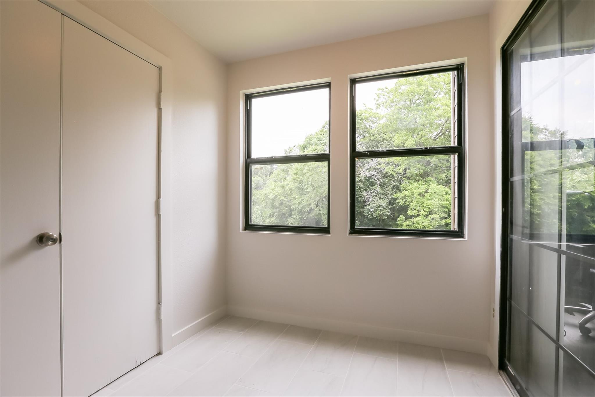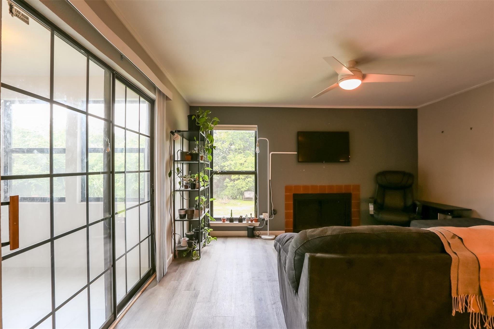 AVAILABLE JULY 15TH: Welcome to Paddock Condos #114, a serene and stylish retreat nestled in the heart of the vibrant Brentwood neighborhood. Step inside to discover a beautifully updated interior featuring sleek Ikea-style sliding doors, stainless steel appliances, and a chic glass tile backsplash. The floor plan is both gorgeous and functional, flooded with natural light that highlights the cozy fireplace and spacious living areas. Storage won't be an issue with the huge walk-in closet, and your car will stay protected in the carport. This modern condo offers a peaceful nature view from your enclosed porch/flex space. Paddock Condos offers resort-style amenities, including large pools, tennis and pickleball courts, basketball court, clubhouse, and a tranquil creek. Free water, trash, and parking included in the rent! Ecobee smart thermostat included for added comfort. Located close to shops, restaurants, HEB, and public transit options like the MetroRapid, you'll have everything you need within easy reach. This community is perfect for those seeking a blend of modern living and natural beauty, all within a peaceful and pet-free environment (pets not allowed at Paddock). Schedule your viewing today and discover your new home in central Austin.