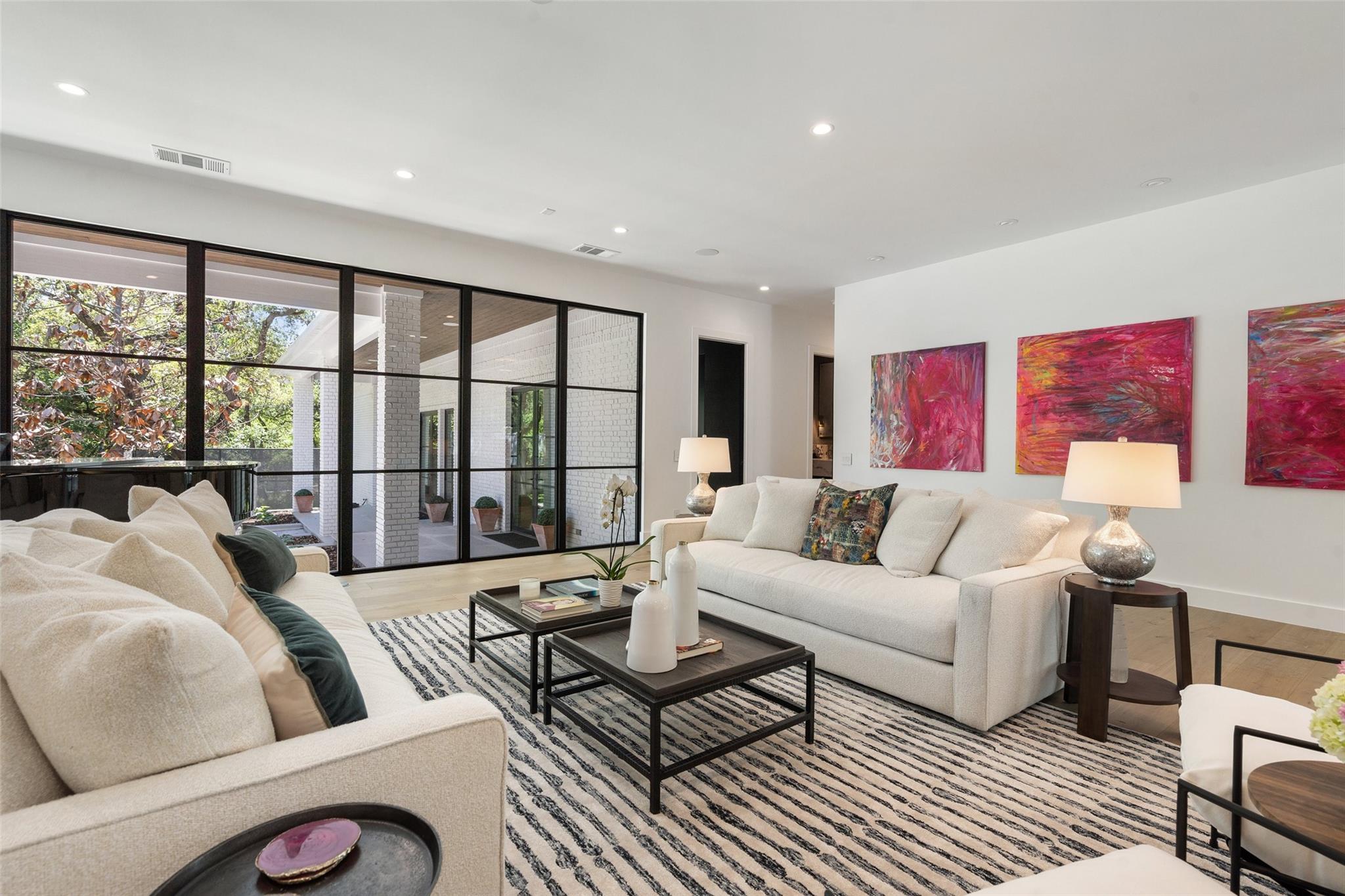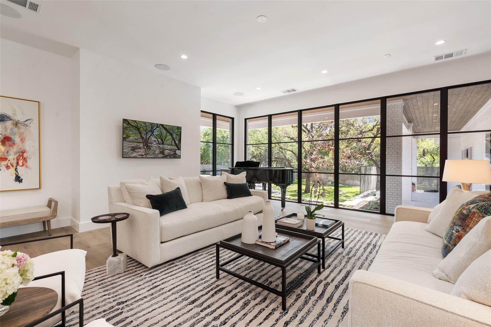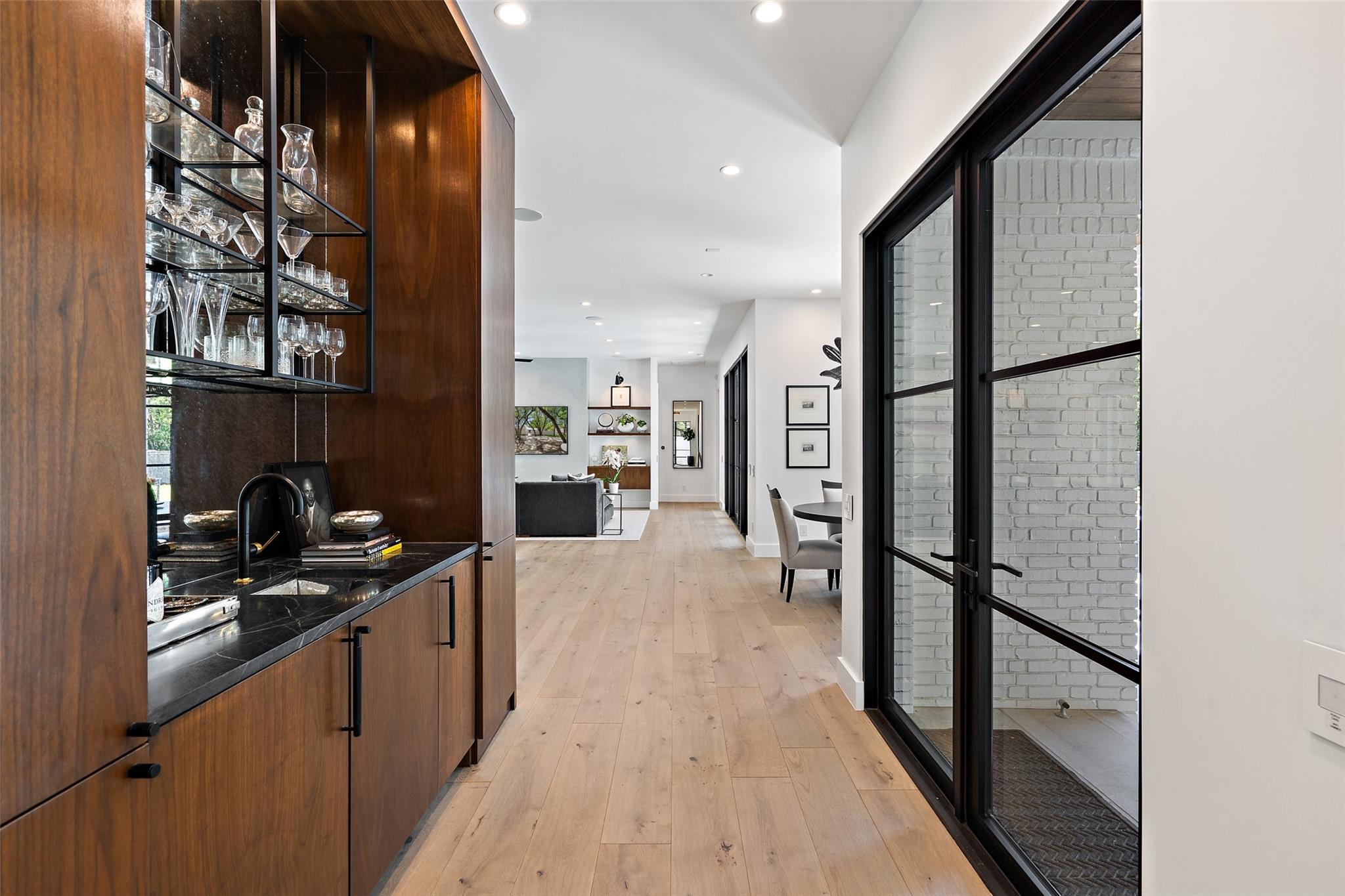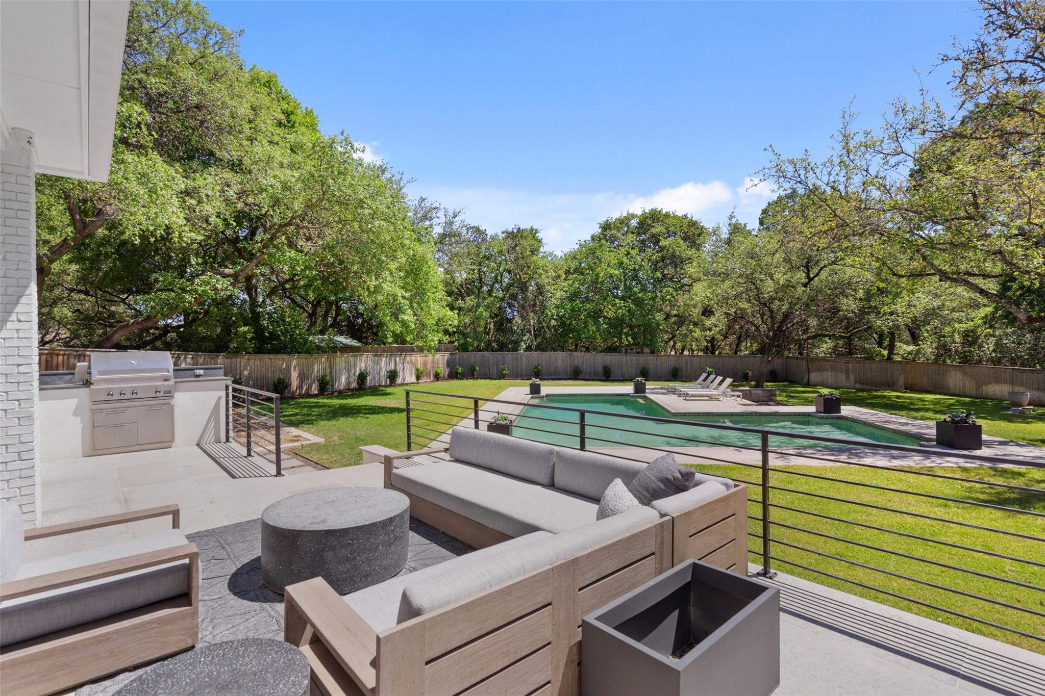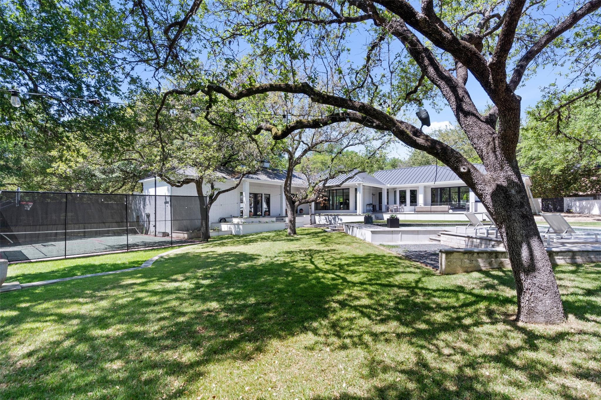 Enjoy luxury living in this stunning 1-story home in West Rim, one of Westlake's most sought-after neighborhoods. The home boasts updates rivaling those seen in Architectural Digest, including walnut cabinetry, Venetian plaster walls, a Galley kitchen sink, wide plank white oak floors, and beautiful marble selections. Step outside to your private paradise with a pickleball court, spacious backyard, and a pool right out of the page of a Slim Aarons photobook. Just a 2-minute stroll down the neighborhood sidewalk lies exclusive access to a homeowners' park, offering tennis and basketball courts as well as boat docks on Lake Austin.