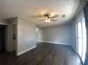 Adorable 2/1.5 unit in SOCO! Located in a 4 plex, in a cul-de-sac this home is close to everything! Updated kitchen, stainless steel appliances, fridge included, modern lighting, hardwood-like flooring, white cabinets! Open to living area, same wood-like flooring, ceiling fan, neutral paint color, natural light! Two bedrooms located upstairs along with 1 full bath! Carpet in bedrooms, ceiling fans. Common yard area. Small patio area. Washer/dryer hookups. Water/Gas/Trash are included for $75 a month. Cable/internet/electricity not included.