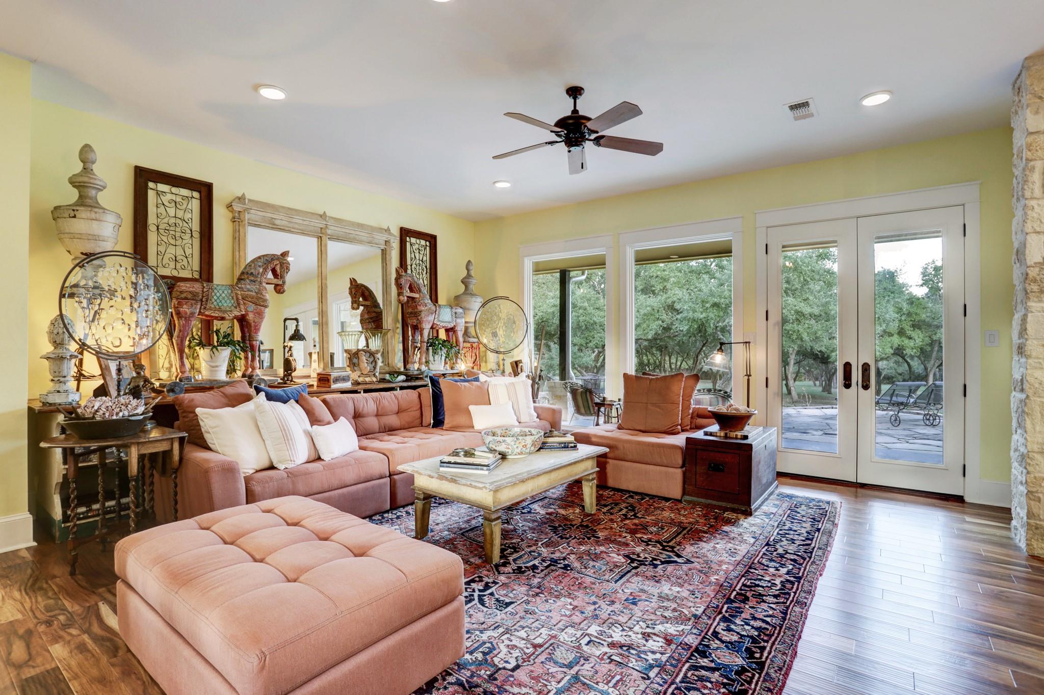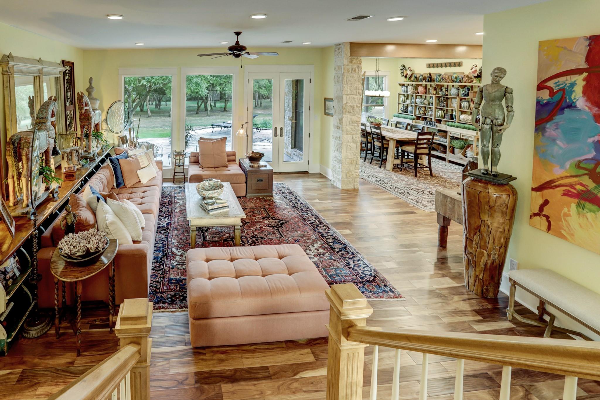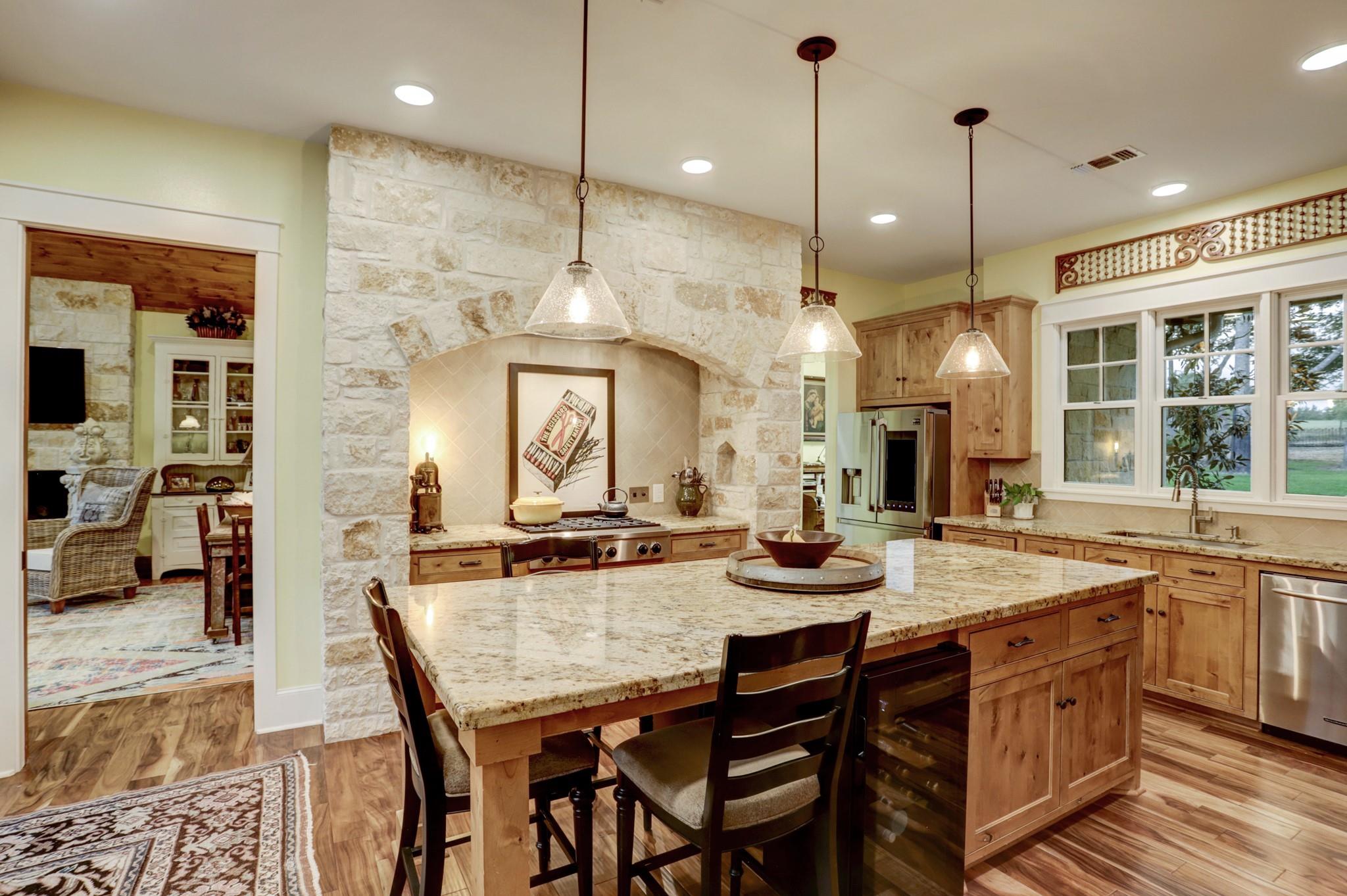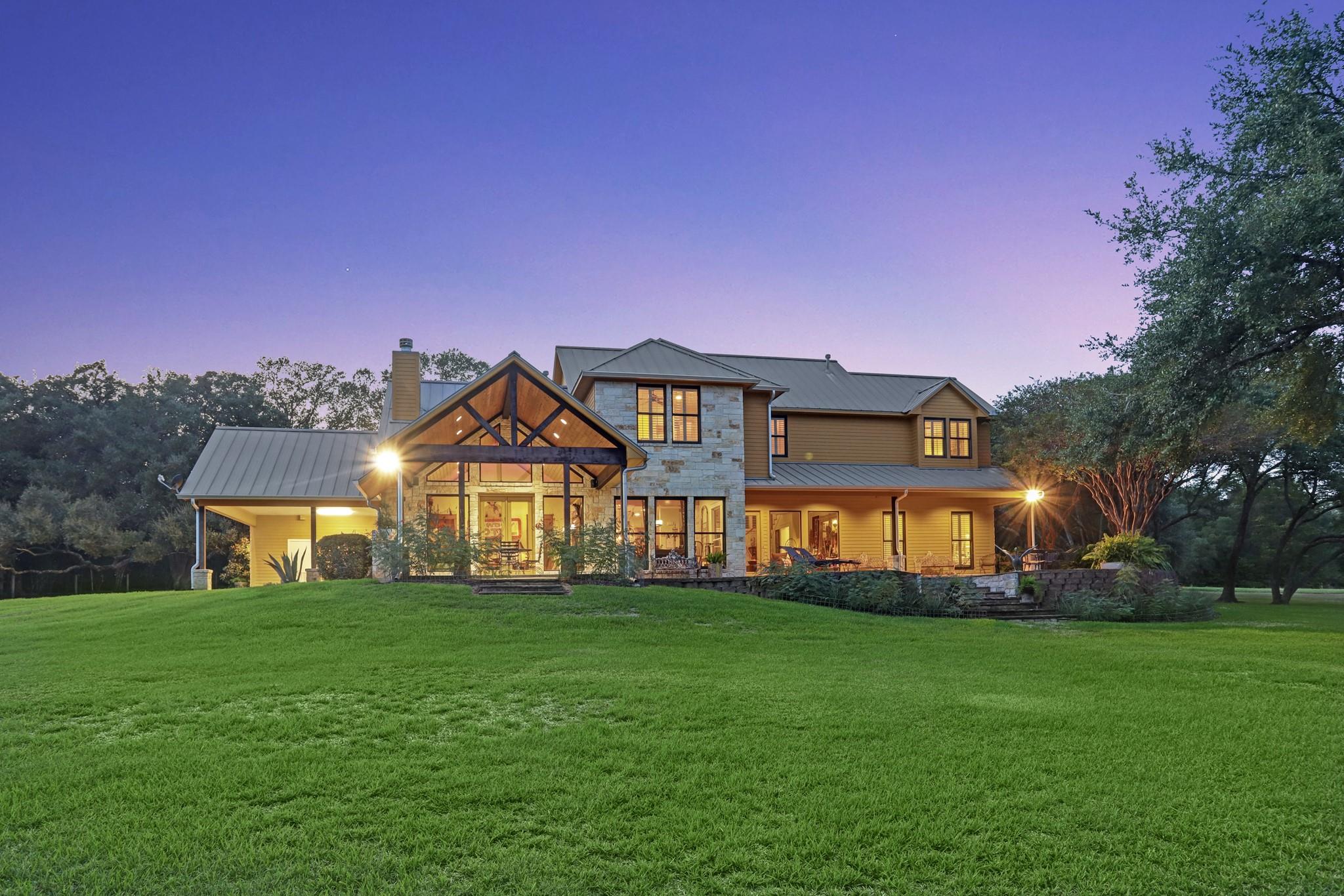 This stunning custom home features green hay meadows and over 100 yr old Live Oaks providing ultimate privacy on 41 acres. This 4 bedroom/4 bath home (4317 sf) has large porches and stone patios front and back to enjoy the outdoors. A dramatic 2 story entrance opens to living and dining room with floor to ceiling windows. Chefs’ kitchen with an arched stone wall accent above 6 burner gas range, double ovens, large island with seating and wine fridge, and Smart fridge. The family room has Austin stone fireplace and could easily be guest suite with attached full bath and walk-in closet. 1st floor with 3 sets of Double glass doors that open into a park-like setting. Primary downstairs with built-ins and bath with soaking tub, walk-in shower, and closet. 2nd floor has loft sitting area with 3 bedroom/2 bath. Ag exemption currently in place. Only 15 minutes from Round Top and Brenham. Halfway between Houston and Austin.