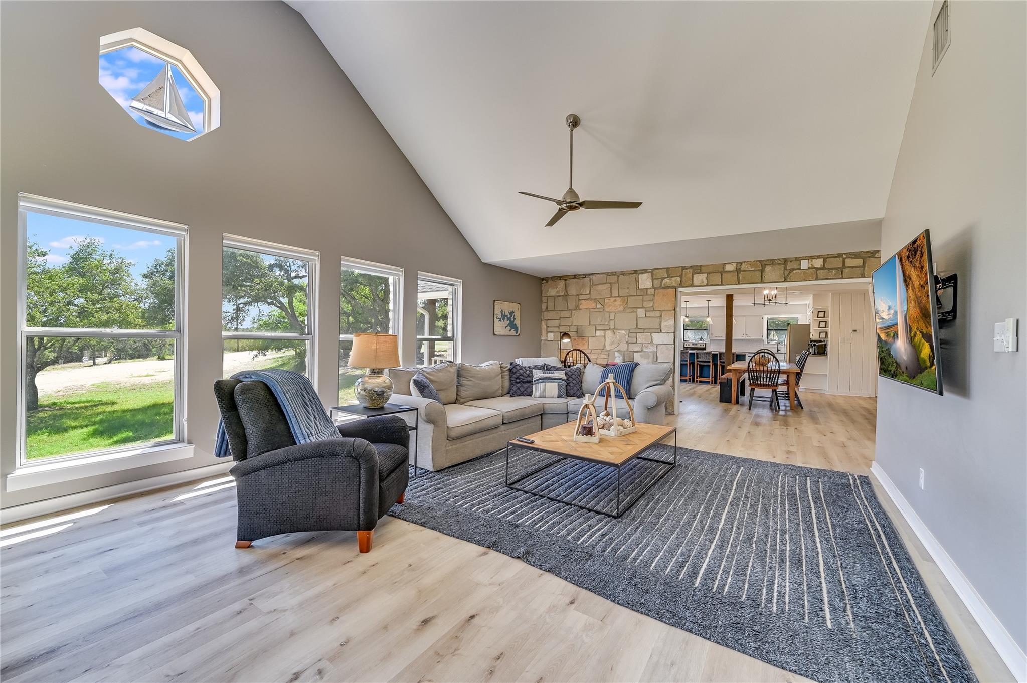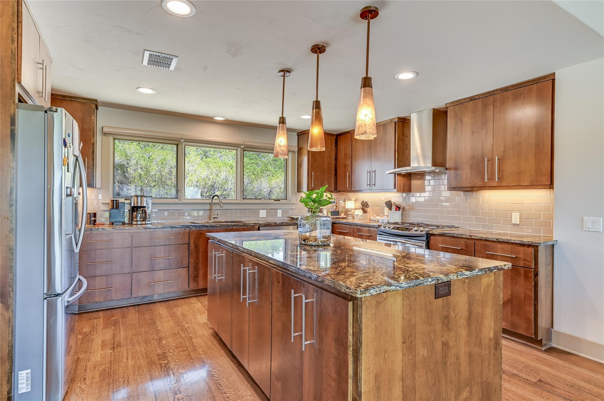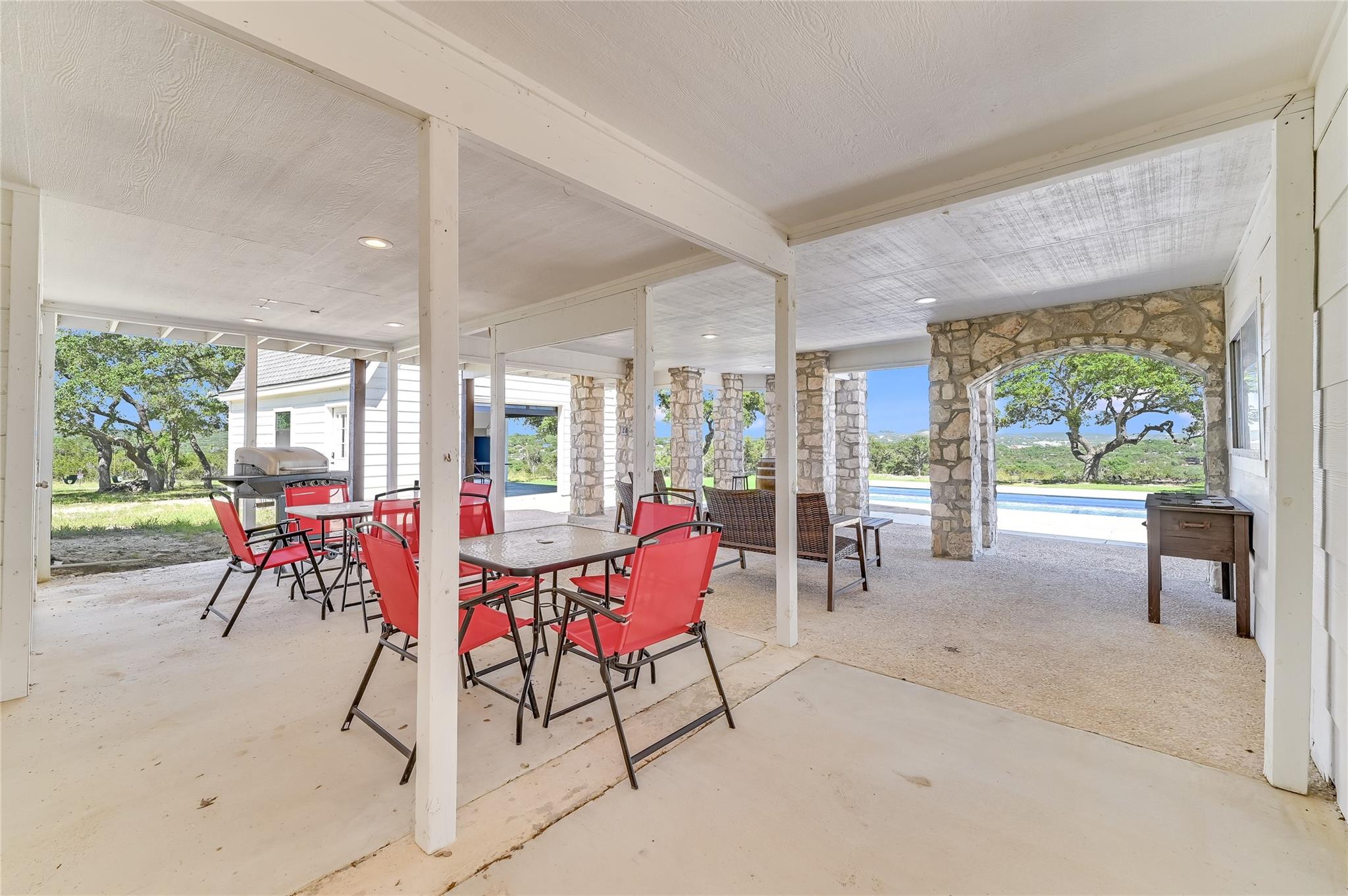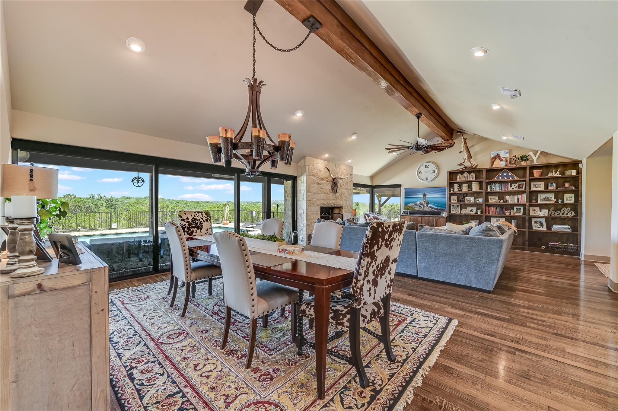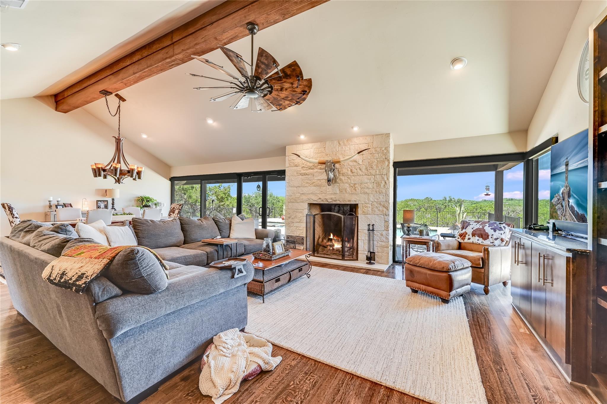 | Interior Features | Breakfast Bar, Ceiling Fan(s), Beamed Ceilings, High Ceilings, Granite Counters, Quartz Counters, Double Vanity, Interior Steps, Kitchen Island, Multiple Dining Areas, Multiple Living Areas, Murphy Bed, Open Floorplan, Primary Bedroom on Main, Recessed Lighting, Walk-In Closet(s) | |