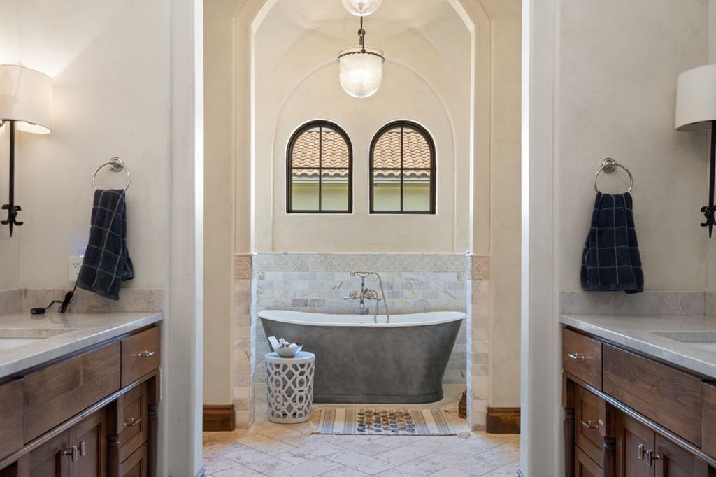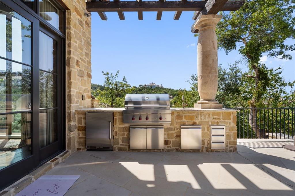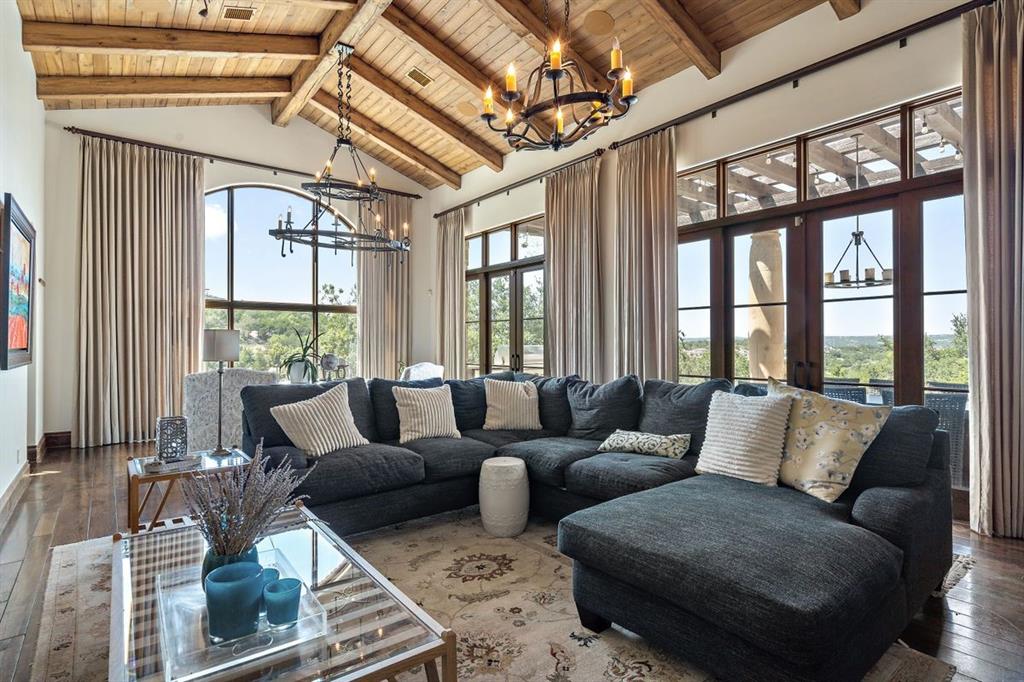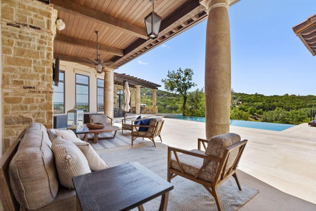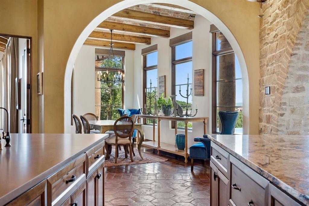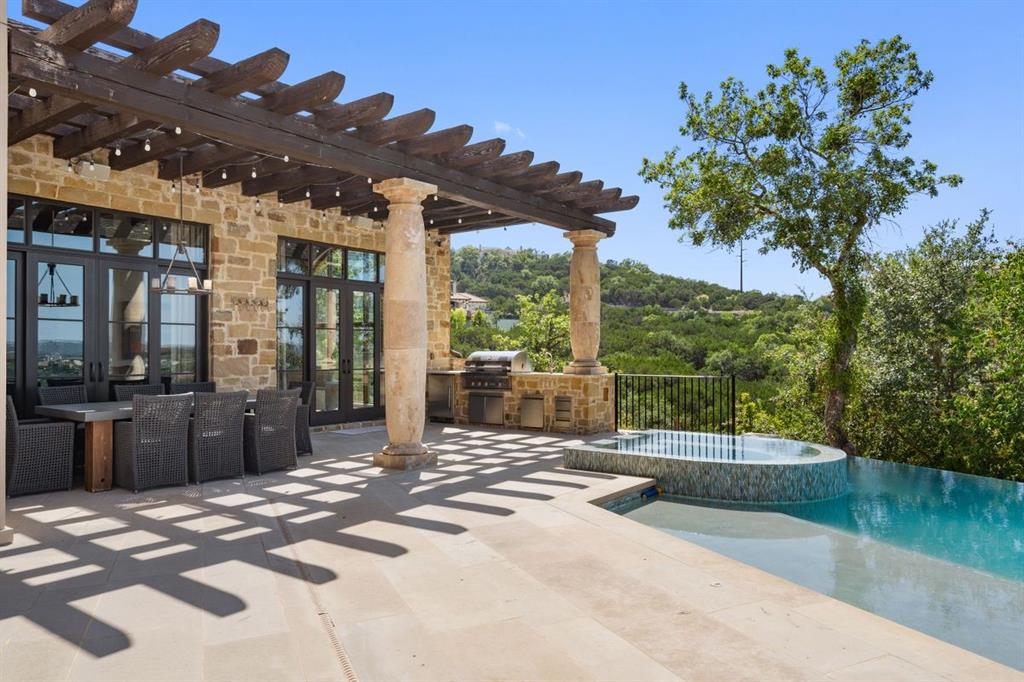 Step into the exquisite Euro-inspired farmhouse meticulously crafted by the esteemed Vanguard Studios & Heyl Homes. This awe-inspiring residence showcases a seamless fusion of transitional interiors and timeless exteriors, thoughtfully designed to create the perfect setting for sophisticated entertainment. As you wander through the residence, you will be captivated by the artful details, including groined ceilings, stunning floors, and inviting, open spaces that exude warmth and elegance. The living area boasts cathedral-style ceilings, elevating the sense of grandeur, while the true gourmet kitchen stands as a testament to culinary excellence. Adjacent to these marvelous features, you will discover a host of neighboring entertainment spaces, such as the formal dining area, a game room complete with a full wet bar, a spacious office, and the private owner's suite offering breathtaking views from every vantage point. Step outside, and the backyard beckons with its multiple entertaining areas, carefully designed to host memorable gatherings. You'll be drawn to the negative edge heated pool and spa, where you can unwind and take in the awe-inspiring vistas that surround this exceptional property. With its unrivaled charm and beauty, this Euro-inspired farmhouse presents an unparalleled opportunity to embrace the art of gracious living. Private gated property In Seven Oaks and Eanes ISD.