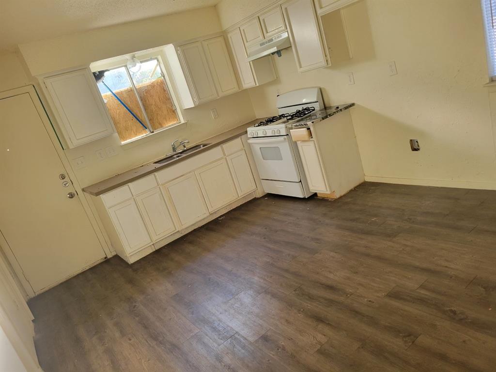 This is the end unit of a four plex. Each unit is 2 story with 2 BR's and a full bath upstairs and a half bath down stairs. There is central air and gas heat. The range is gas and the water heater and dryer connections are gas. There is a washer/dryer hookup and they are in a laundry closet downstairs. The Kitchen comes with a refrigerator and gas range. A dishwasher and disposal. There is a fenced small backyard. There is a separate dining room/area. Lots of closet space. Shopping and restaurants are close Easy access to Ed Bluestein Blvd/Hwy 183. It is almost 1000 square feet.