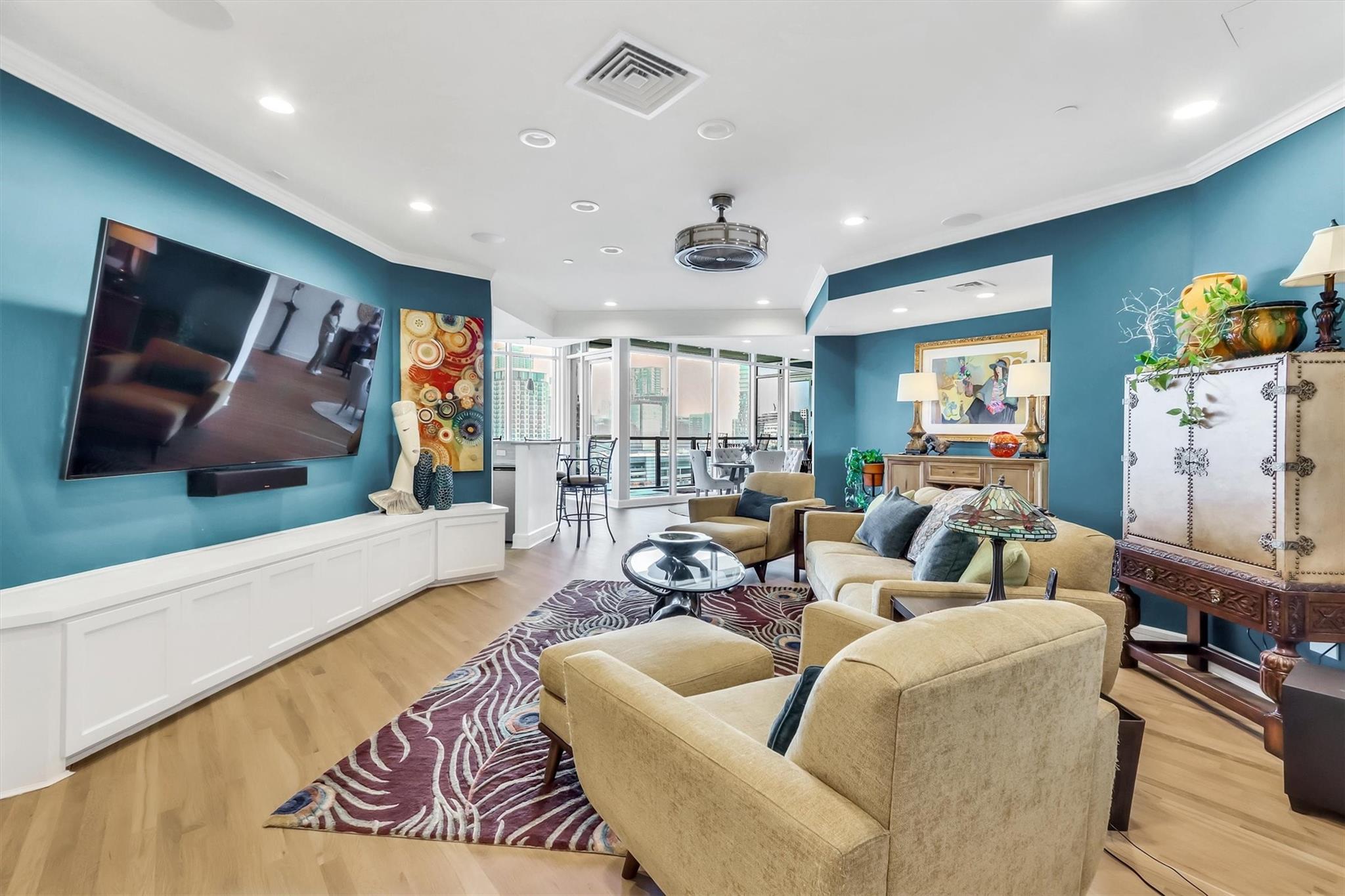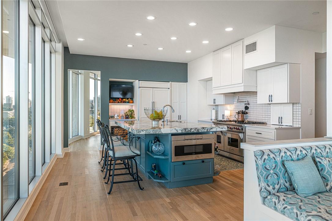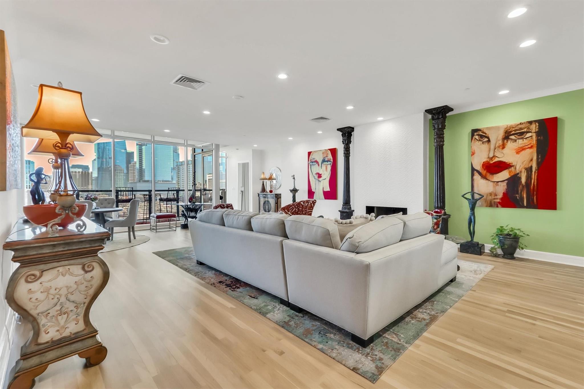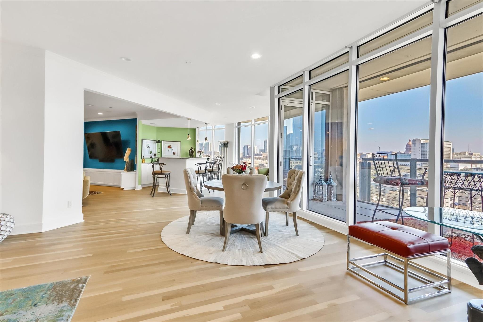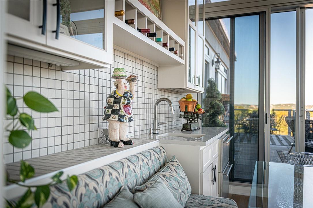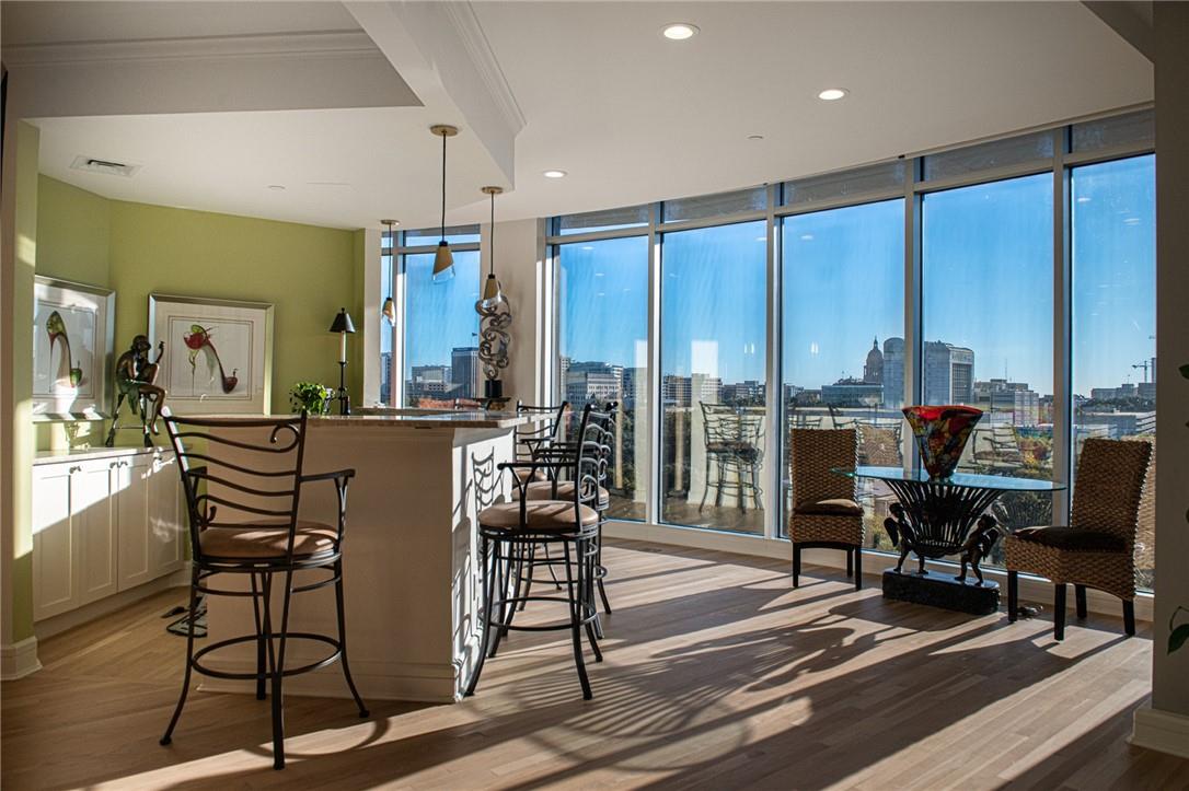Stunning renovation capturing both glittering City views and peaceful hill country. Nothing like this one on the market with a fresh new look. High ceilings from Penthouse level plus gas fireplace and NO circular pillars to deal with in living spaces. Serenity abounds overlooking peaceful Duncan park, unique circular floor to ceiling windows offer 180 degree views, lovely white oak flooring and abundant storage. Only one other unit shares this floor offering privacy with permission only elevator access. Two street level parking spaces conveniently located just outside of elevator with electric charger and additional private storage area. Balcony plus huge second outdoor terrace (difficult to find) to connect with nature. Updated gourmet kitchen and breakfast area with two large pantry’s, automatic solar screens, customized floor plan may be converted to three bedrooms but offers two master suites with sitting areas & serene spacious baths. Walking distance to Whole Foods, dining, shopping, theatre district and all that the City offers yet away from the noise and chaos. Tranquil pool, exercise room, spa & conference room for private functions. Overlooking nature, a feeling of tranquility inspires you as the City dazzles with glittering lights and architecture, all within reach of this superb location.