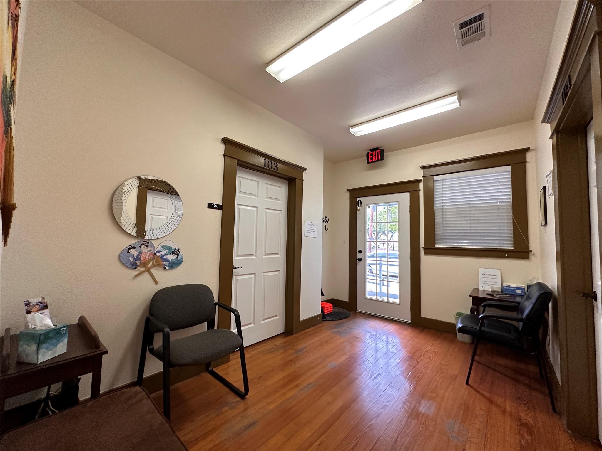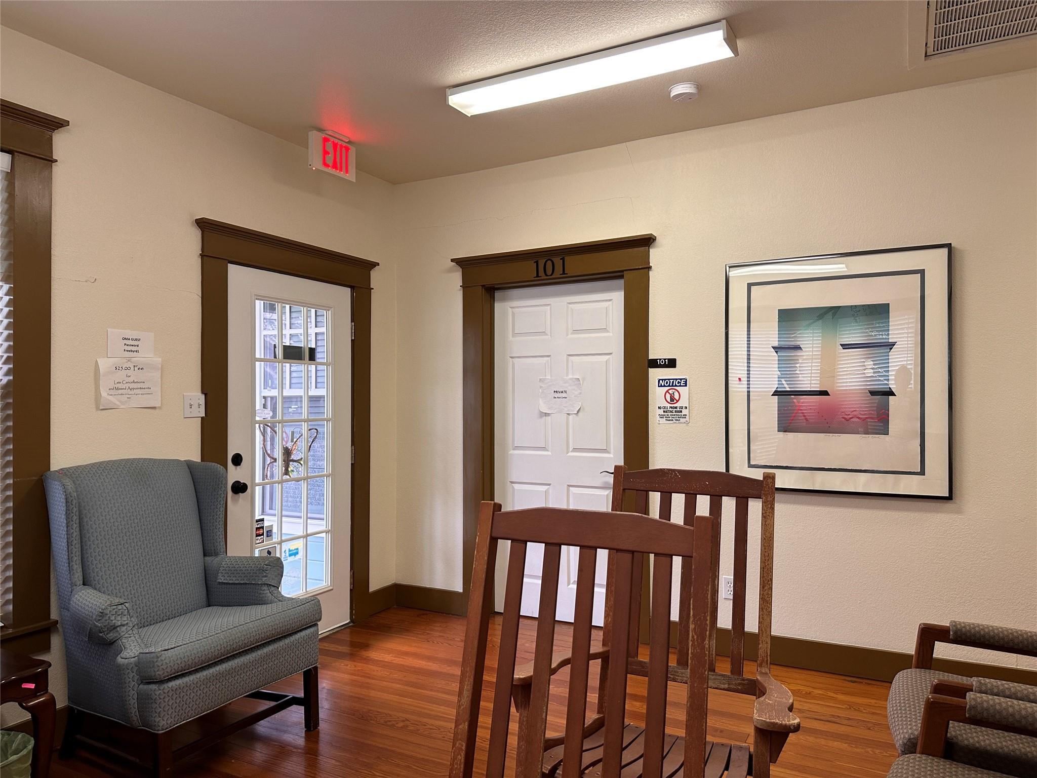 This is Suite # 103 of ~~ 117 Square feet. Includes shared Waiting area, ADA compliant Rest Room, and kitchenette area. Charming corner home has been converted into offices. Delightful front porch. Plus second waiting area at back entrance near ADA ramp. 1 ADA parking space. Additional parking is street parking on Rock St or West 10th. See Floor plan. Landlord covers all expenses, A/C, Heat, Internet, Yard. Tenant can also get their own internet if needed at their own cost.