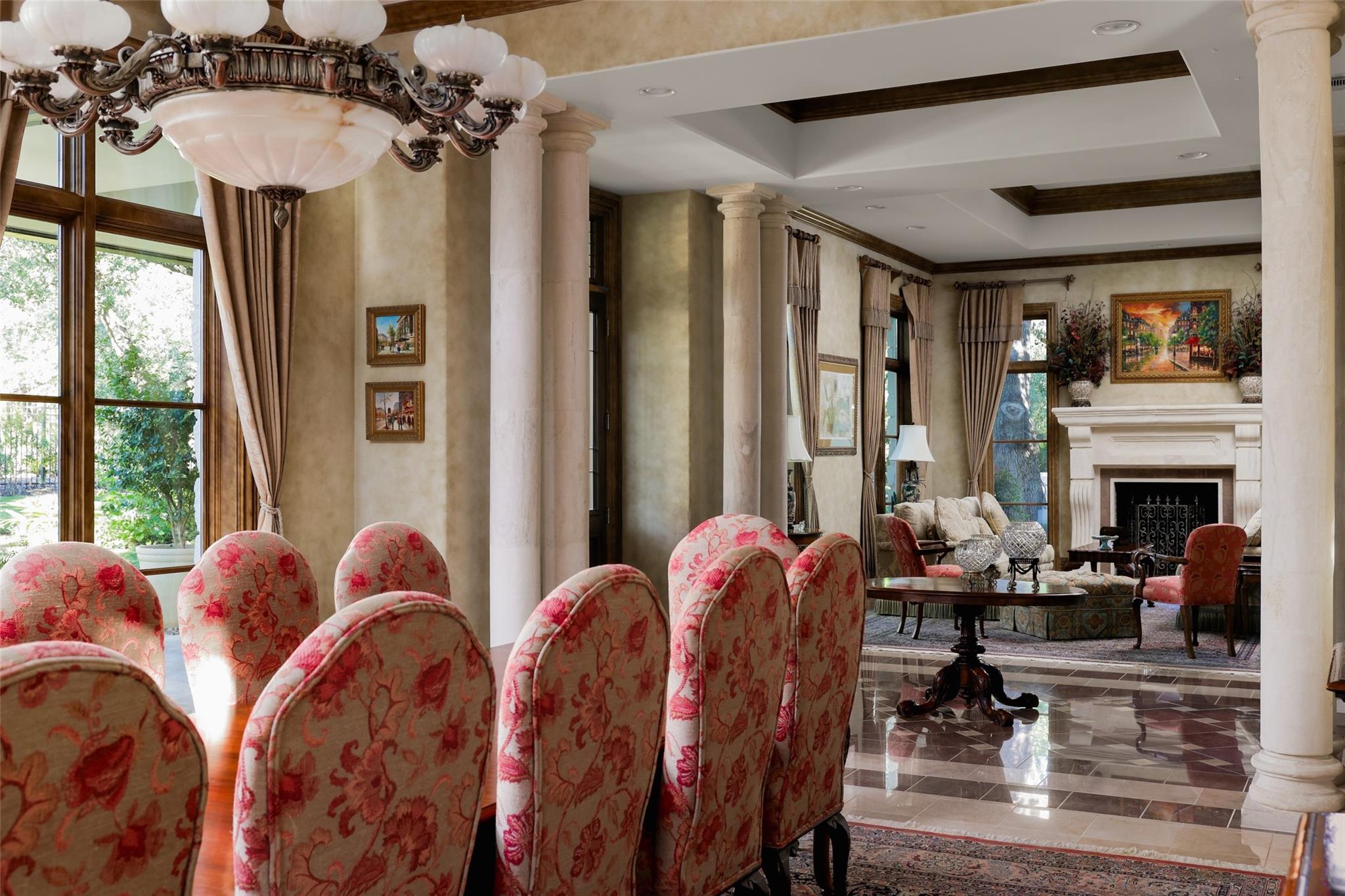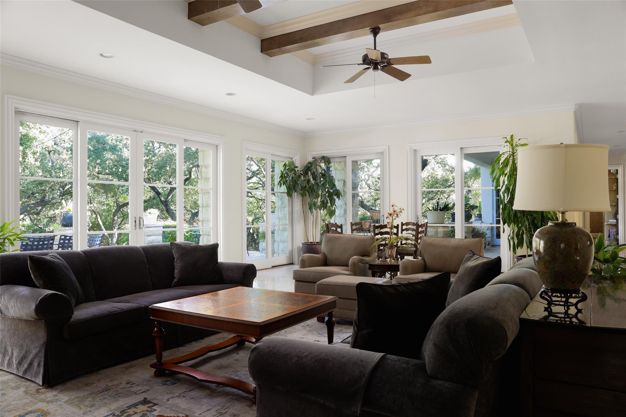 | Interior Features | Built-in Features, Ceiling Fan(s), Beamed Ceilings, High Ceilings, Tray Ceiling(s), Crown Molding, Double Vanity, Eat-in Kitchen, Entrance Foyer, French Doors, High Speed Internet, Kitchen Island, Multiple Dining Areas, Multiple Living Areas, Pantry, Primary Bedroom on Main | |