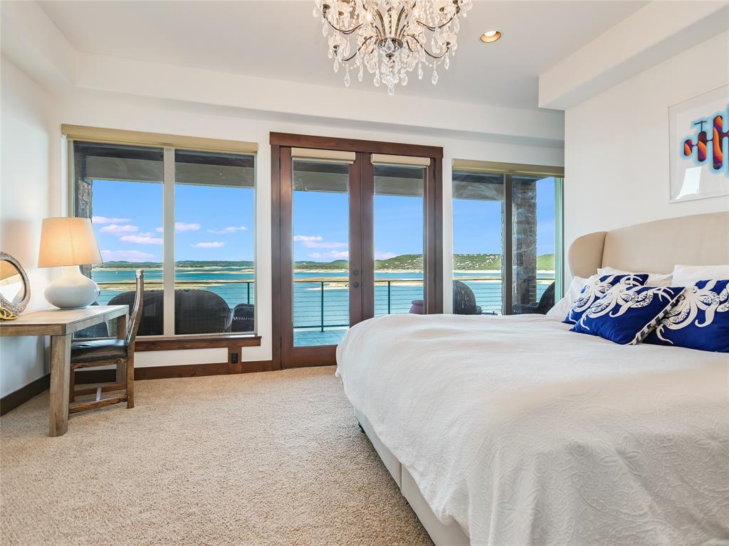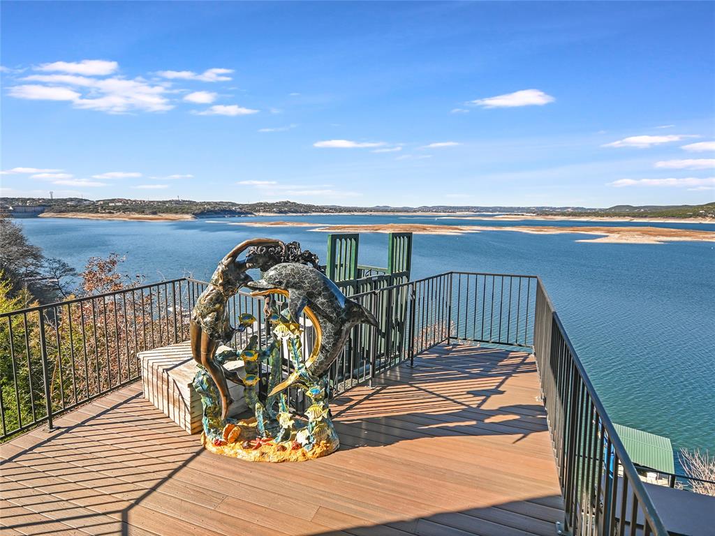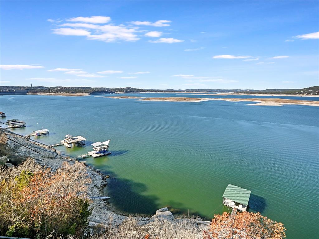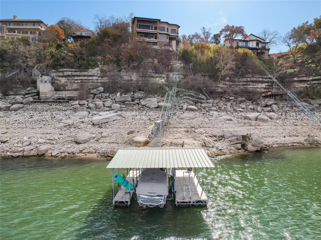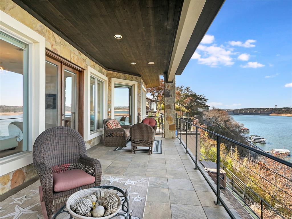 LAKE TRAVIS WATERFRONT RETREAT WITH BOAT DOCK- This 3-story Lake Travis home is a lake lovers dream! With lake views from almost every room of the house, multiple living spaces, formal dining, a home theater, guest kitchenette, elevator, boat dock, and much more. The main level primary suite overlooks the stunning Lake Travis views, complete with a fitness room and spa-like bath. A second living space, guest suite with kitchenette, two bedrooms, and two bathrooms complete the lower level. A spacious home theater occupies the bottom floor. With four outdoor terraces, built-in BBQ, hot tub, and tram that leads to your private boat dock, the home offers endless opportunities for entertaining. Would make an incredible full-time residence, weekend lake getaway, or STR investment property. *Bonus* - Never lose power to your home, gas powered Generac Generator conveys!