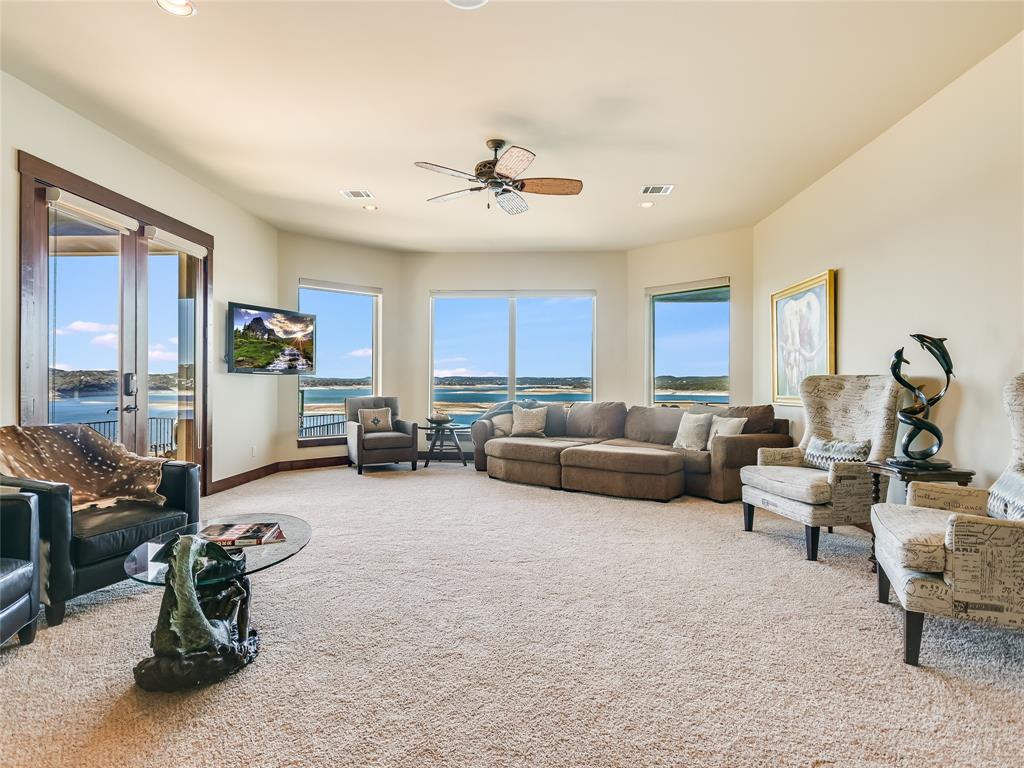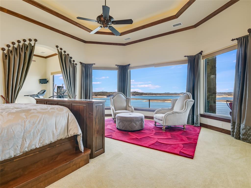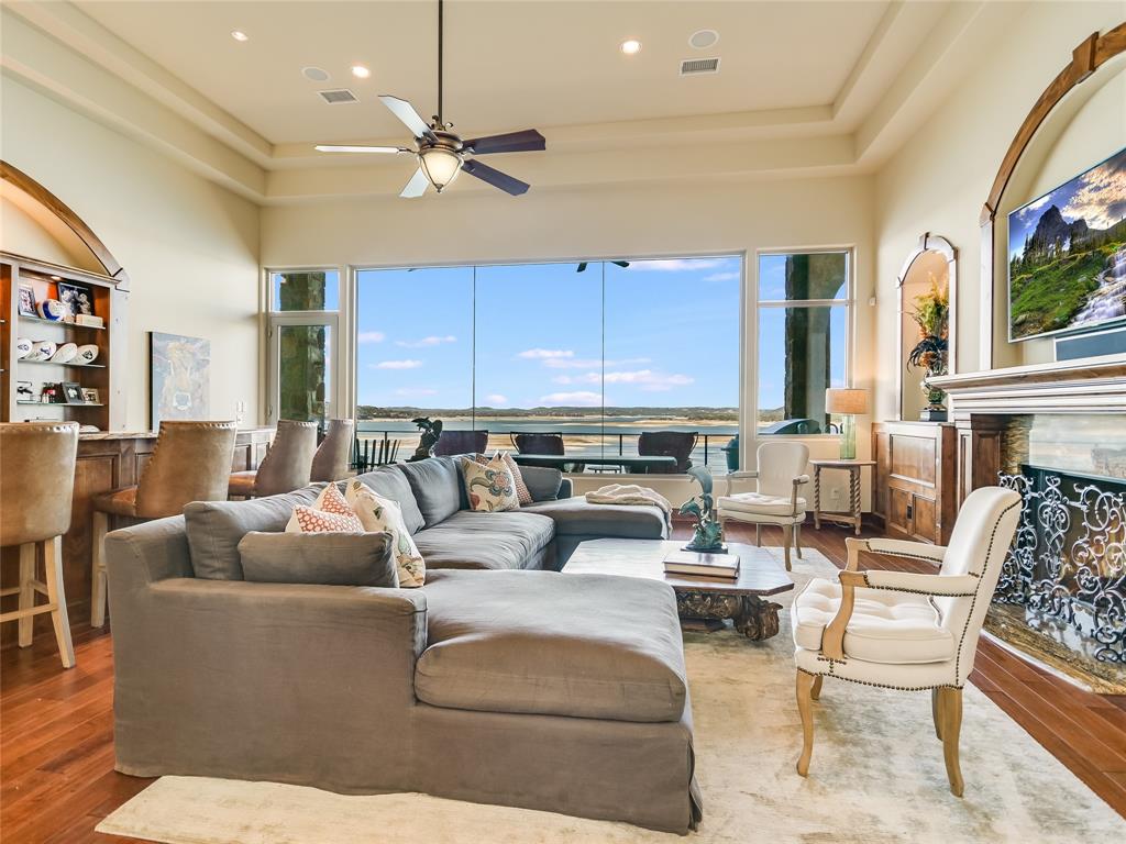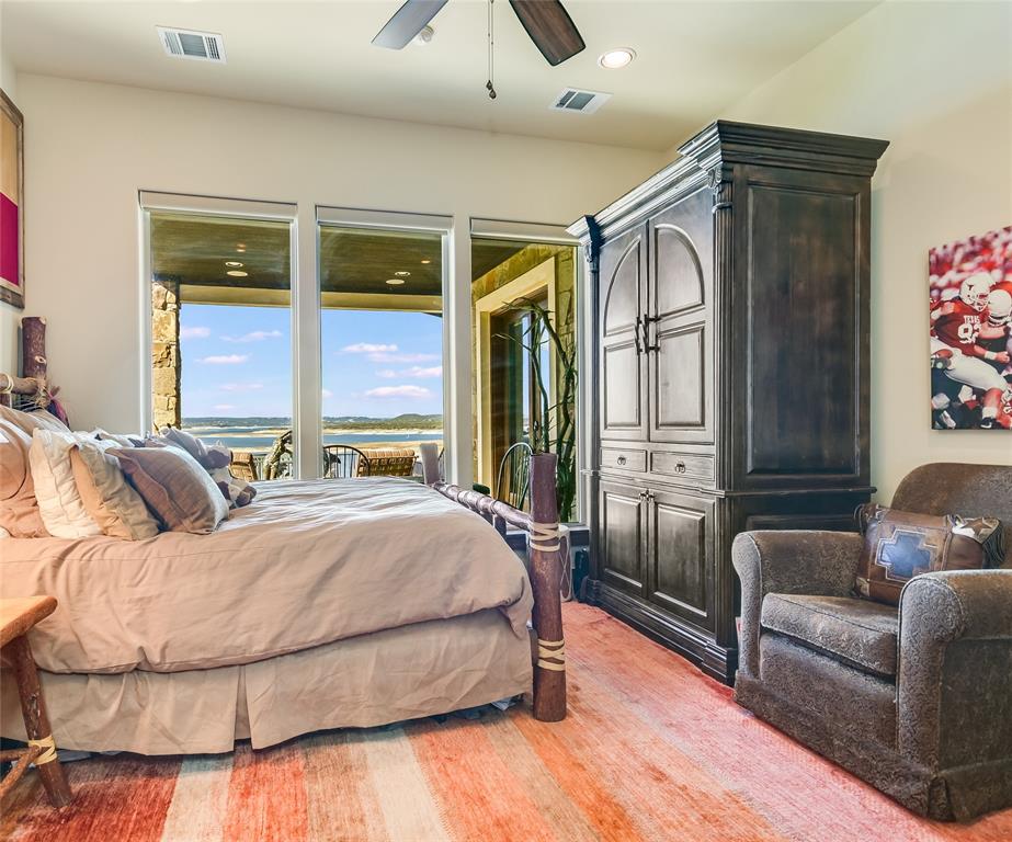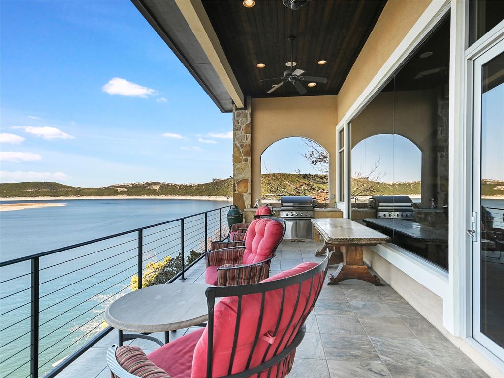 LAKE TRAVIS WATERFRONT RETREAT WITH BOAT DOCK- This 3-story Lake Travis home is a lake lovers dream! With lake views from almost every room of the house, multiple living spaces, formal dining, a home theater, guest kitchenette, elevator, boat dock, and much more. The main level primary suite overlooks the stunning Lake Travis views, complete with a fitness room and spa-like bath. A second living space, guest suite with kitchenette, two bedrooms, and two bathrooms complete the lower level. A spacious home theater occupies the bottom floor. With four outdoor terraces, built-in BBQ, hot tub, and tram that leads to your private boat dock, the home offers endless opportunities for entertaining. Would make an incredible full-time residence, weekend lake getaway, or STR investment property. *Bonus* - Never lose power to your home, gas powered Generac Generator conveys!
