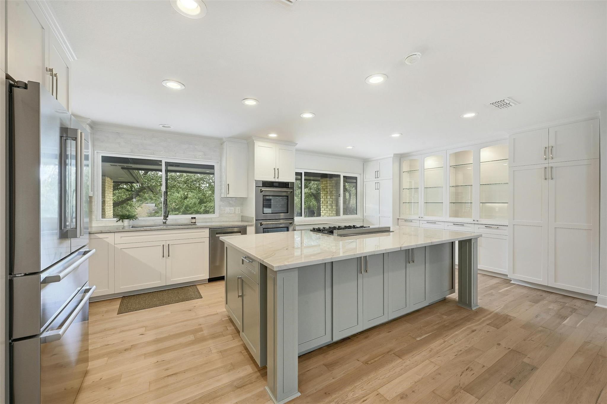 Nestled in Westlake's coveted Lost Creek neighborhood, this exceptional single-story residence is set to impress. Situated on nearly half an acre, this home has been meticulously renovated, featuring a new roof, exterior paint, and resurfaced hardwood floors. The interior boasts fresh paint, new carpeting, and a stunning kitchen remodel anchored by a 12-foot custom island and high-end appliances including a 6-burner gas cooktop and double oven. The open floor plan seamlessly integrates the kitchen, dining, and living areas, leading out to a patio and pool area, perfect for entertaining. Privacy is paramount with the primary bedroom located on the south end, and also offering breathtaking views from a private terrace and a luxurious spa-like bathroom complete with a free-standing tub and and unbelievable oversized walk-in closet. Additional highlights include a 500-square-foot parlor ideal for entertaining, a private office with built-in storage, three spacious guest bedrooms with walk-in closets, and a versatile flex room. Outside, the newly resurfaced pool and fenced yard provide a serene retreat, while ample parking options include a circular drive and a private gated driveway leading to a four-car garage. Located in the heart of Westlake's Eanes ISD and just moments from Westlake Country Club, this home epitomizes luxury living at its finest. Don't miss the opportunity to make it yours.