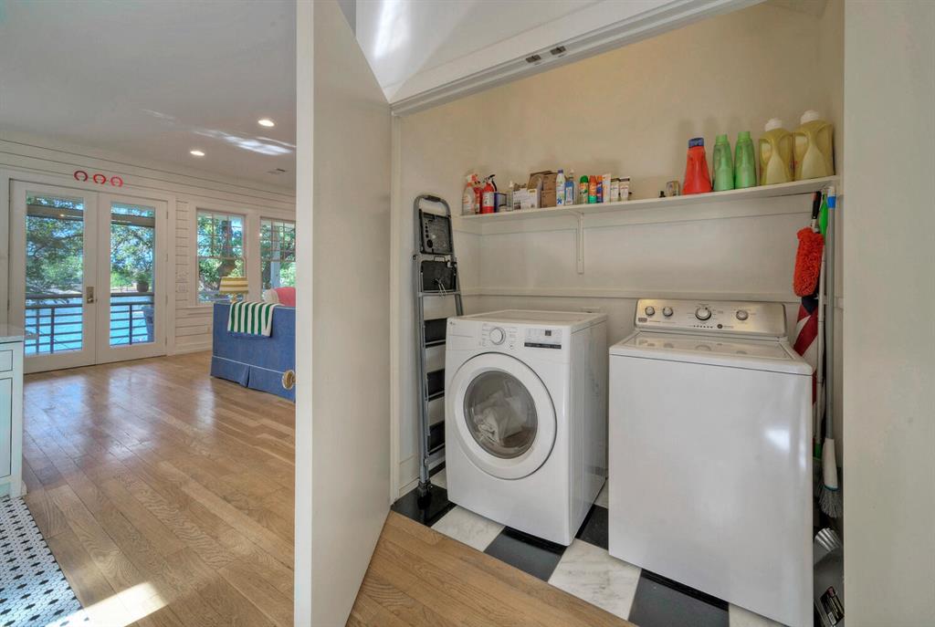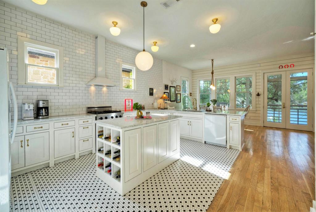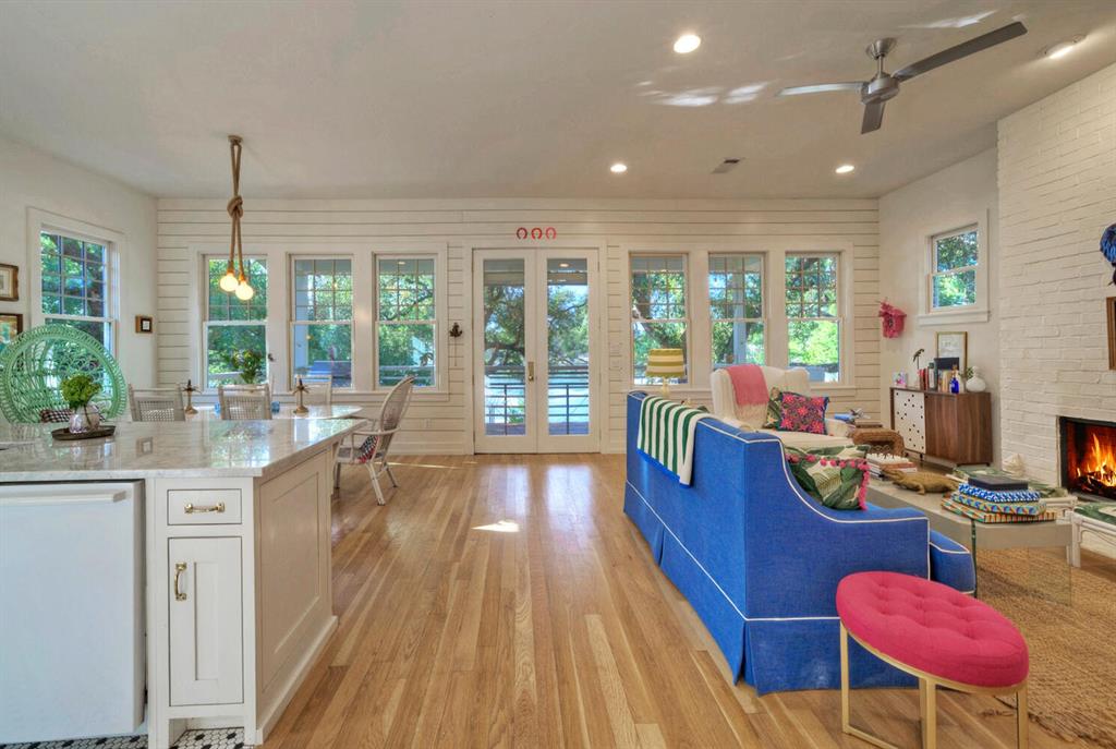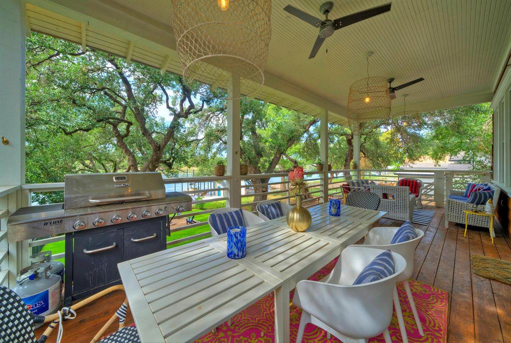 This home and its location are truly remarkable! Relaxing family retreat situated on some of the best and calmest open water of Lake LBJ. This home features 3 bedrooms/3 full baths, two living spaces, and a six-bed bunk room that is perfect for the entire family to enjoy. The massive grass yard is shaded by beautiful heritage oak trees, providing ample space for outdoor play. Enjoy the boat dock, jet ski lift, and a pier for easy fishing and swimming. The covered back porch is perfect for year-round gatherings, entertainment, and sunset watching. The large storage room under the house is perfect for storing water toys, fishing gear, and outdoor equipment. If desired, the property can be used for short-term rentals. It is only a short distance from HEB, Boat Town, and other amenities. This stylish sanctuary is being sold furnished and has everything you need to get away and create unforgettable family memories.